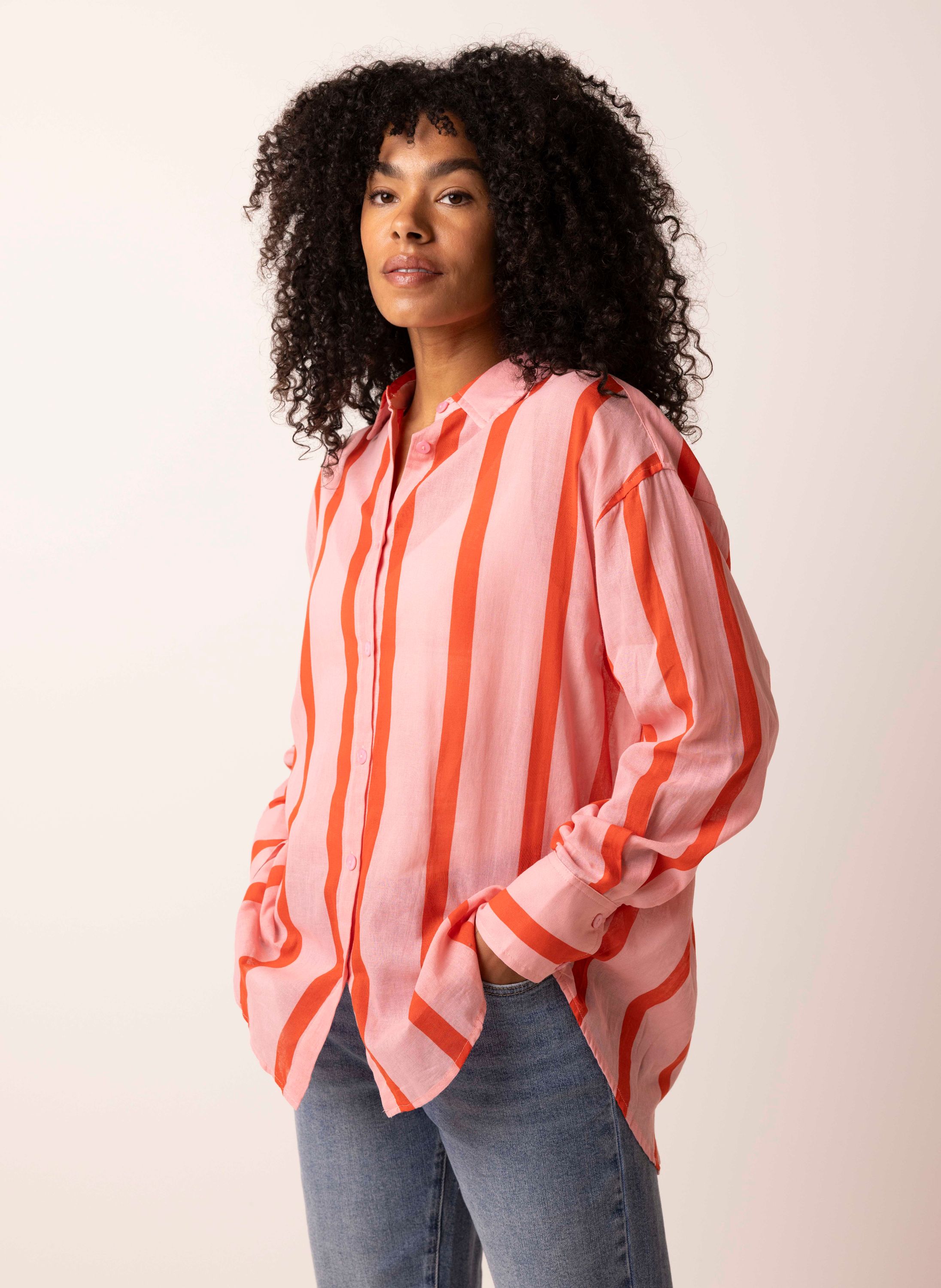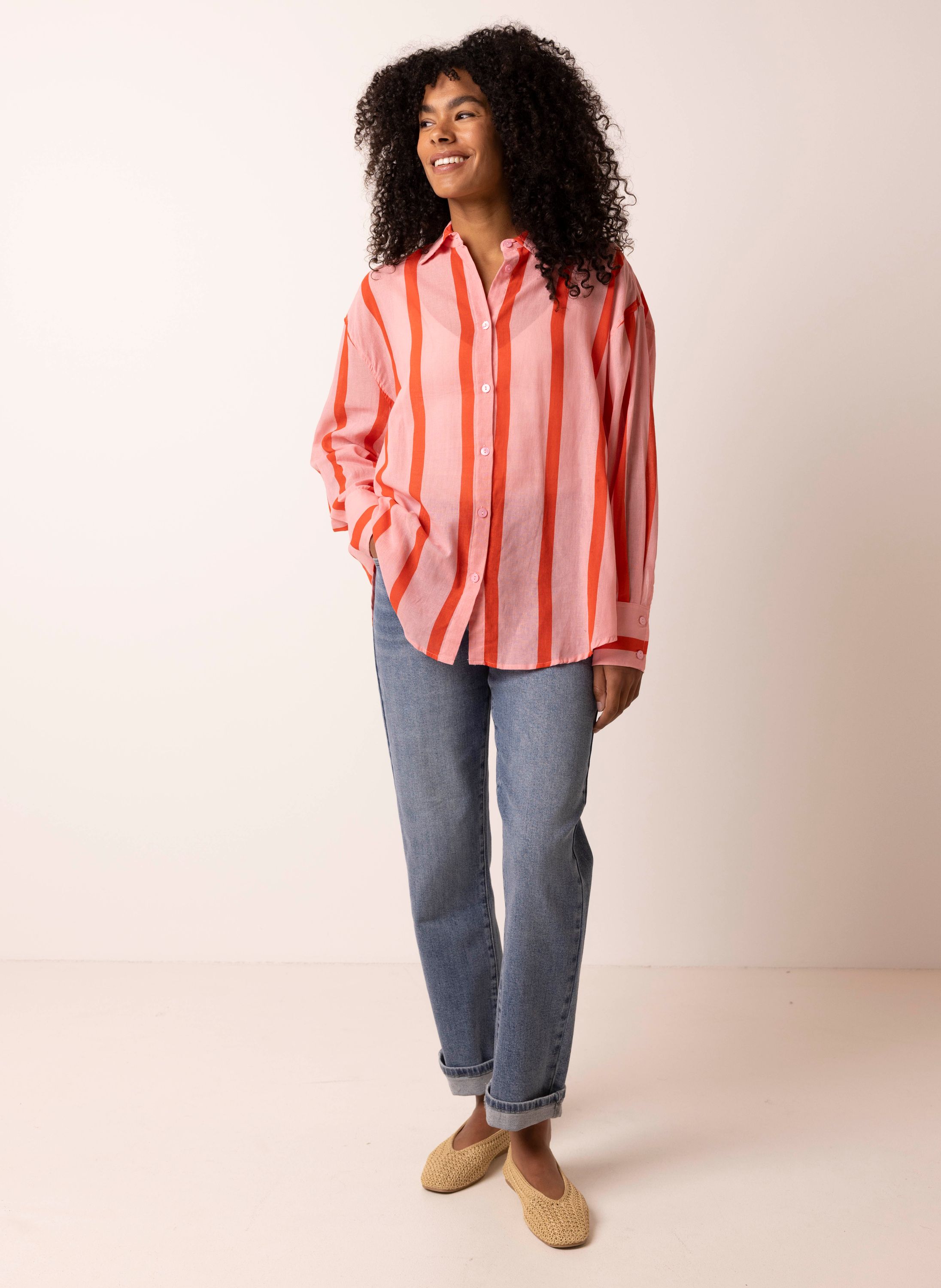 Roze gestreepte blouse
