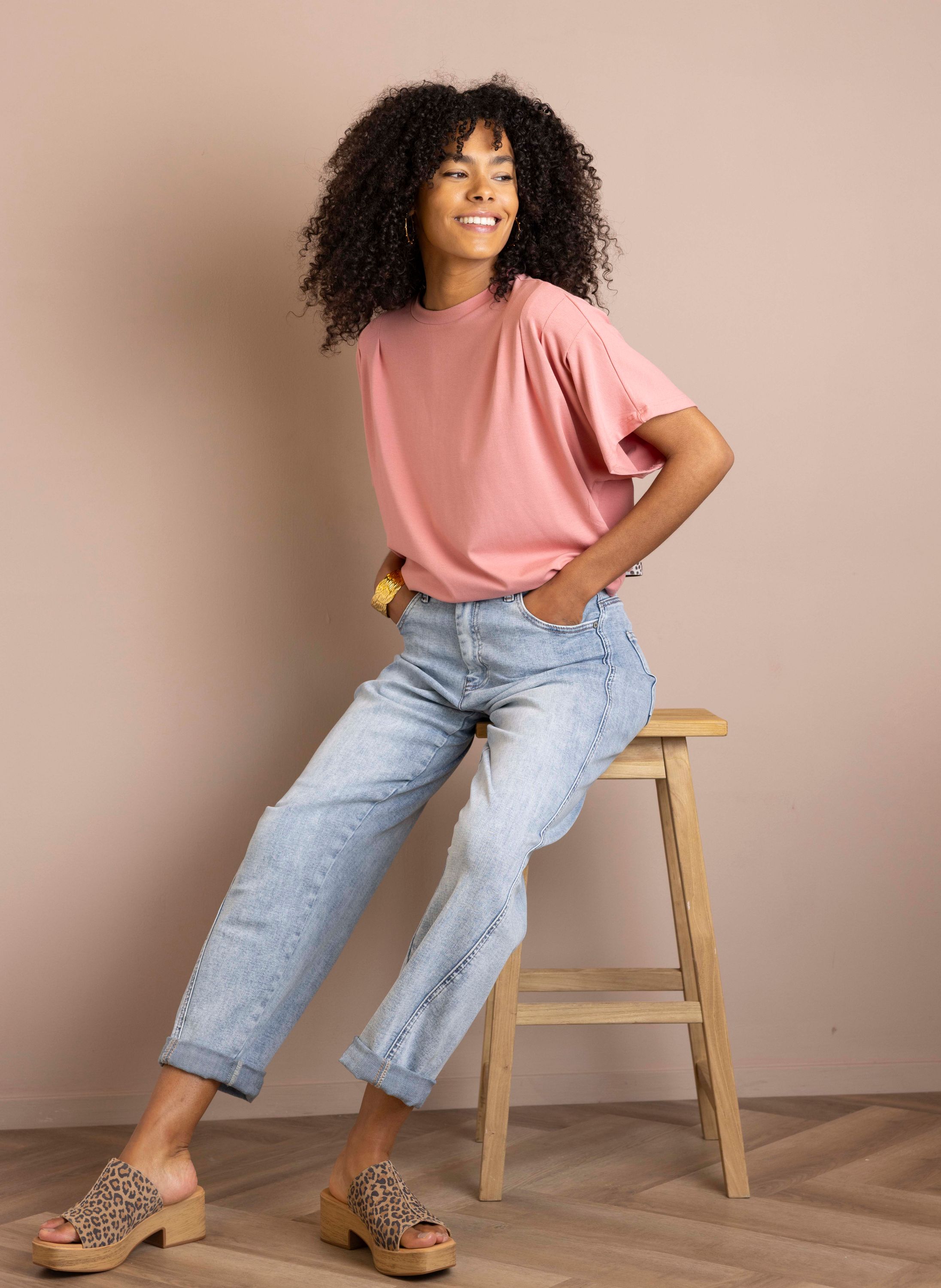 Roze shirt met plooidetails