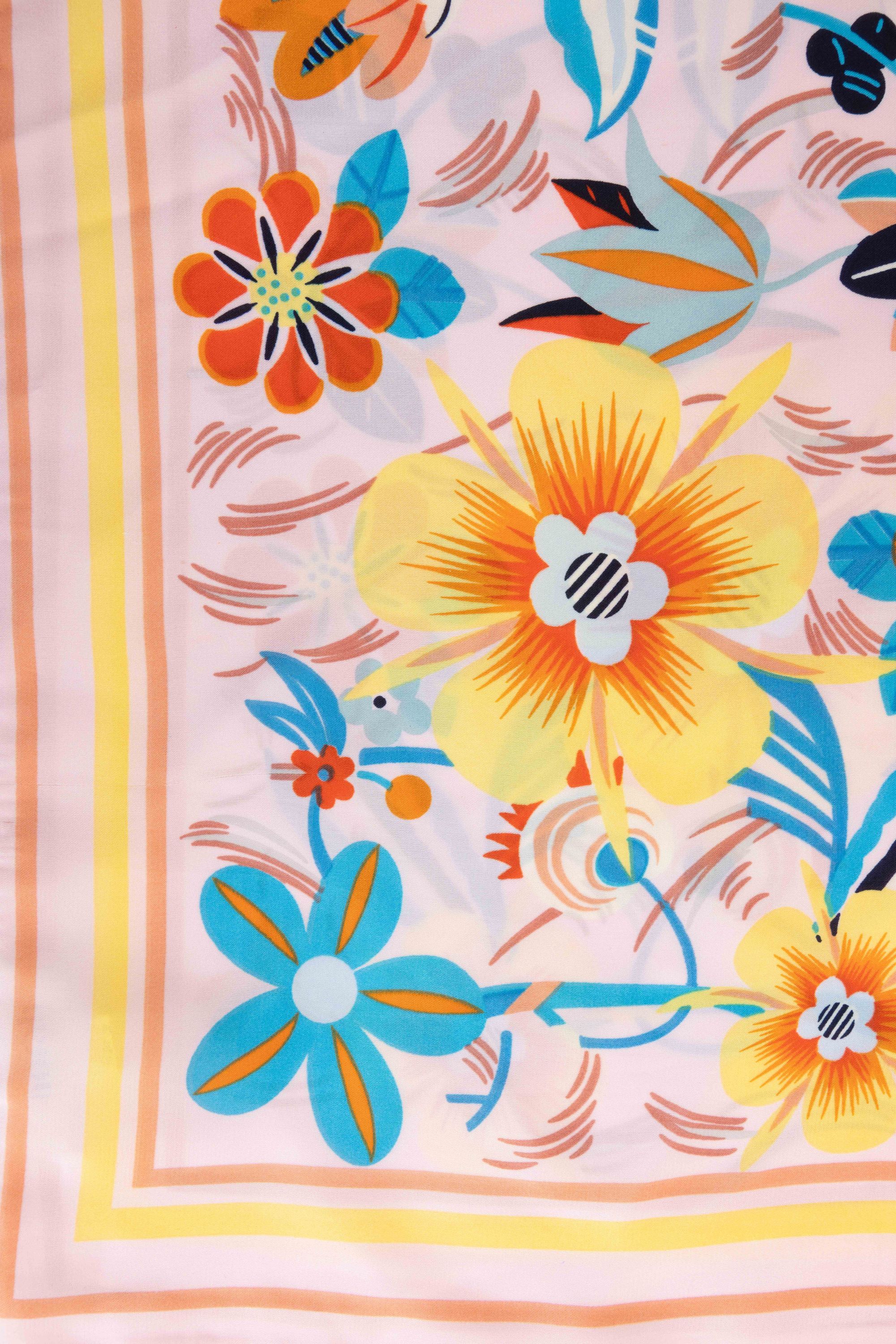 Deze sjaal heeft een verfijnde bloemenprint en een decoratieve rand en geeft je outfit een stijlvolle en vrouwelijke uitstraling.