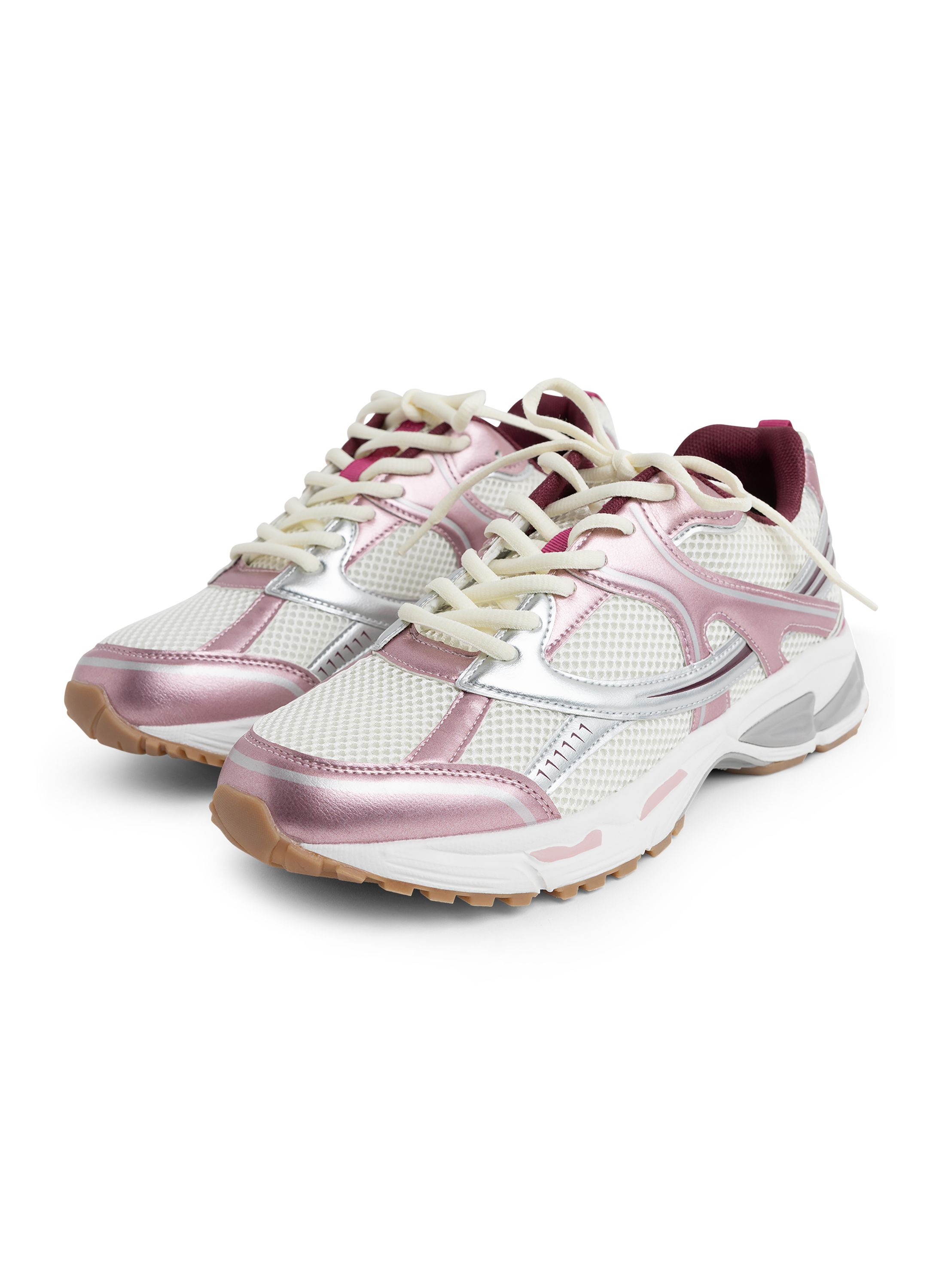 Roze sneaker met metallic details
