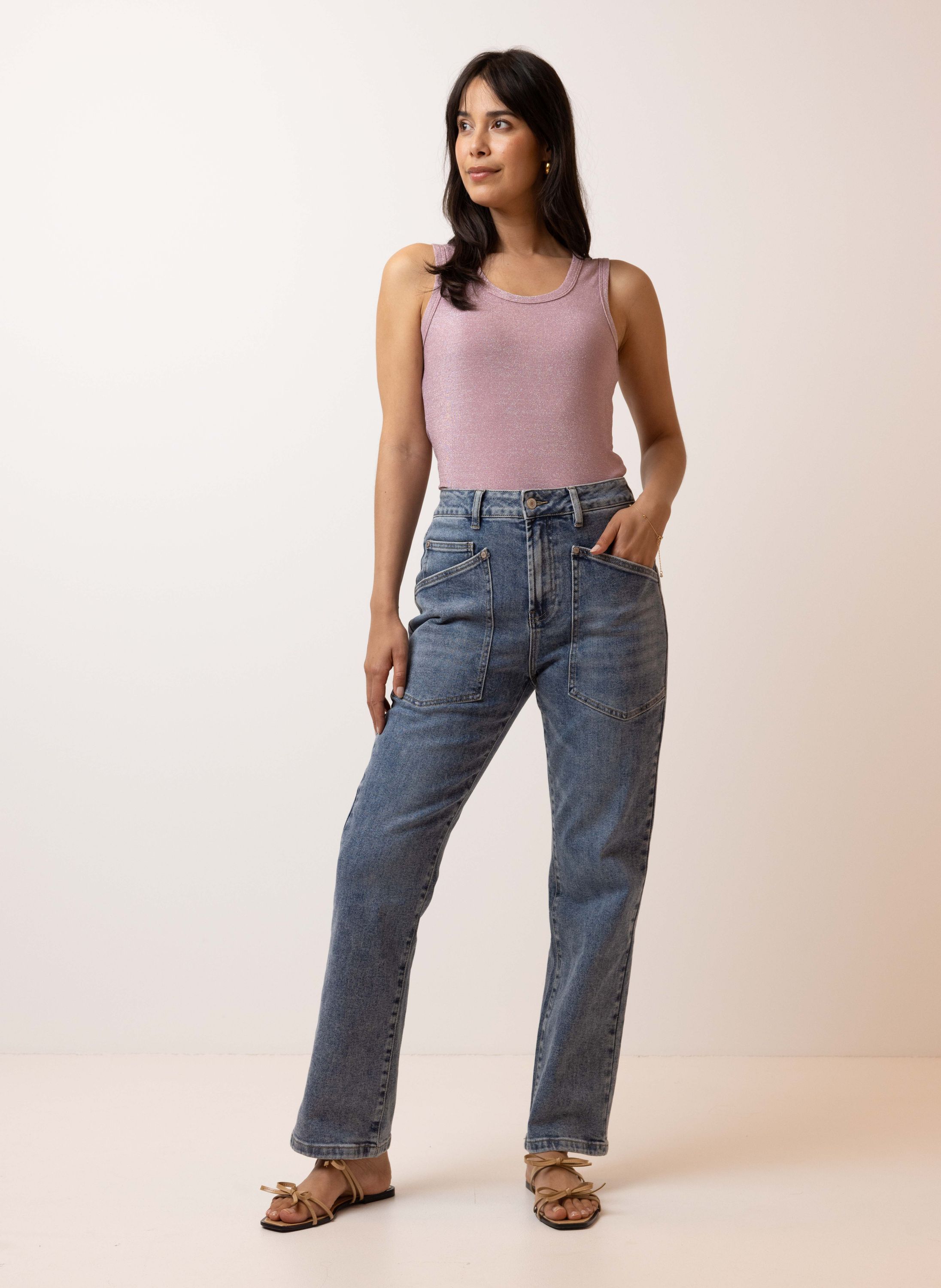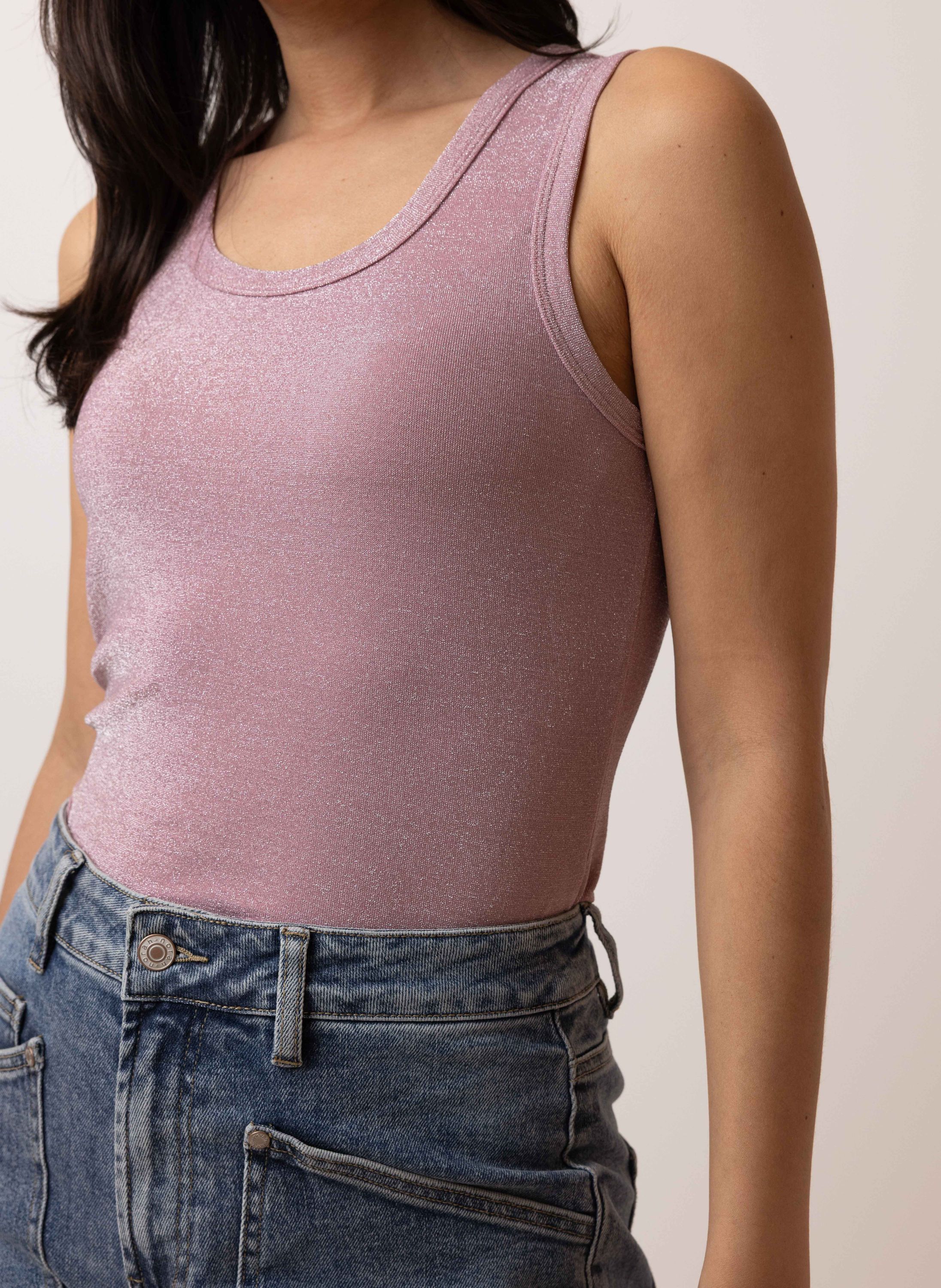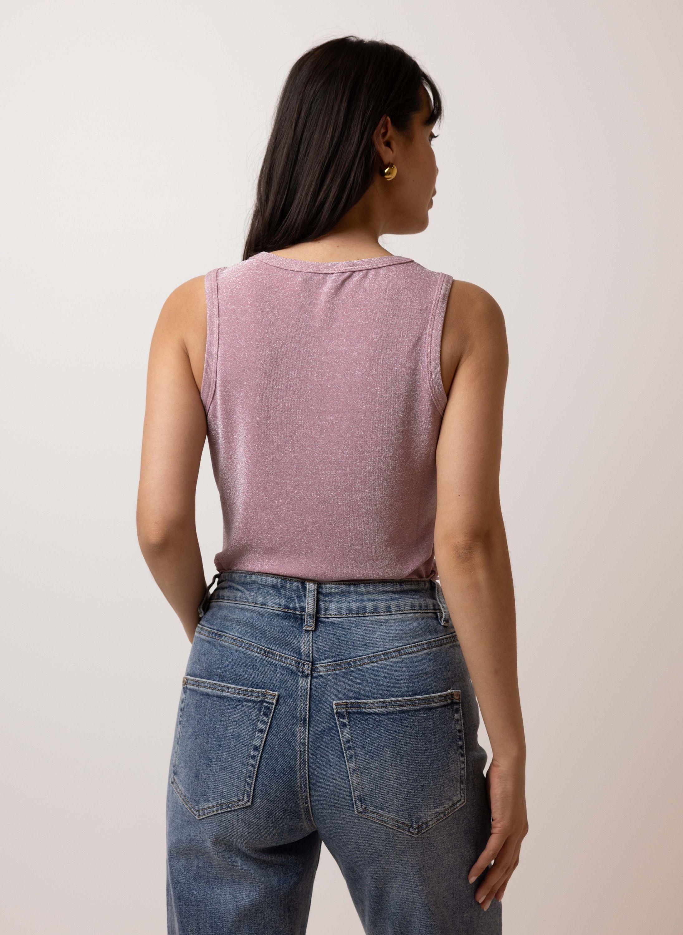 Deze mouwloze top met ronde hals is afgewerkt met zilverkleurig lurexdraad voor een subtiele glans.