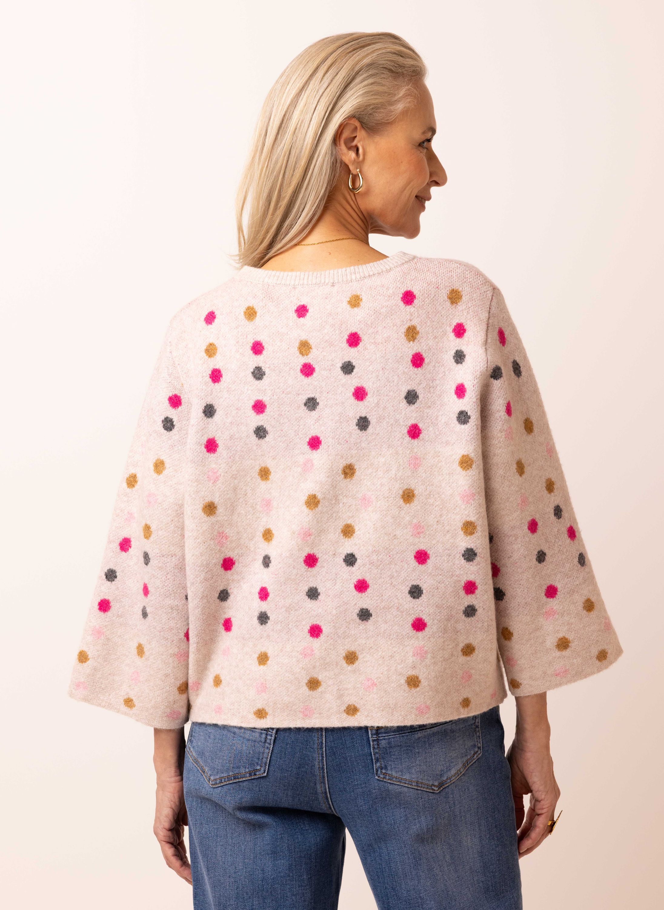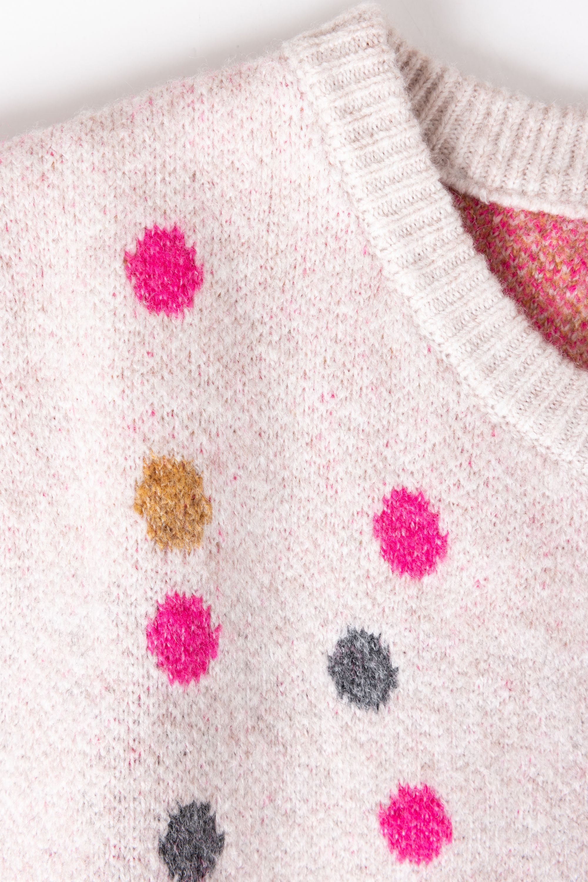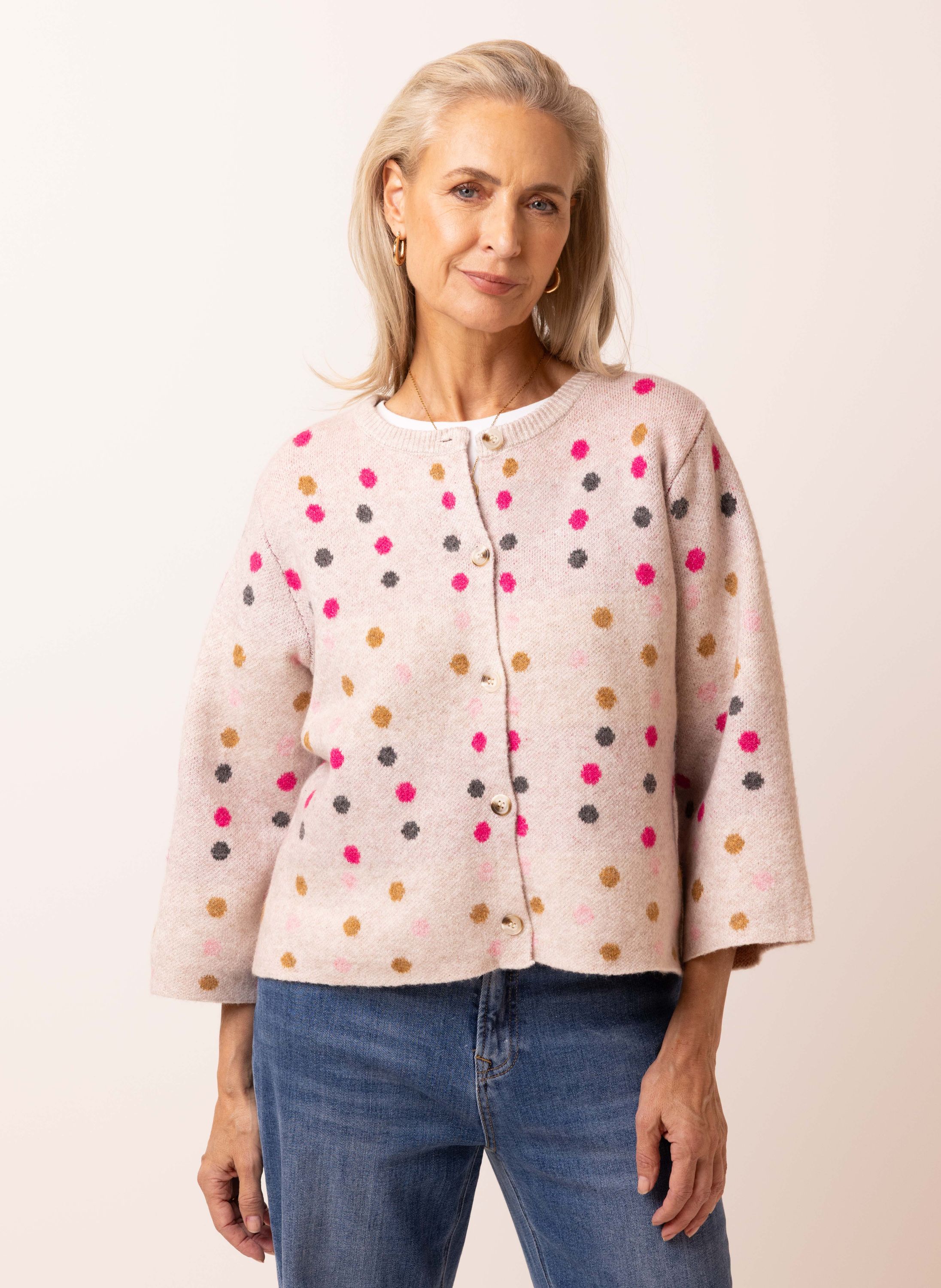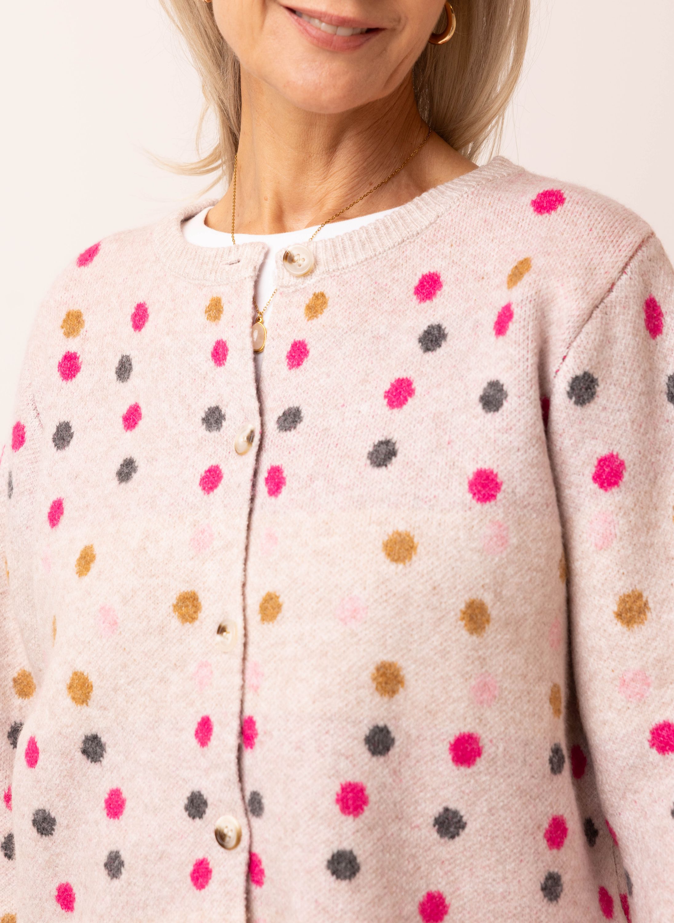 Dit gebreide vest met ronde hals heeft een knoopsluiting en driekwart mouwen.