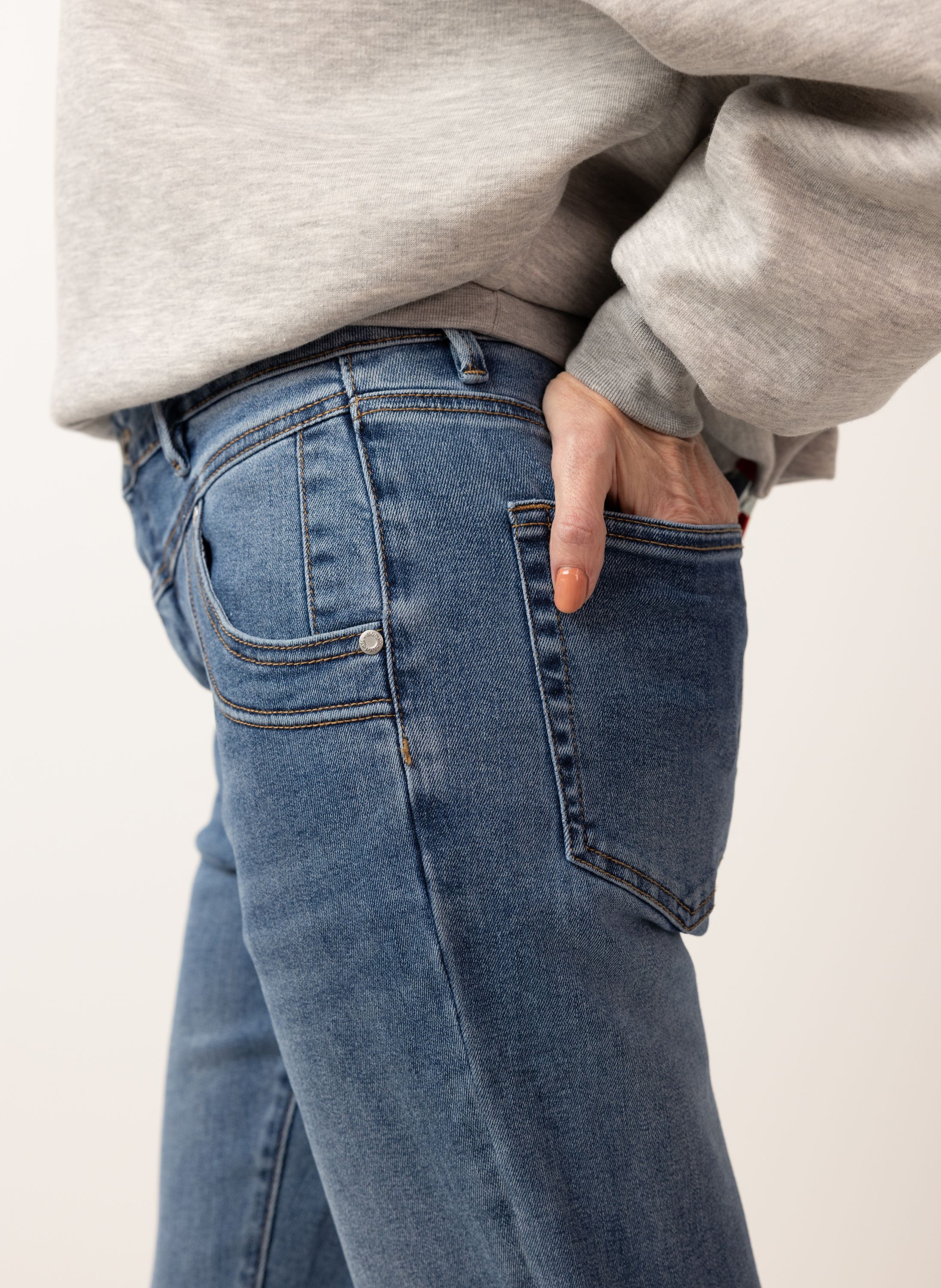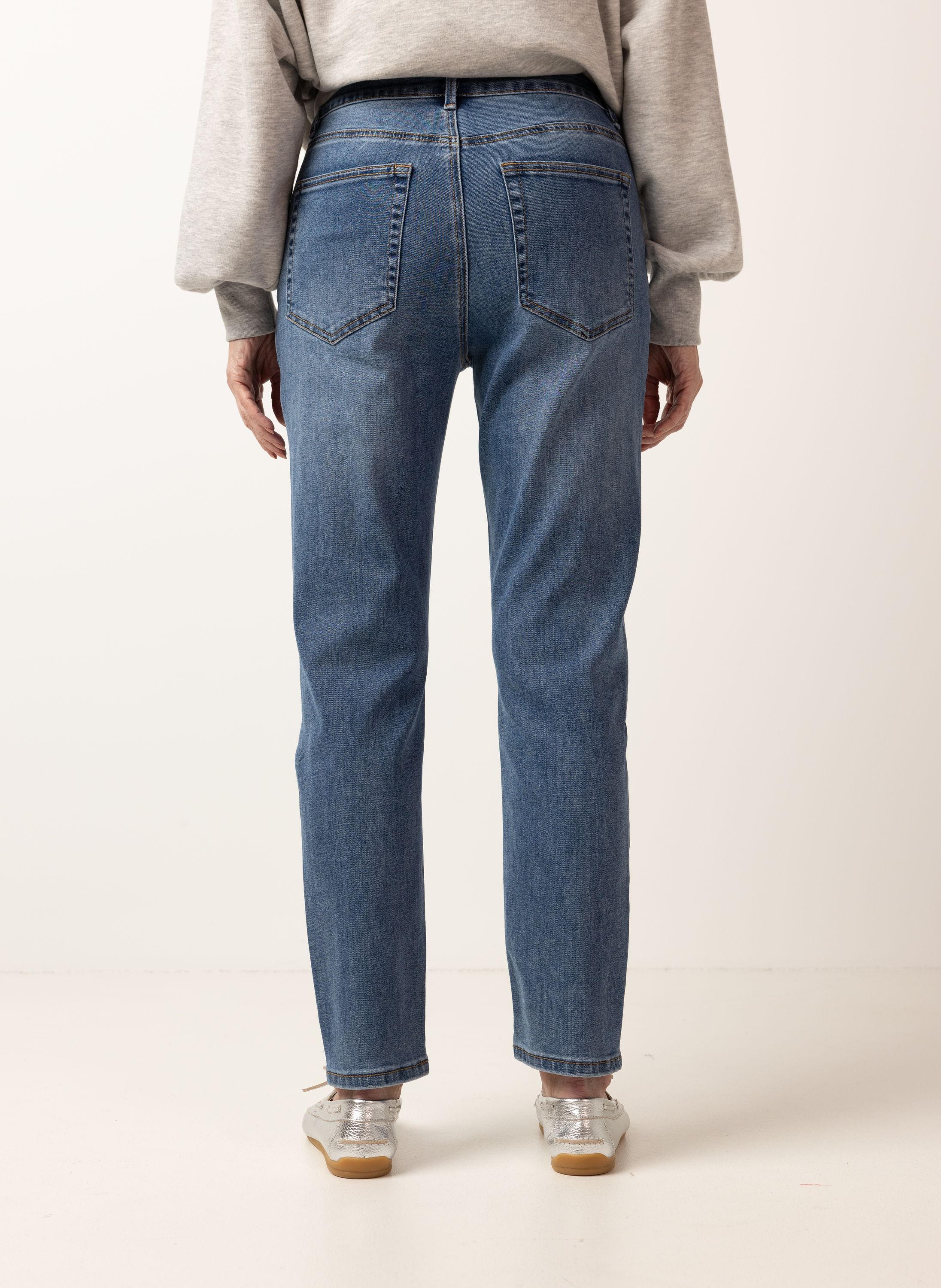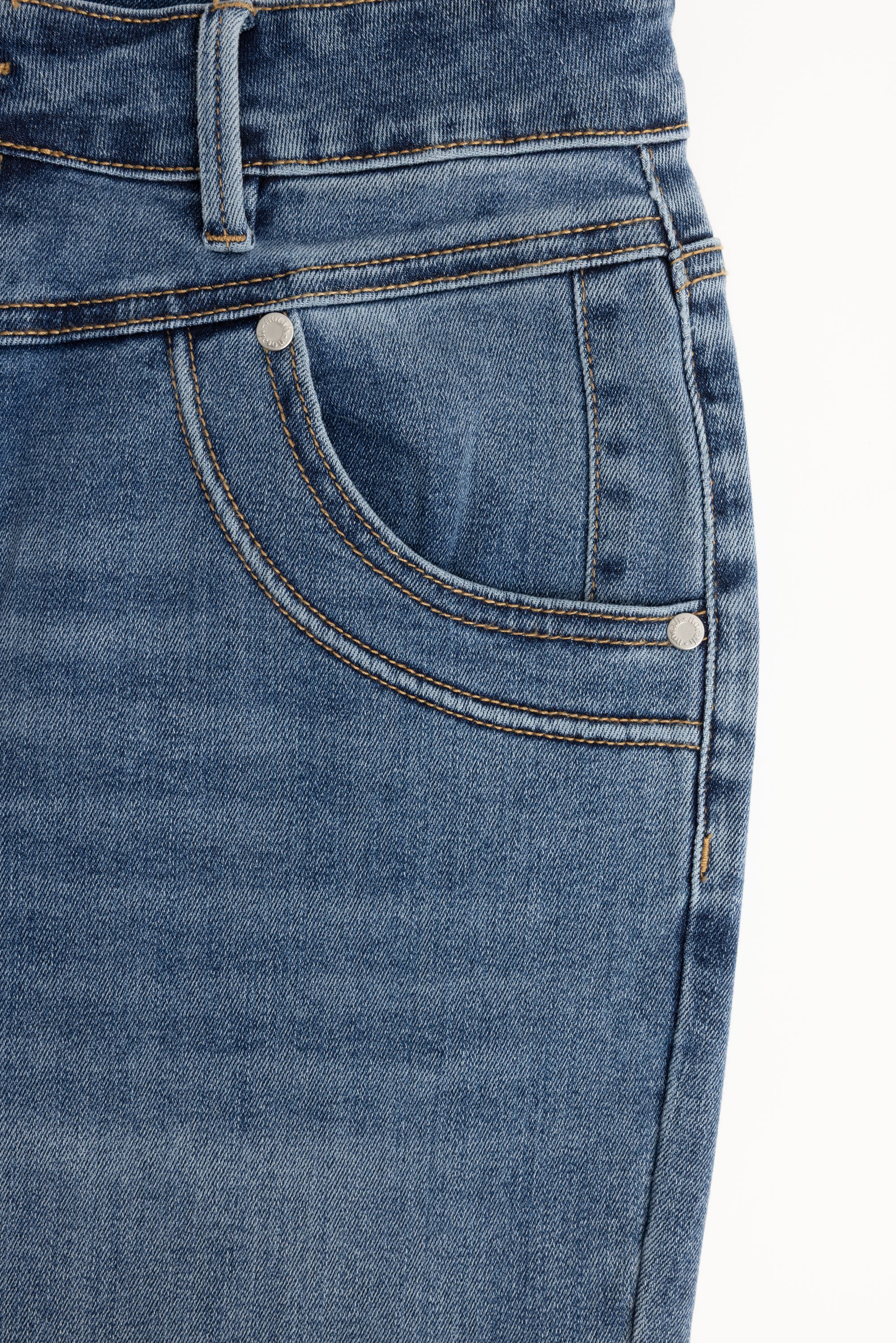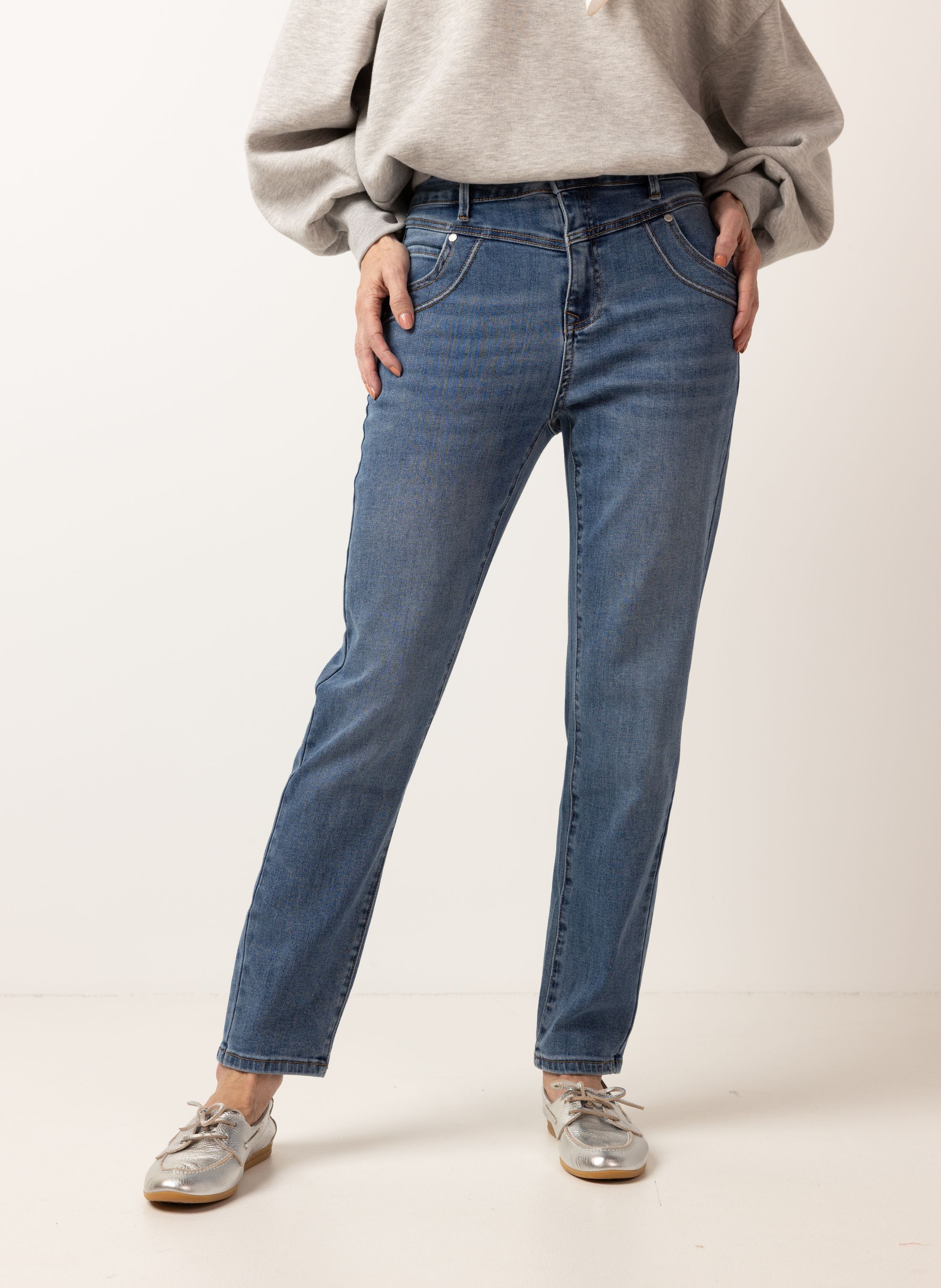 Deze high waist slim fit jeans heeft een rits- en knoopsluiting en een comfortabele pasvorm. Deze jeans is ideaal voor vrouwen met een lengte tussen de 1.70 en 1.75 meter.