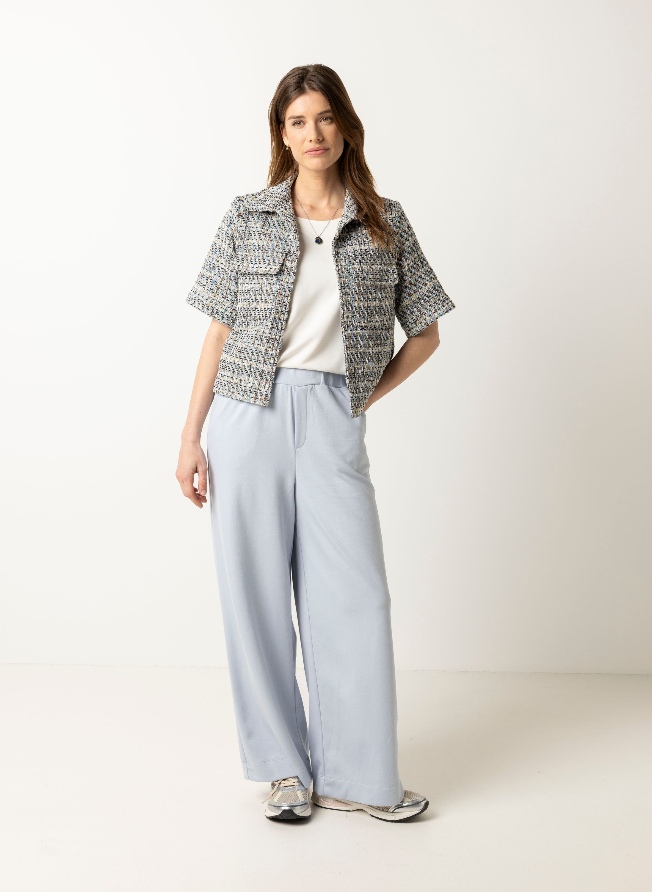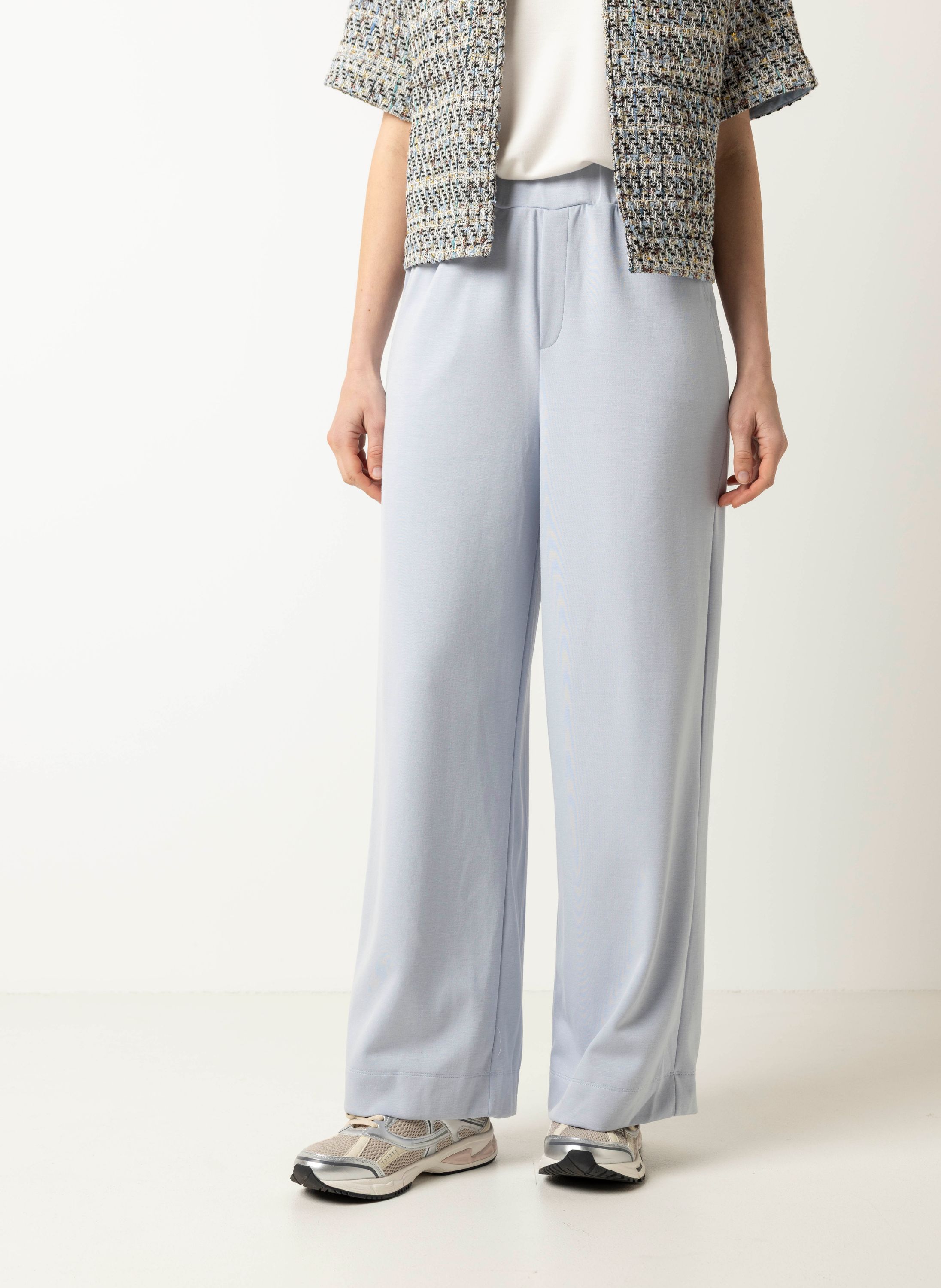 Deze high waist straight fit broek met elastische tailleband heeft steekzakken aan de voorzijde en open zakken aan de achterzijde. Deze broek is ideaal voor vrouwen met een lengte tussen de 1.70 en 1.75 meter. Deze broek is ook verkrijgbaar in lengtemaat 34.