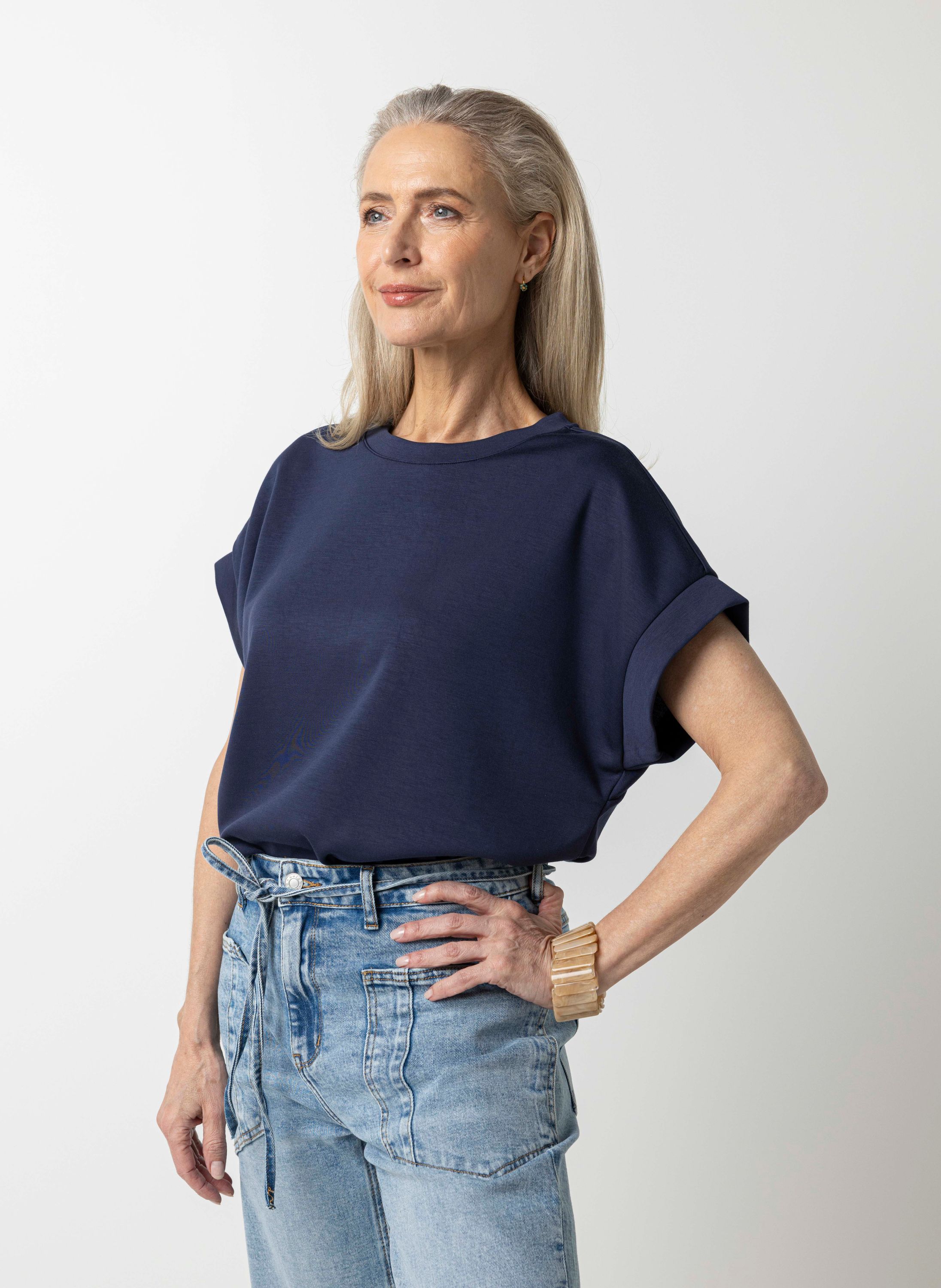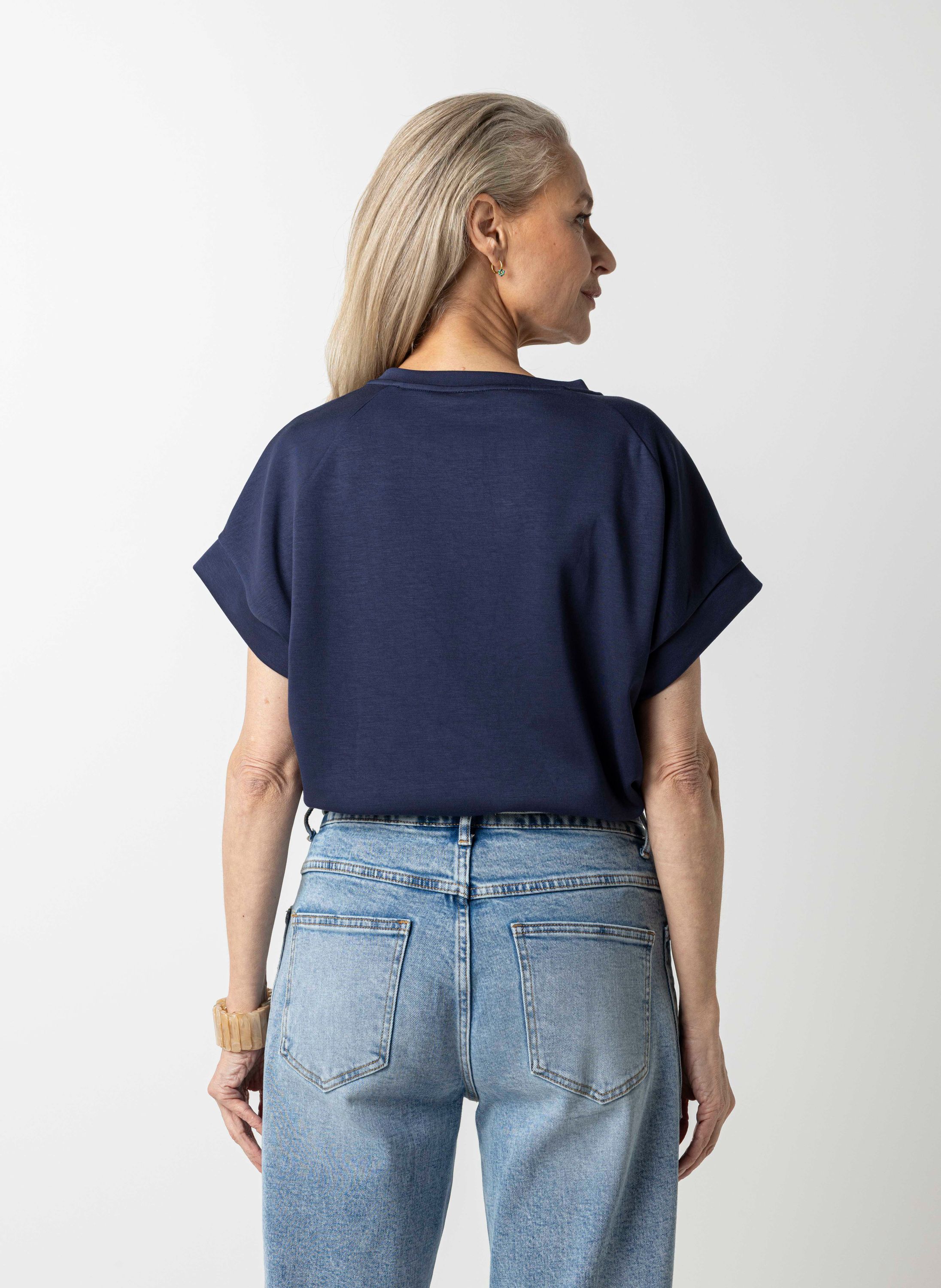 Dit shirt met ronde hals heeft aangeknipte korte mouwen en een comfortabele pasvorm.