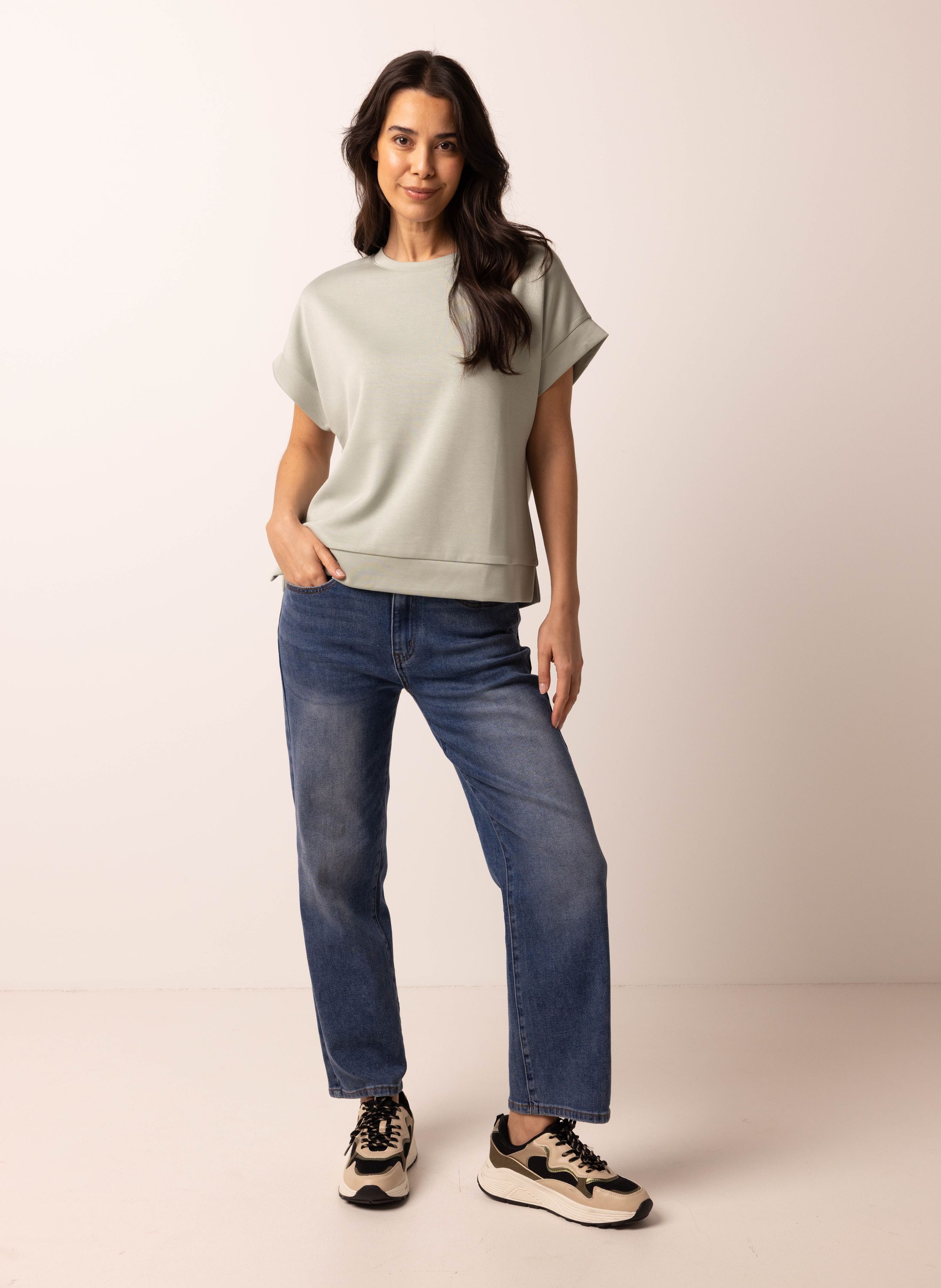 Dit shirt met V-hals heeft aangeknipte korte mouwen en een comfortabele fit.