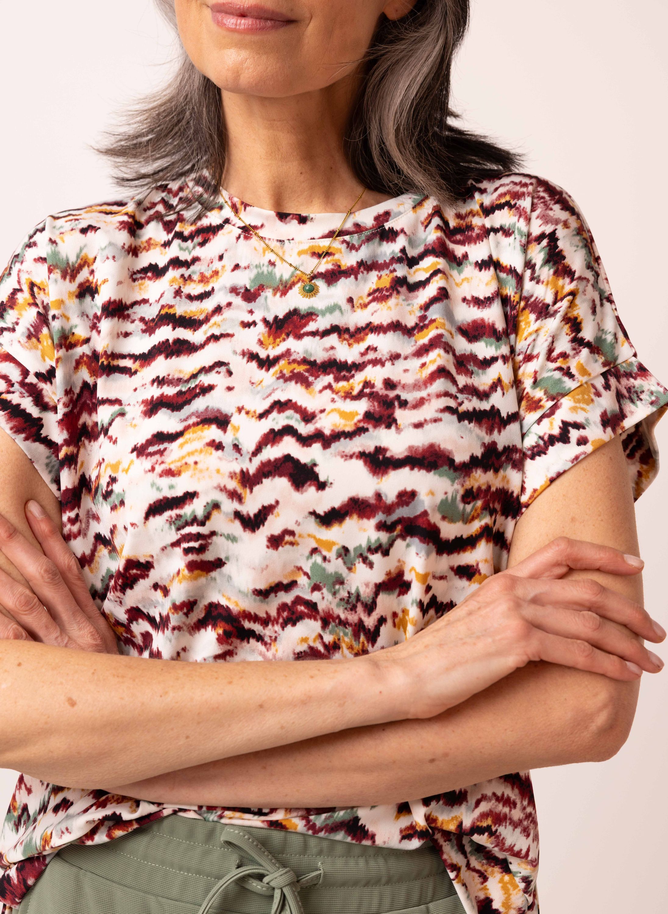 Dit shirt met ronde hals heeft korte mouwen en een split aan beide onderzijdes.