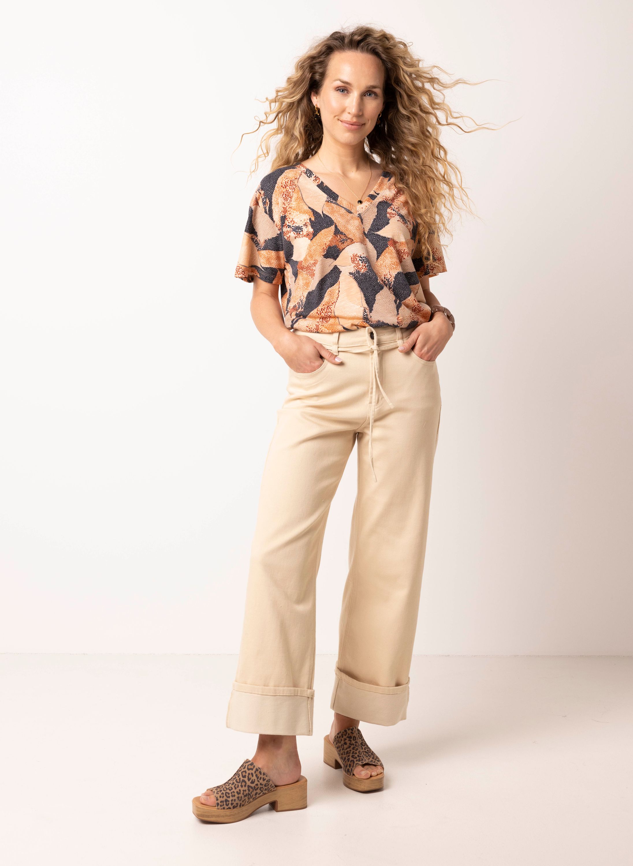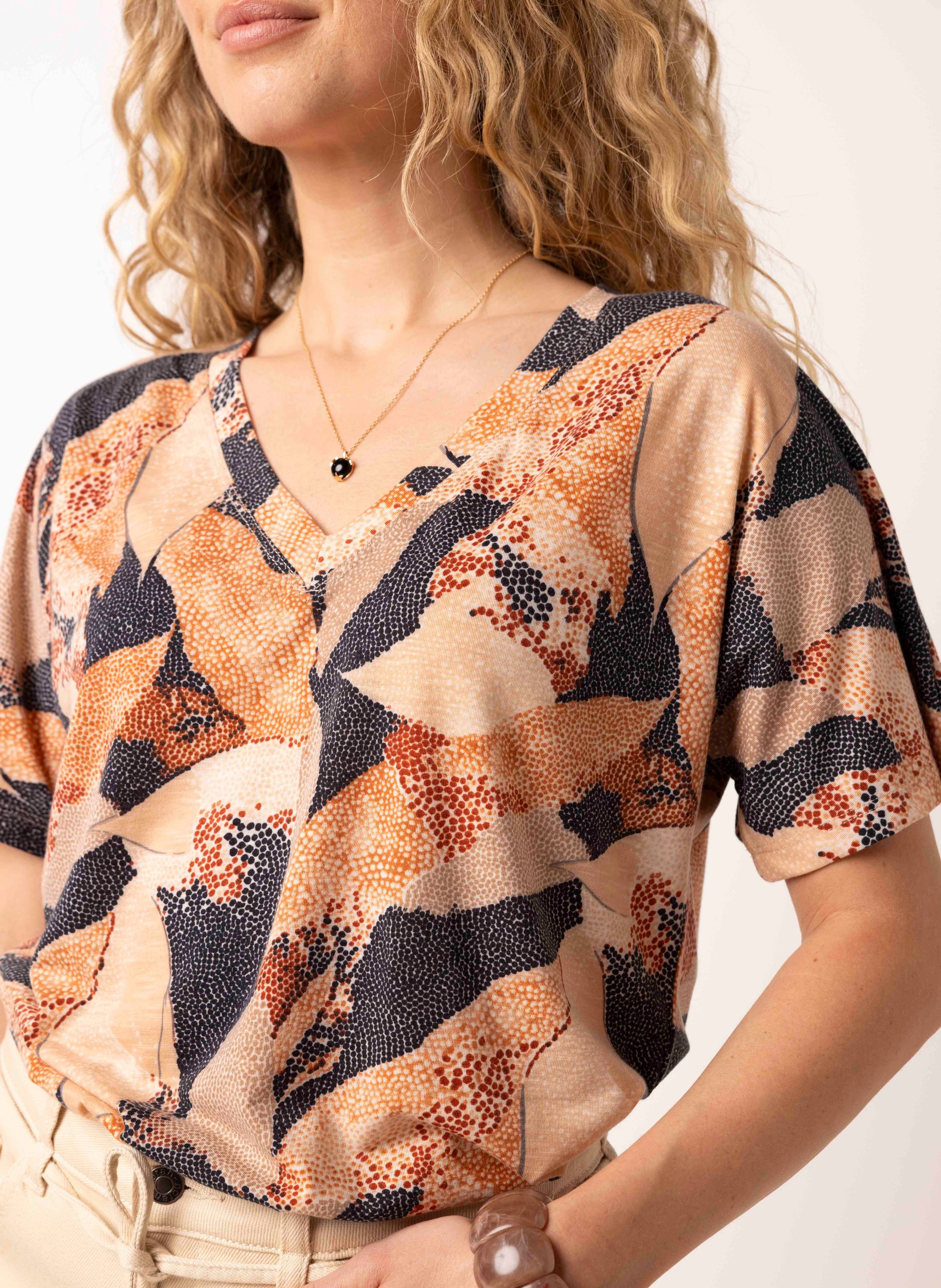 Dit shirt met V-hals en korte mouwen voelt zacht aan en heeft een comfortabele pasvorm.