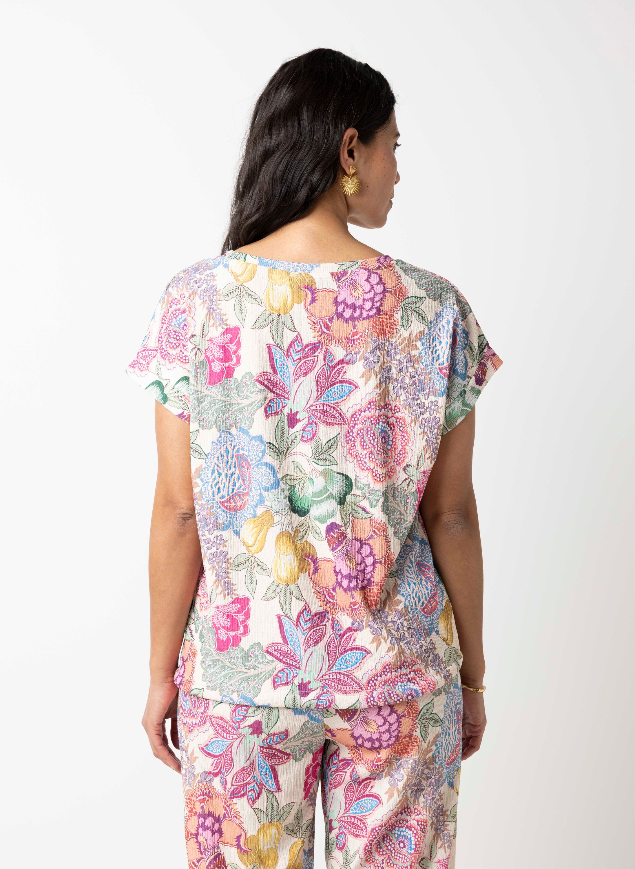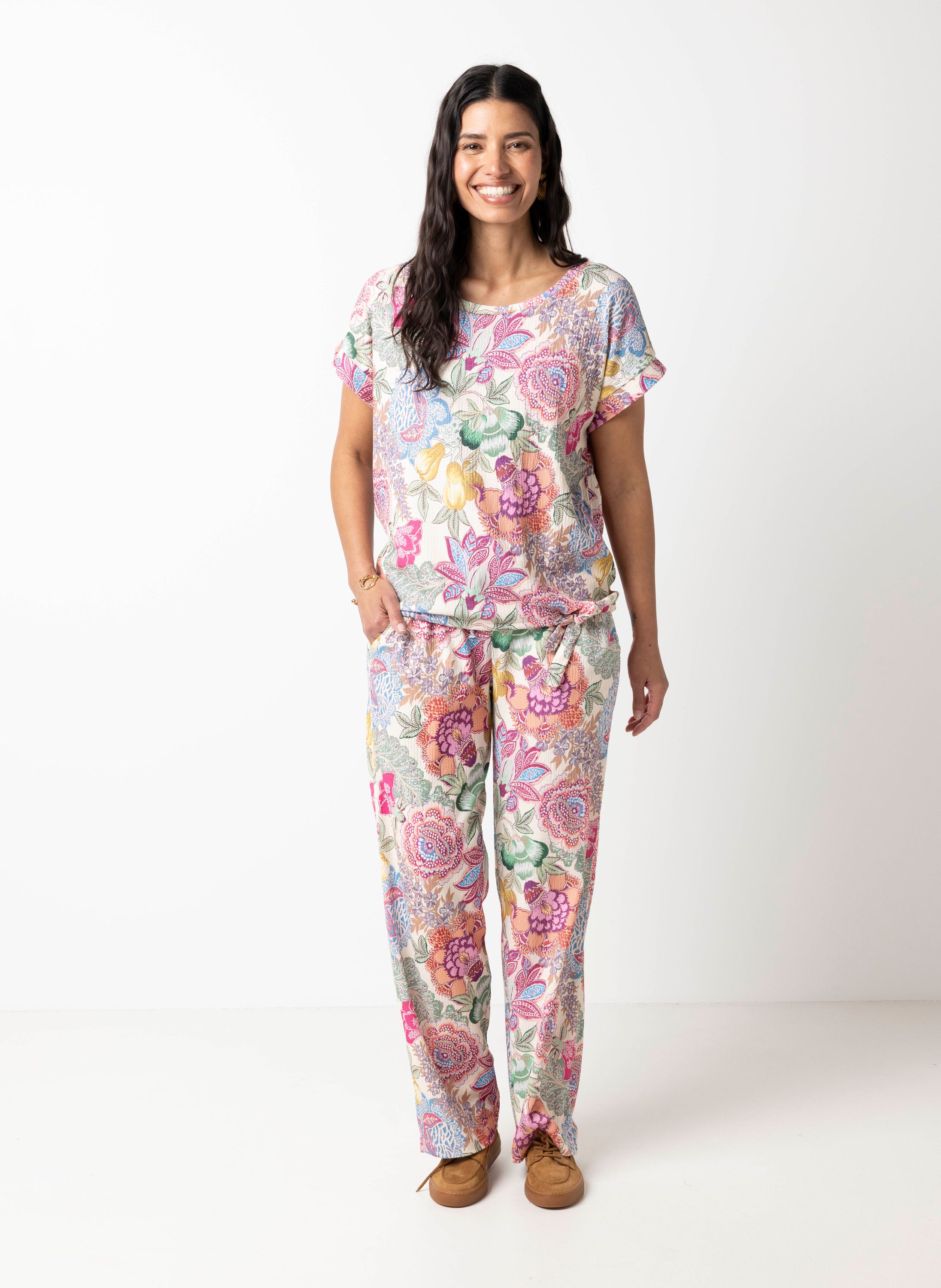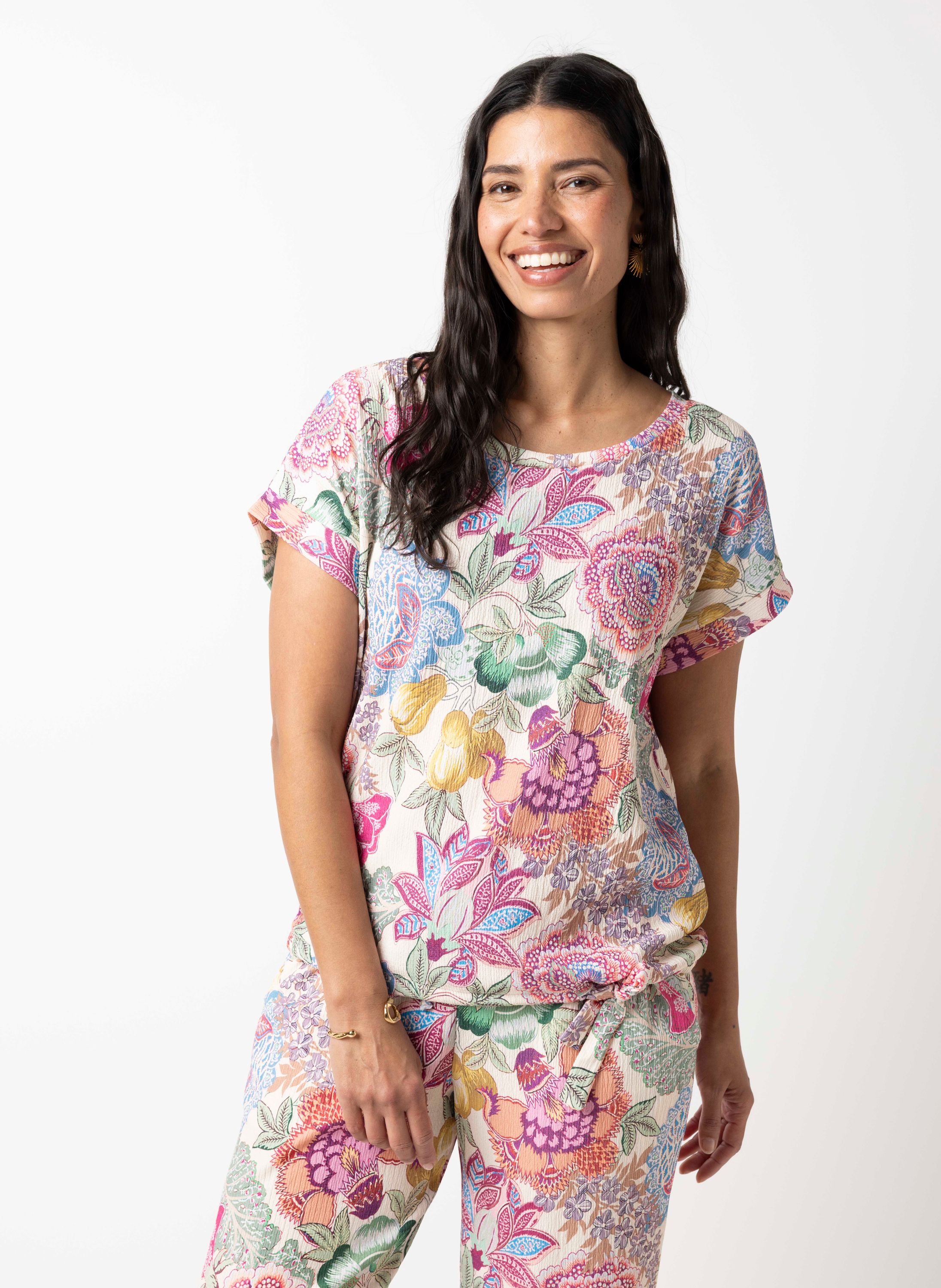 Dit shirt met ronde hals, aangeknipte korte mouwen en strikkoord maakt deel uit van een co-ord set.