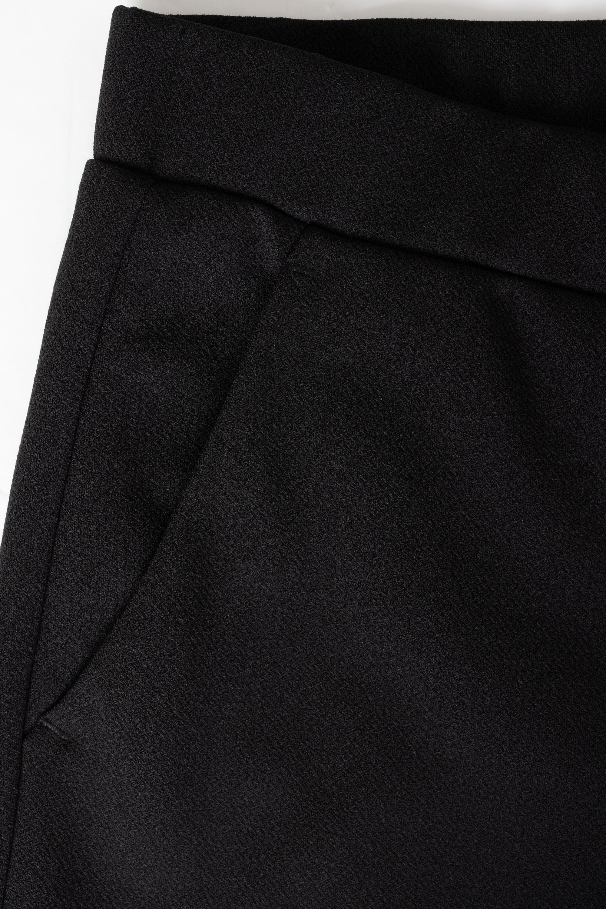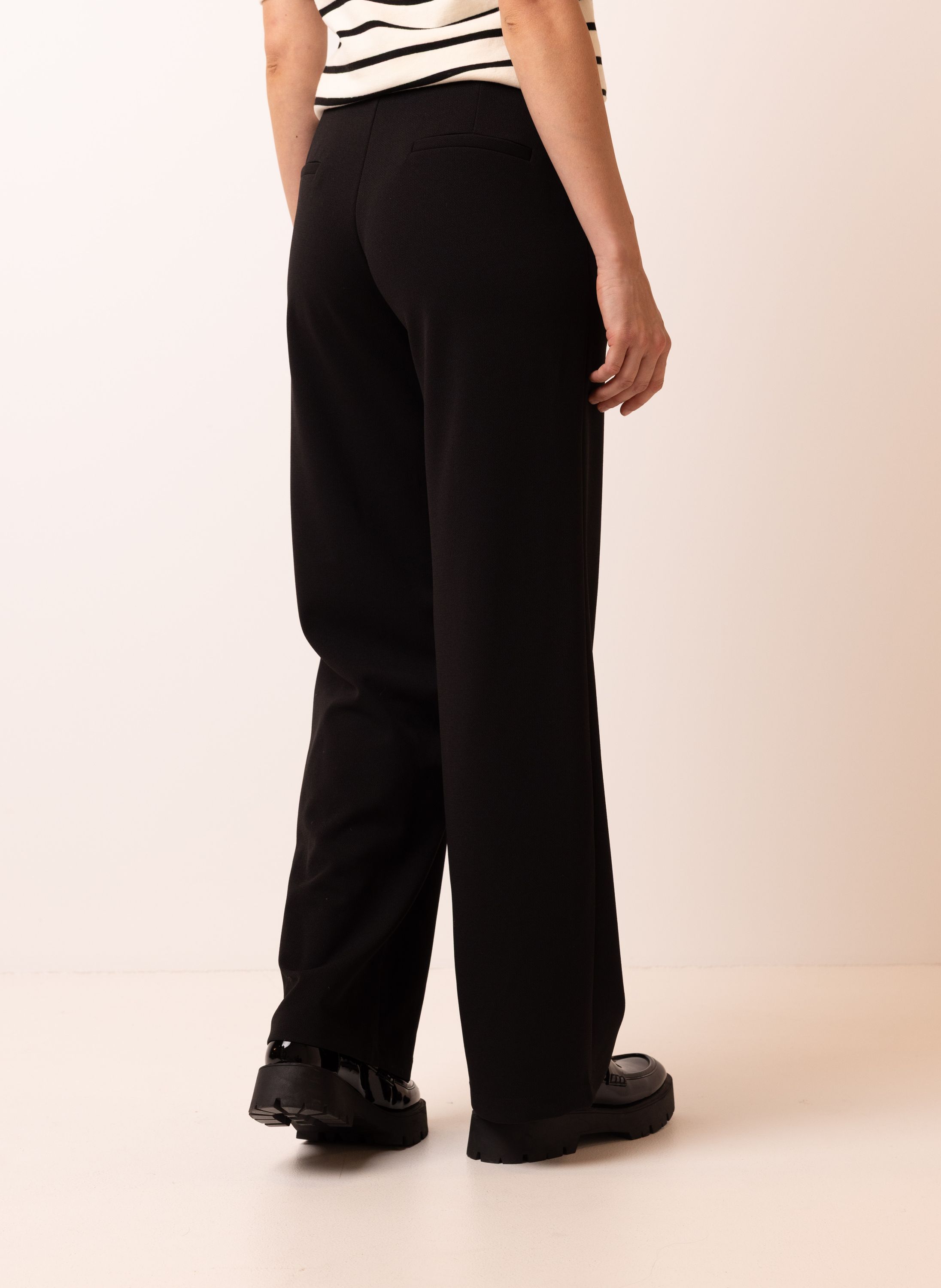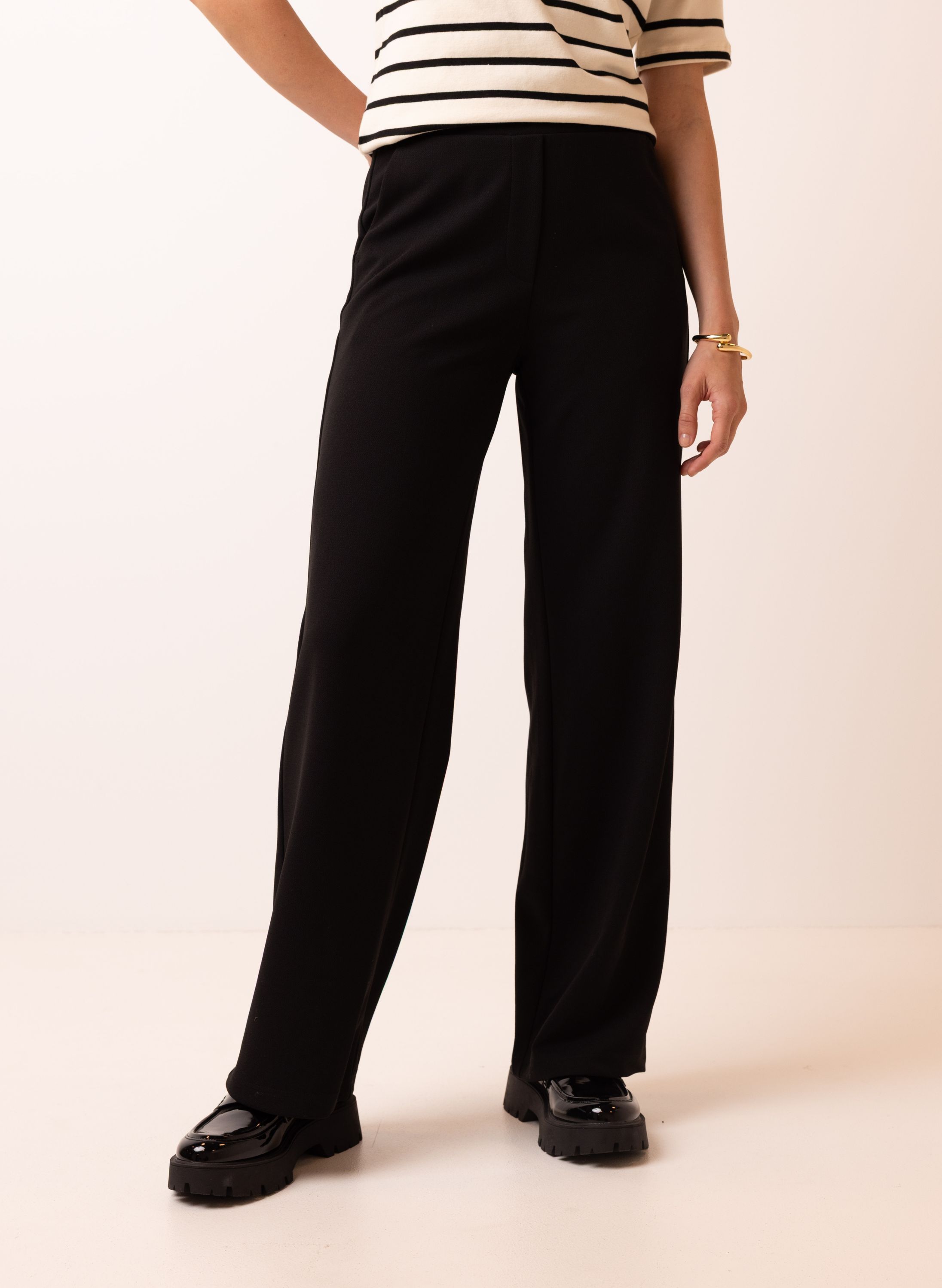 Deze high waist straight fit broek met elastische tailleband, steekzakken voor en decoratieve paspelzakken achter is onderdeel van een co-ord set.