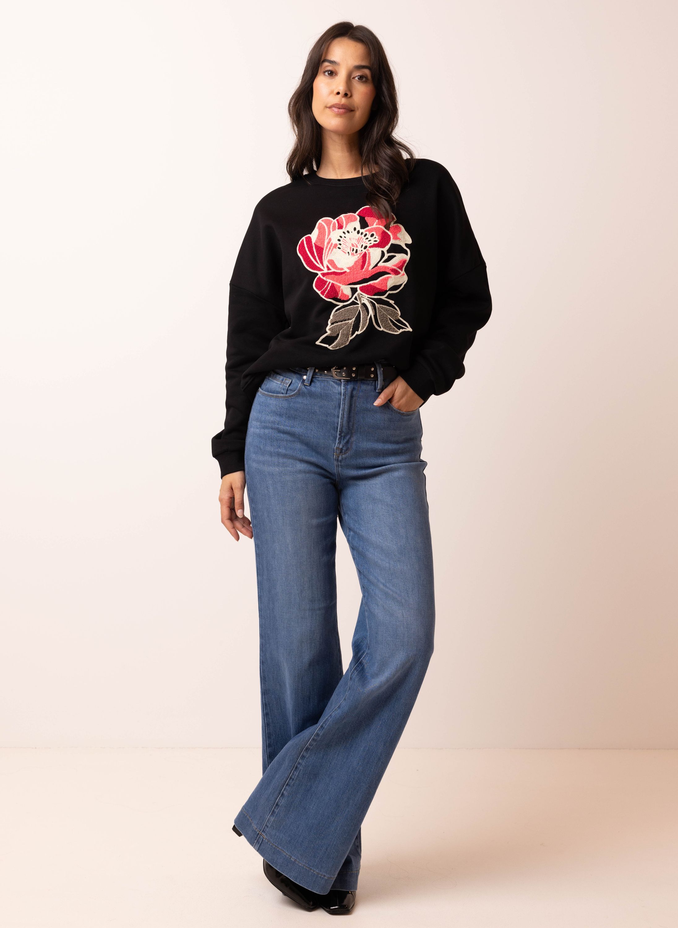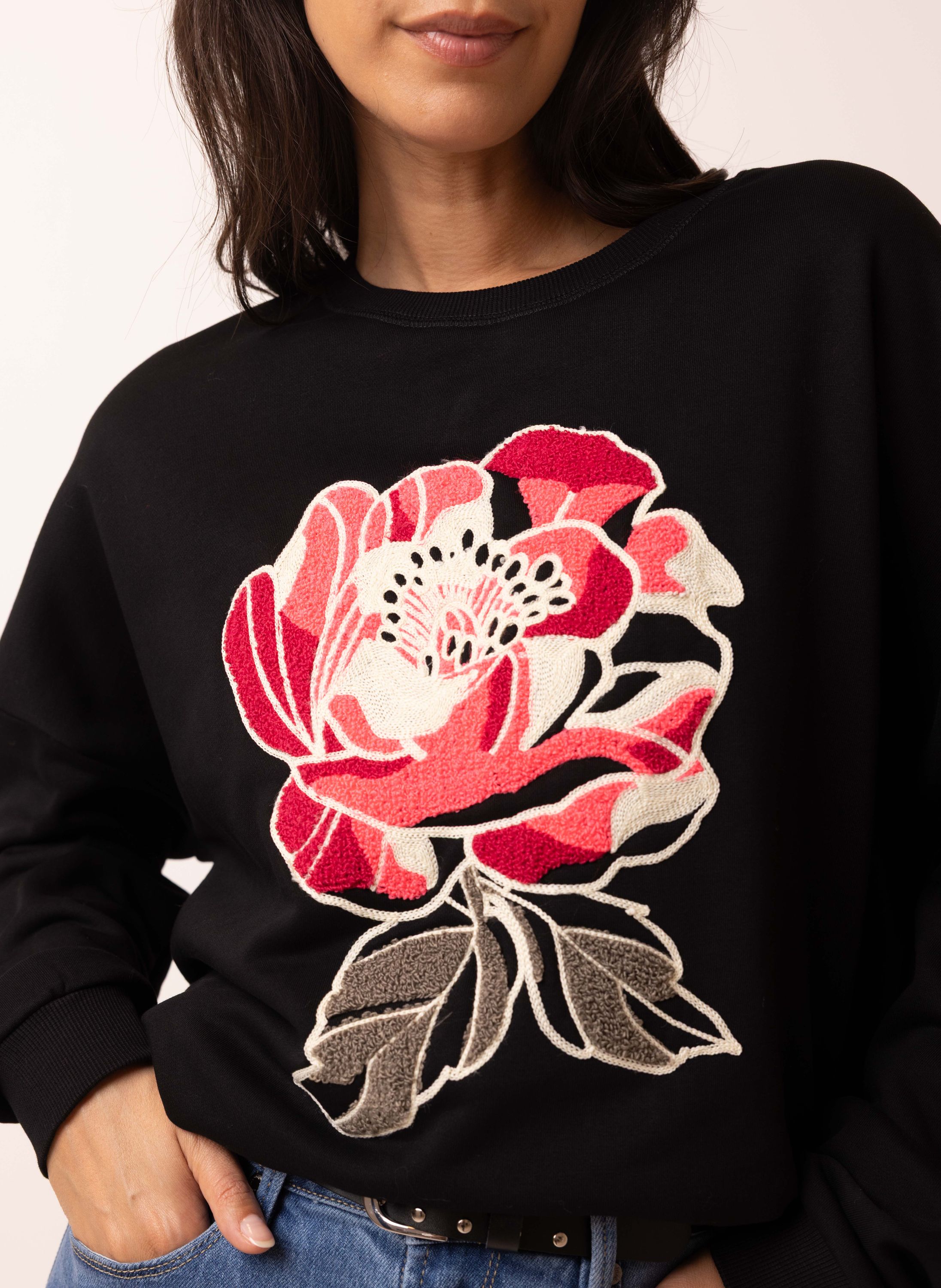 Sweater met geborduurde bloem