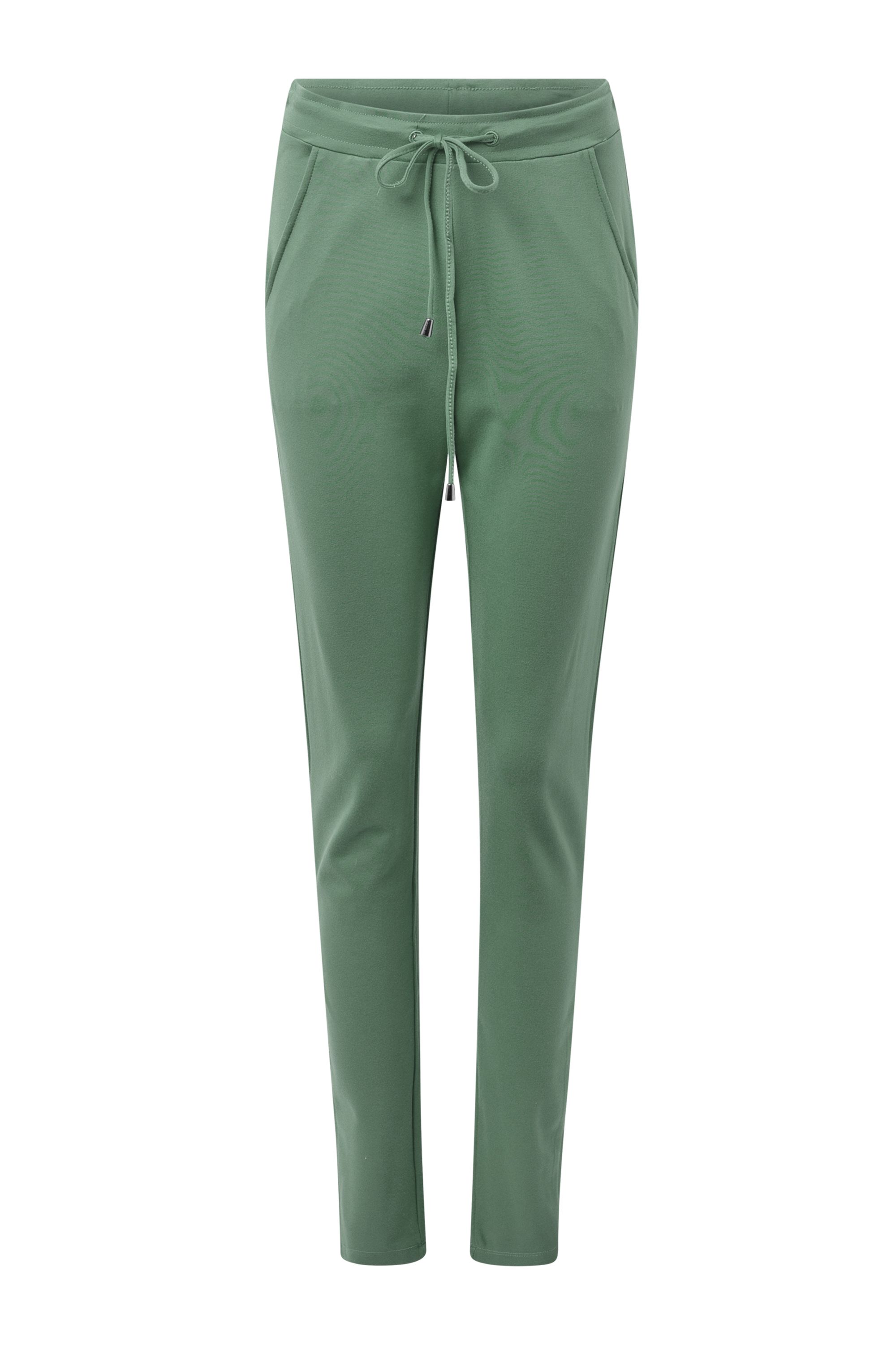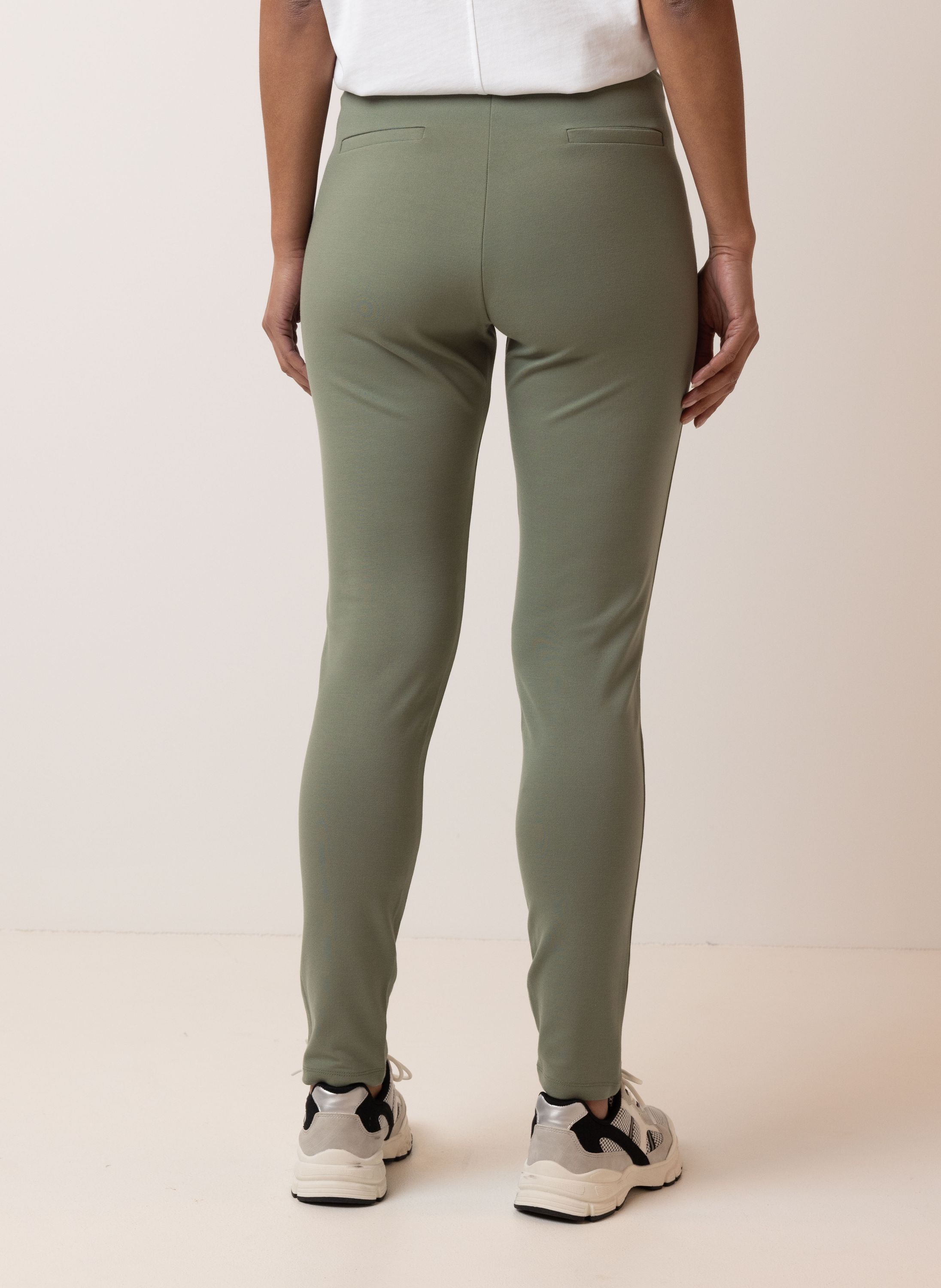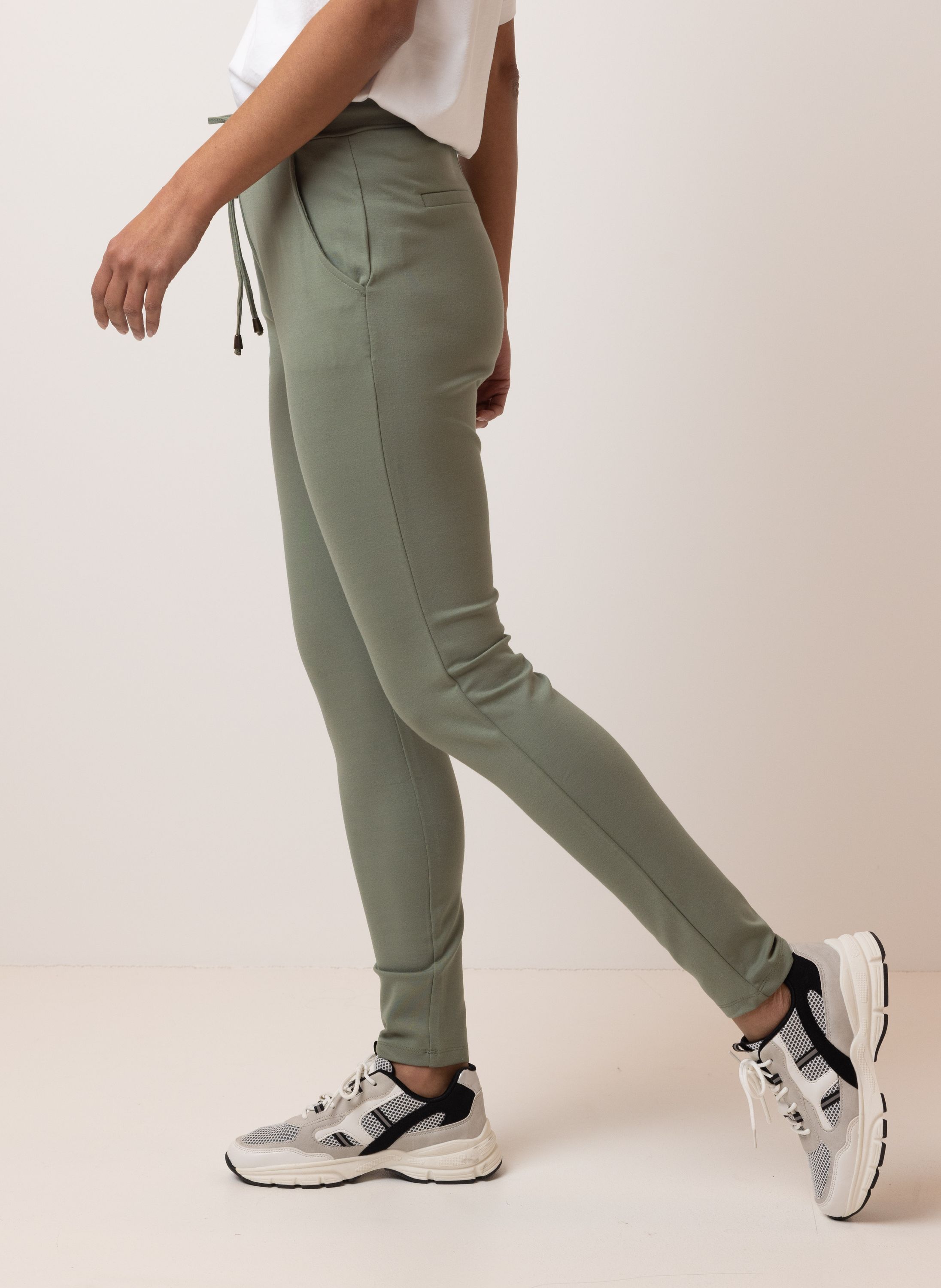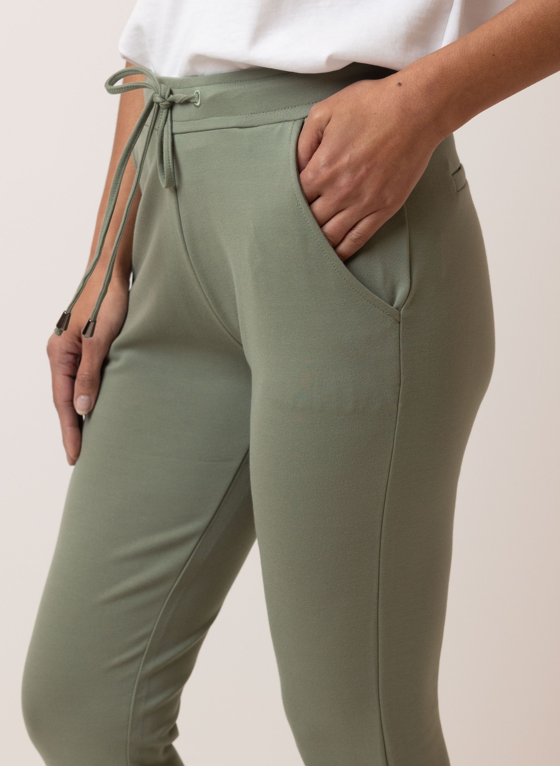 High waist skinny fit jogger met steekzakken, paspelzakken en een trekkoord op de taille. Binnenbeenlengte: 77 cm.