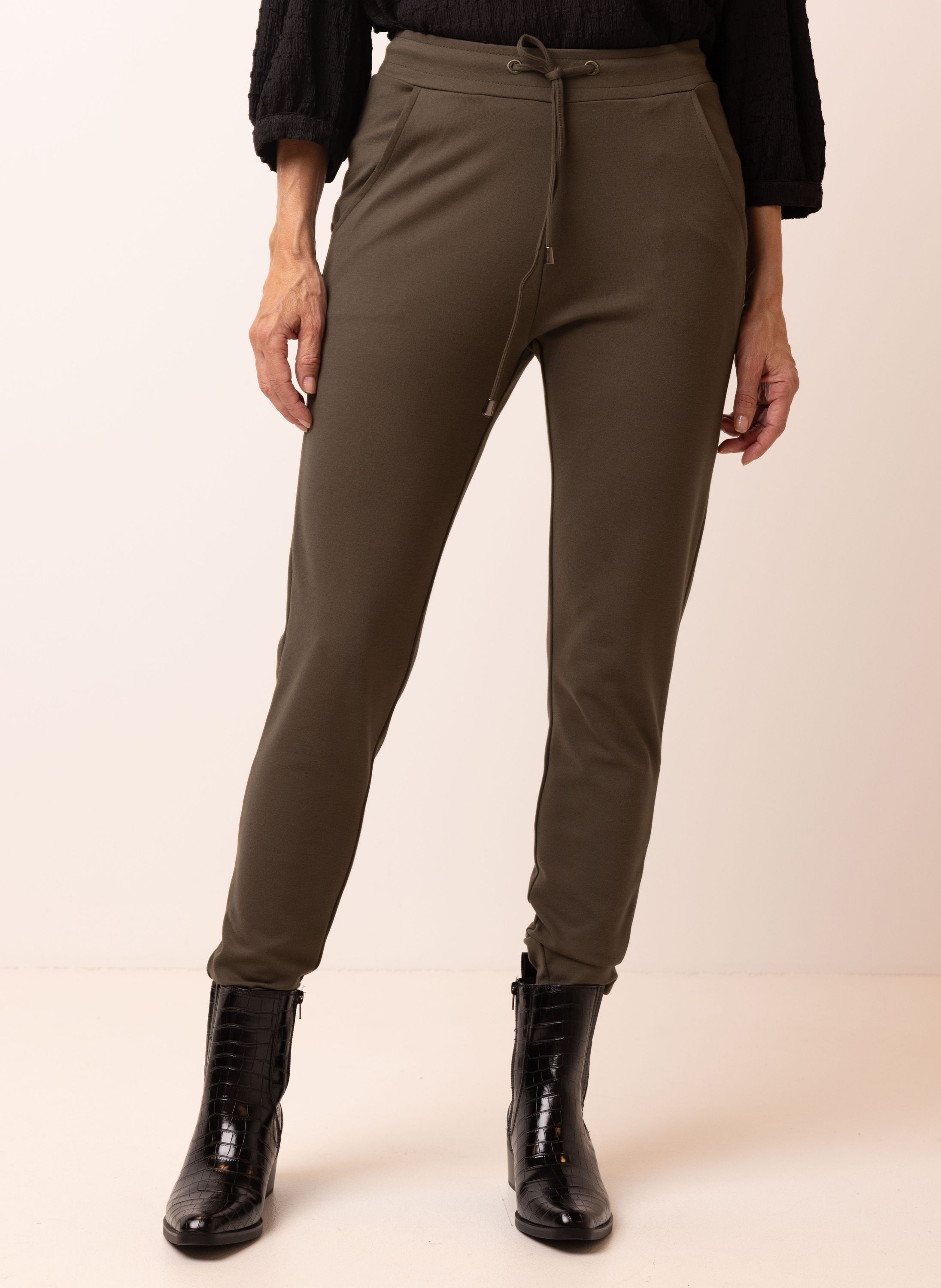 Deze high waist skinny fit jogger heeft steekzakken, paspelzakken en een trekkoord in de taille voor een comfortabele fit.