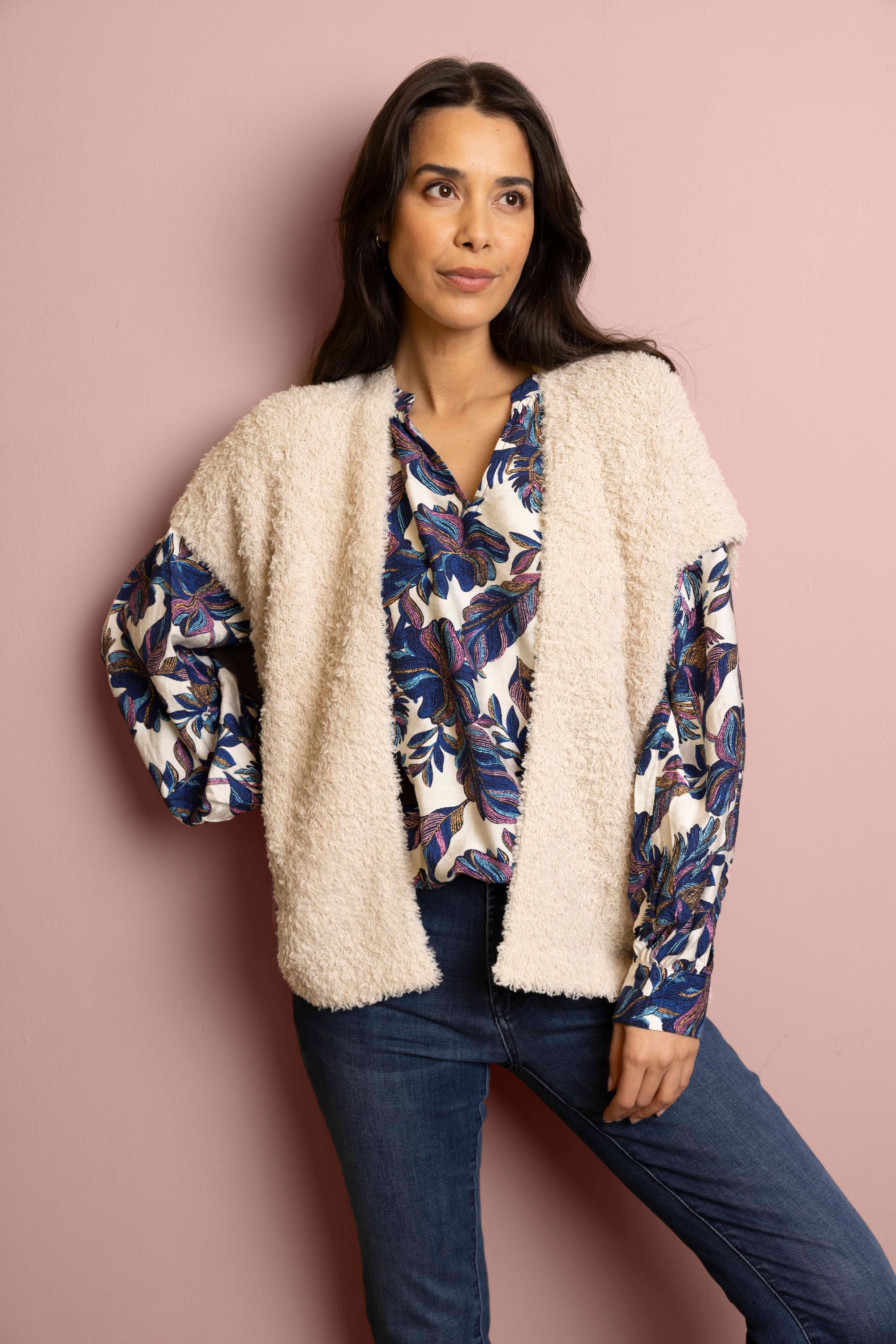 Dit gebreide open gilet is gemaakt van een zachte stof en ideaal als laagje.