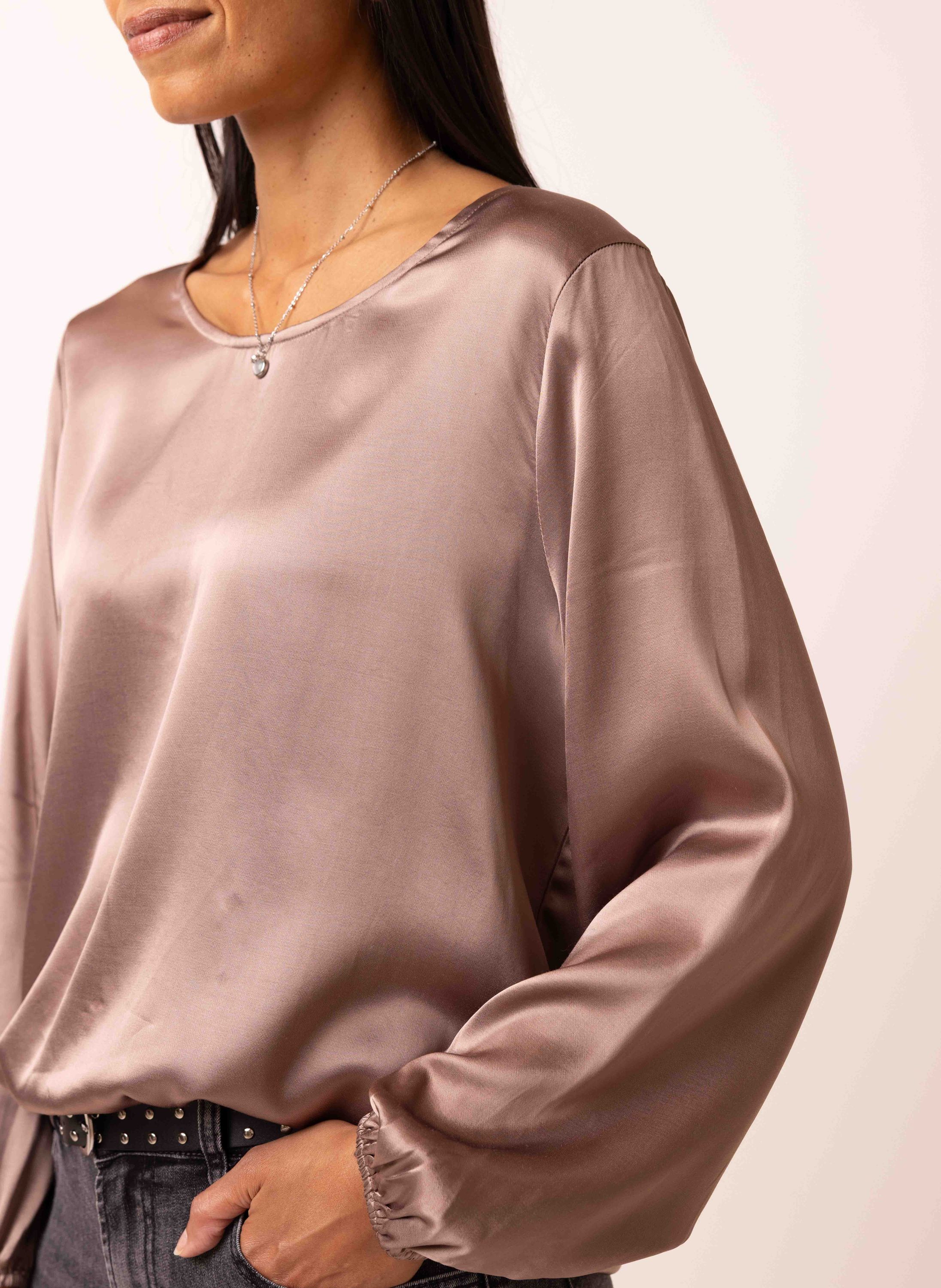 Taupe glanzende blouse