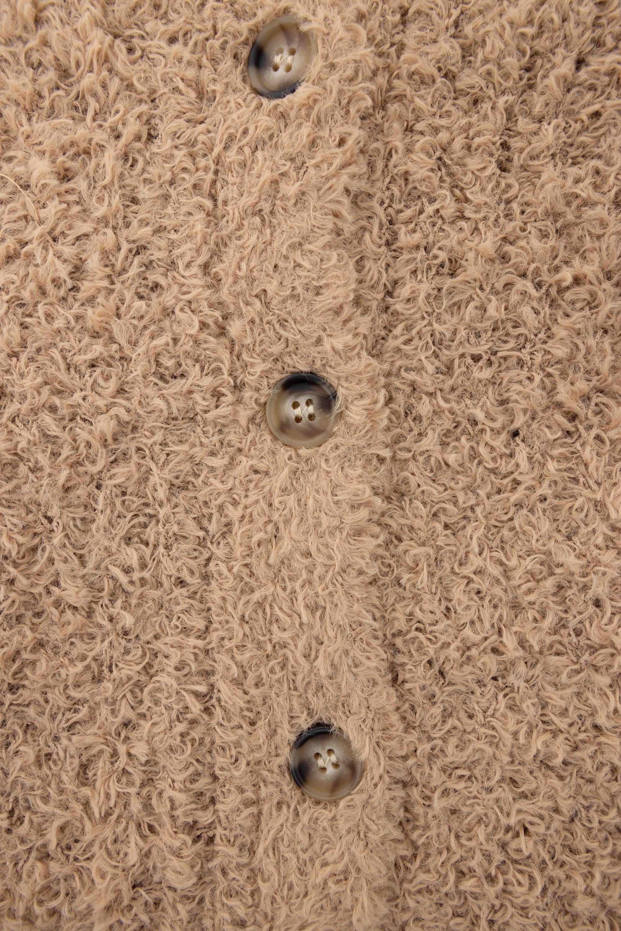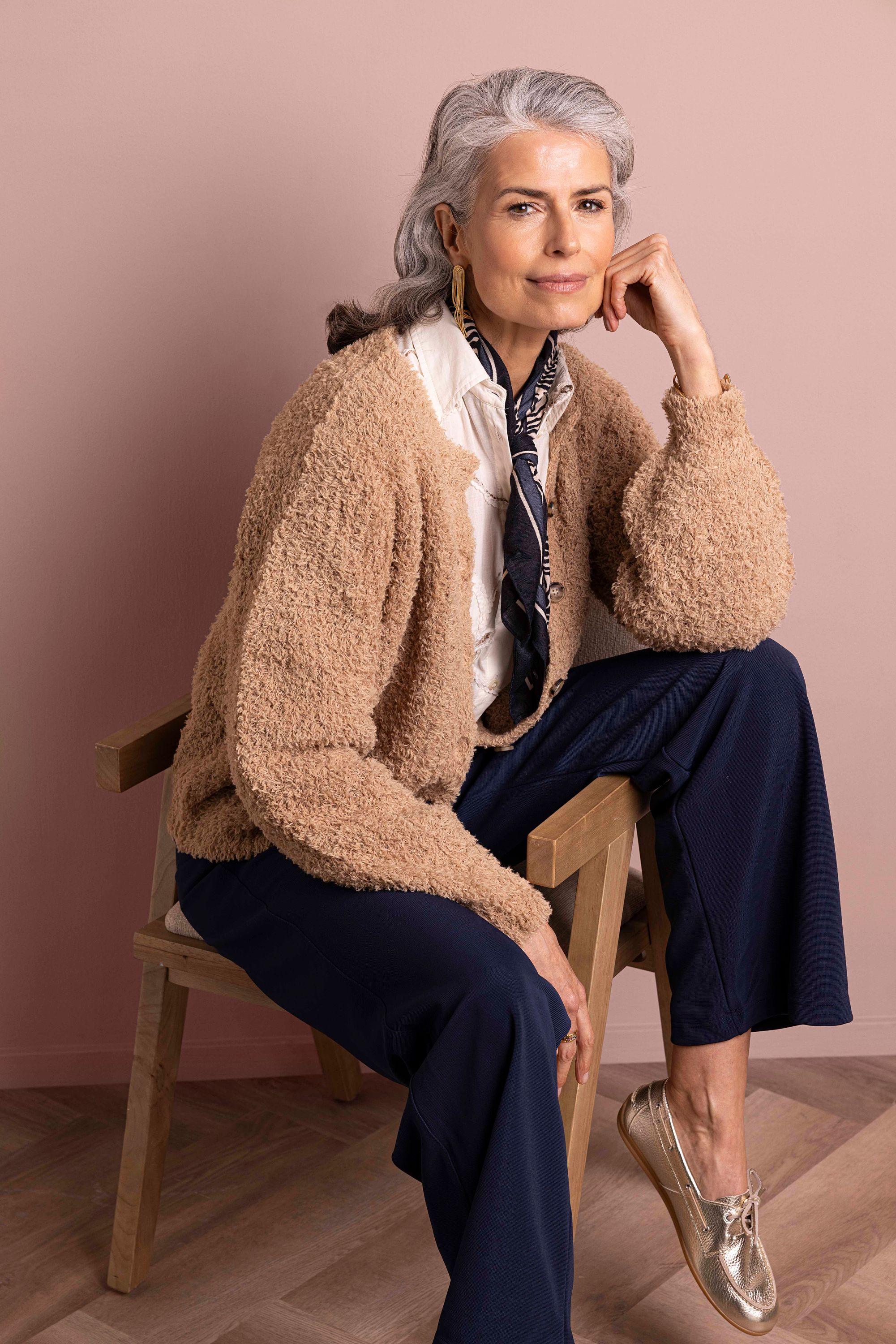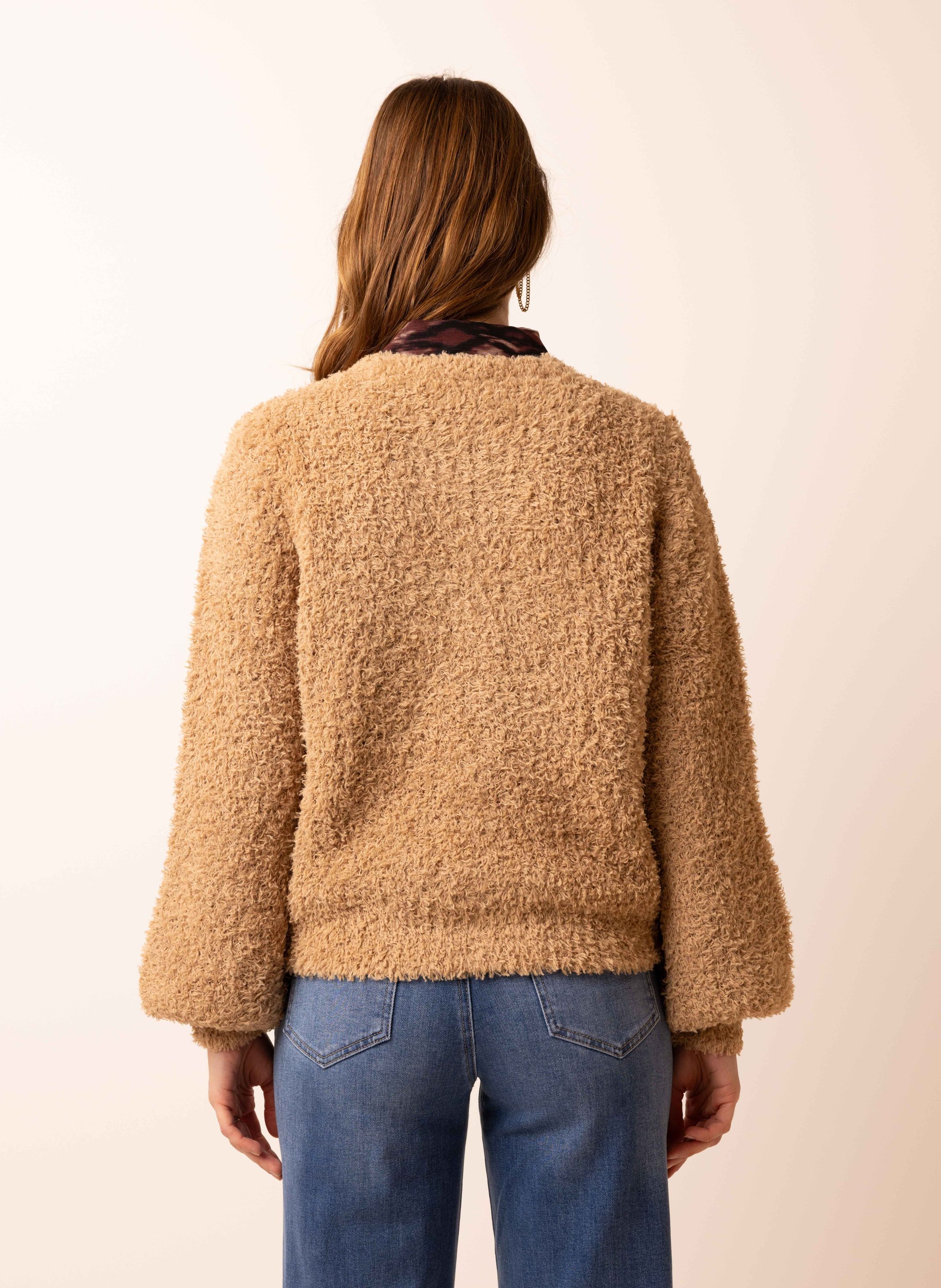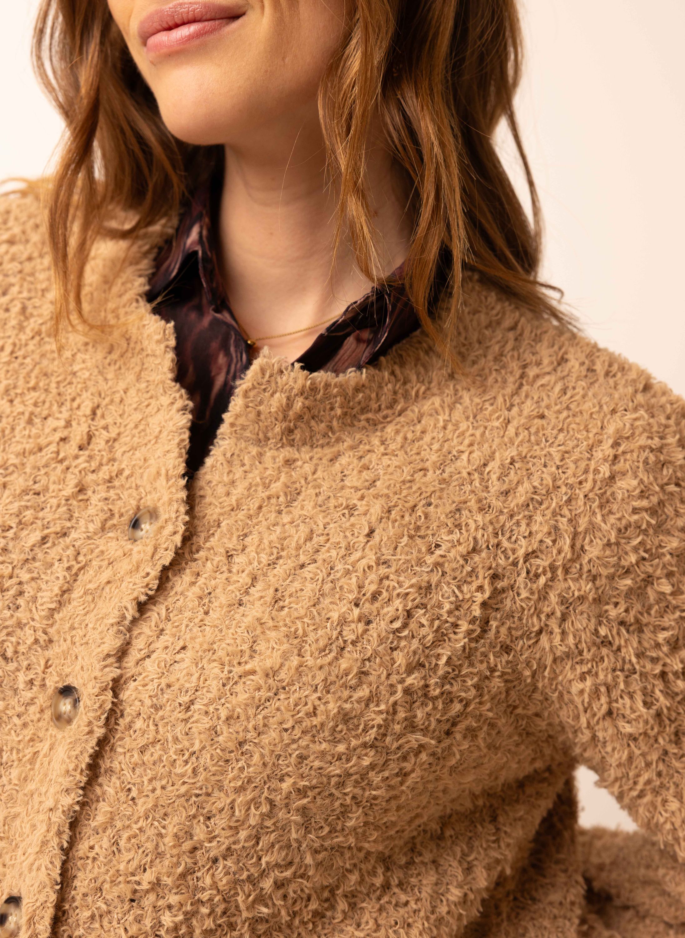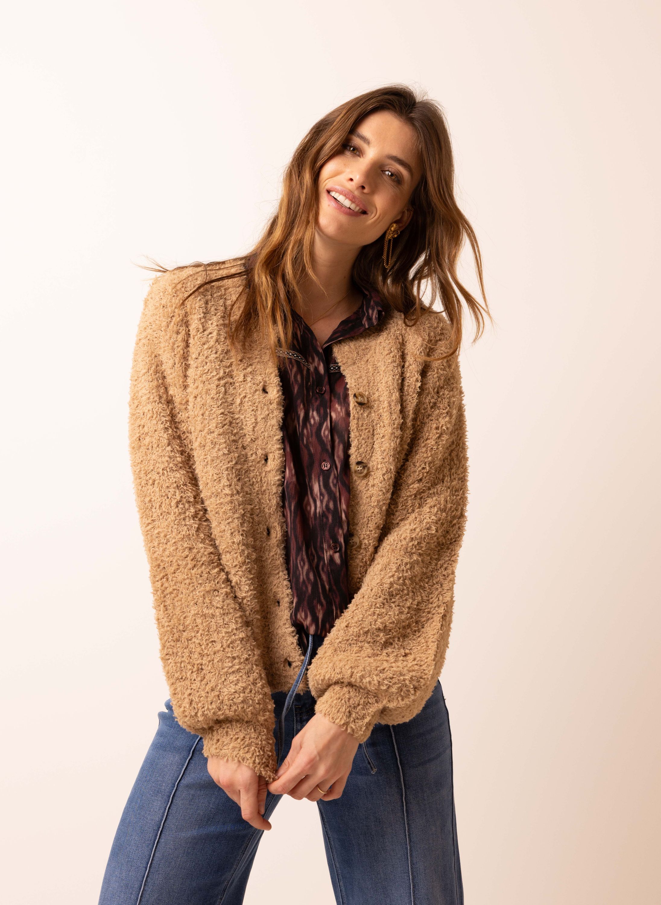 Dit zachte vest met V-hals en knoopsluiting is gemaakt van een stretchy stof en heeft lange ballonmouwen voor een vrouwelijke touch.