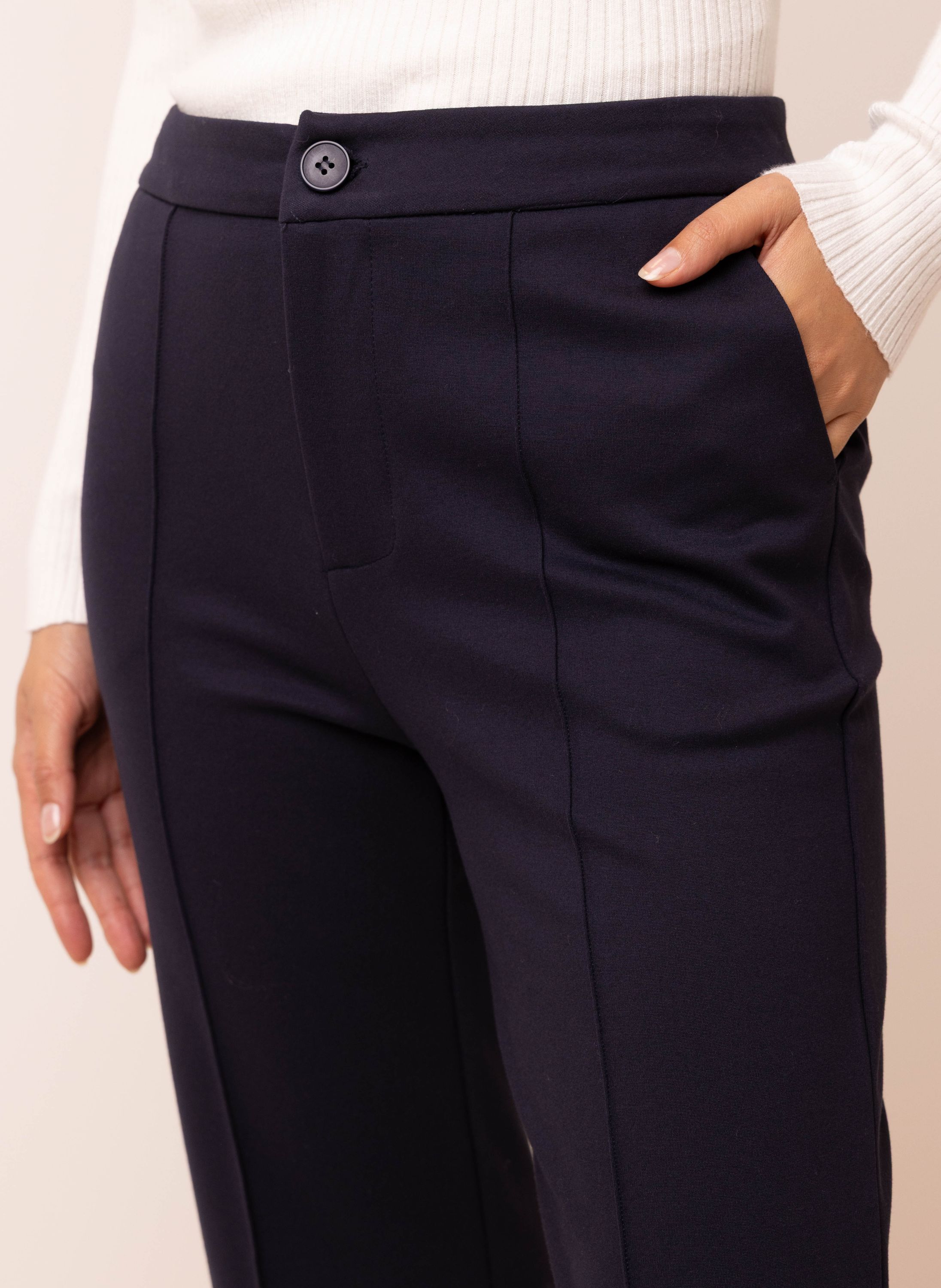 Deze high waist straight fit broek met rits- en knoopsluiting heeft steekzakken aan de voorzijde en een naad over beide broekspijpen voor een flatterend effect. Deze broek is ideaal voor vrouwen met een lengte tussen de 1.70 en 1.75 meter. Hij is ook verkrijgbaar in lengtemaat 30.