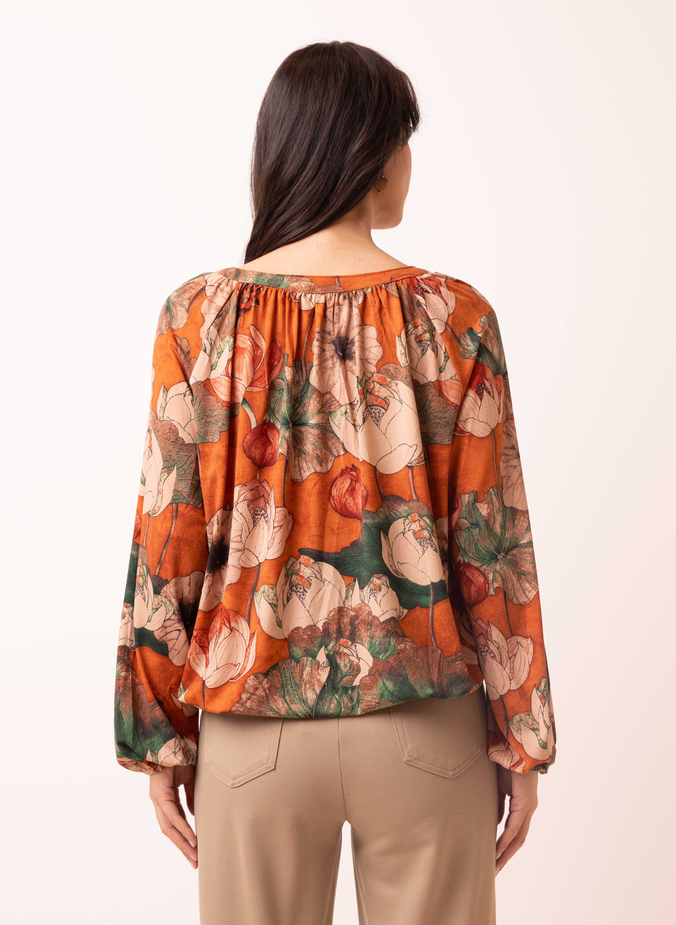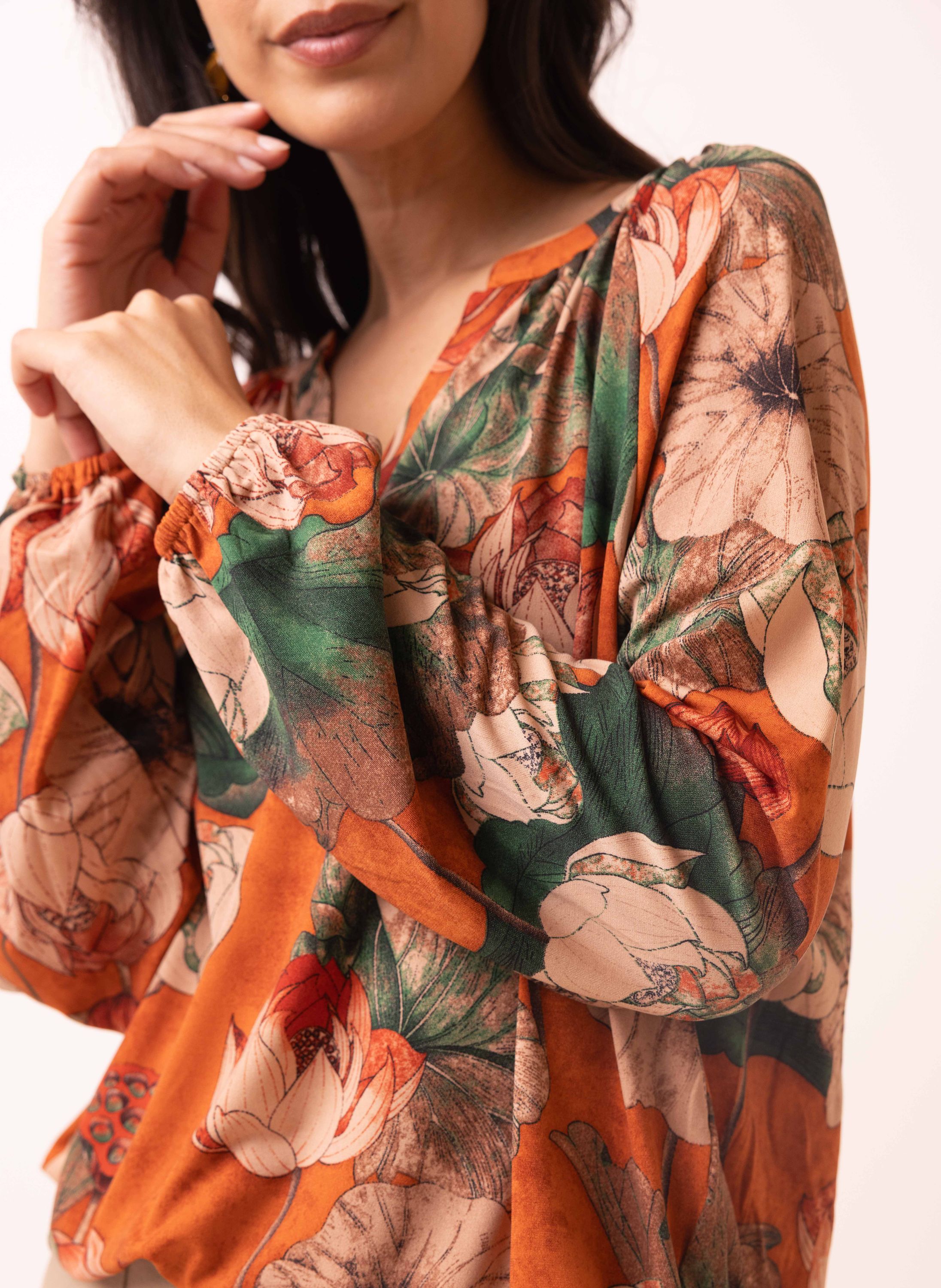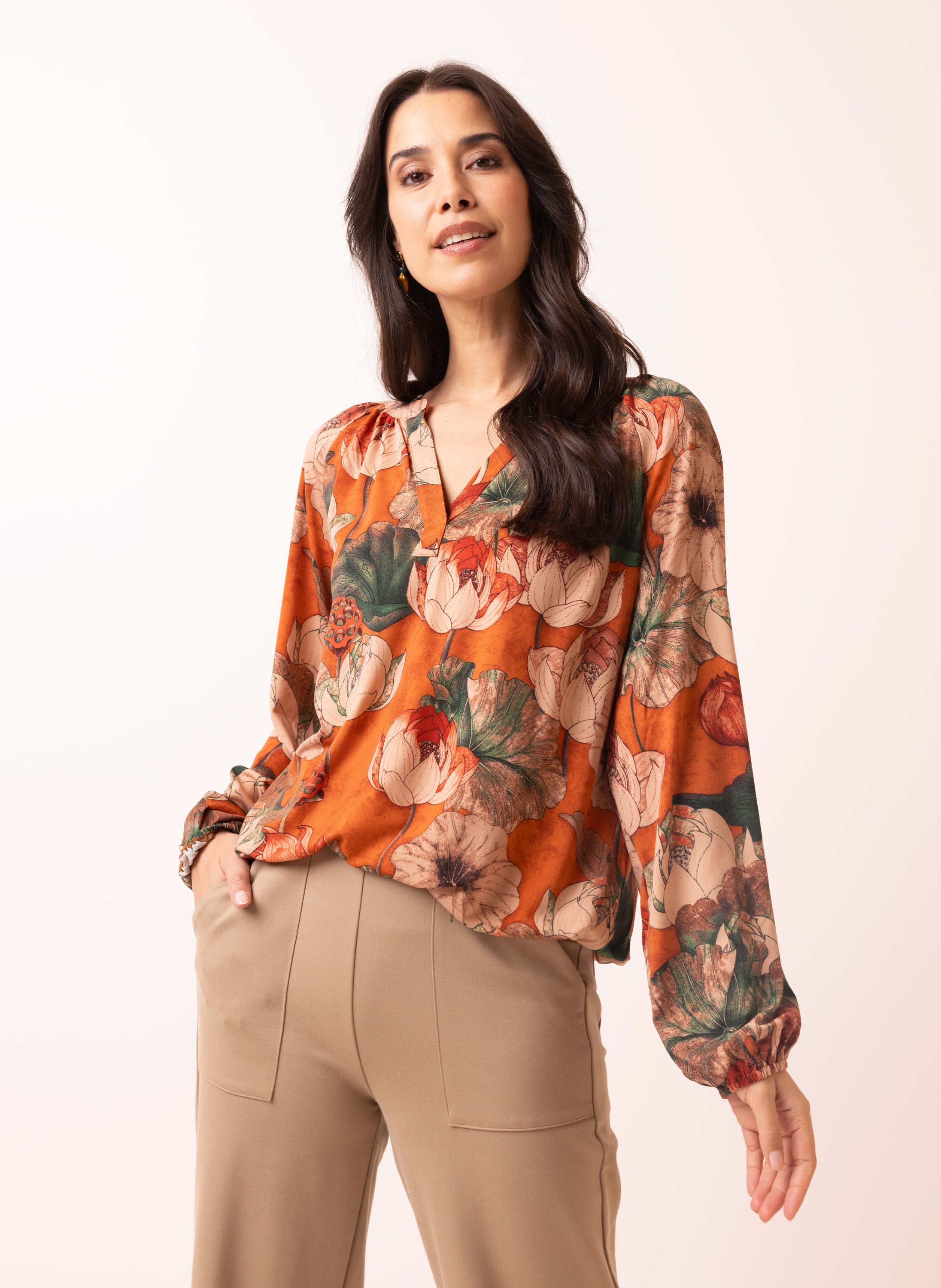 Dit shirt met geplooide V-hals, lange pofmouwen en elastische boorden aan de mouwen en onderzijde heeft een vrouwelijke pasvorm. Dit item is exclusief verkrijgbaar in geselecteerde winkels en online. Controleer de winkelvoorraad om de beschikbaarheid in een winkel bij jou in de buurt te bekijken.