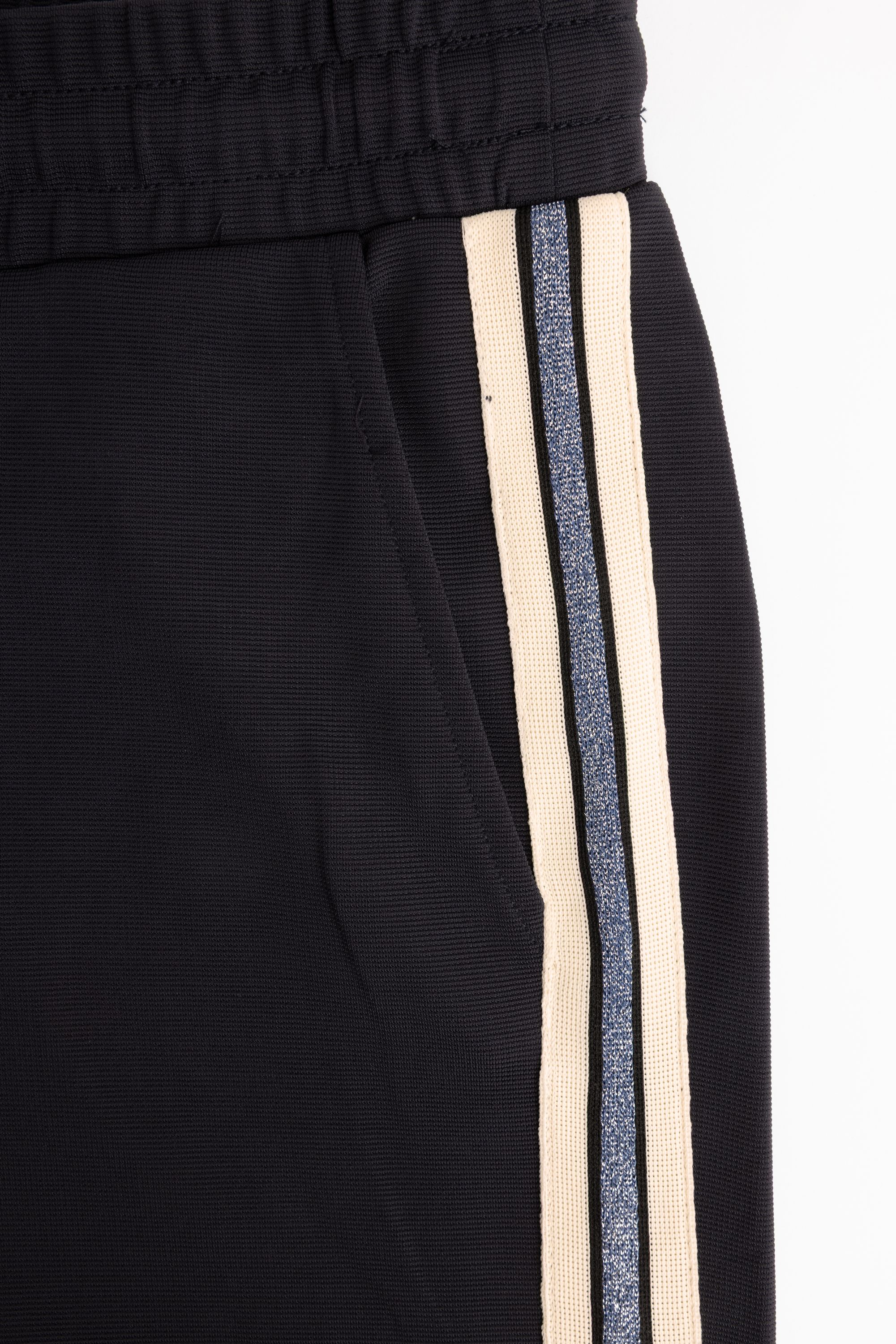 Deze high waist straight fit broek met elastische band, trekkoord, steekzakken voor, dichte paspelzakken achter en een bies aan de zijde van de broekspijp.Â