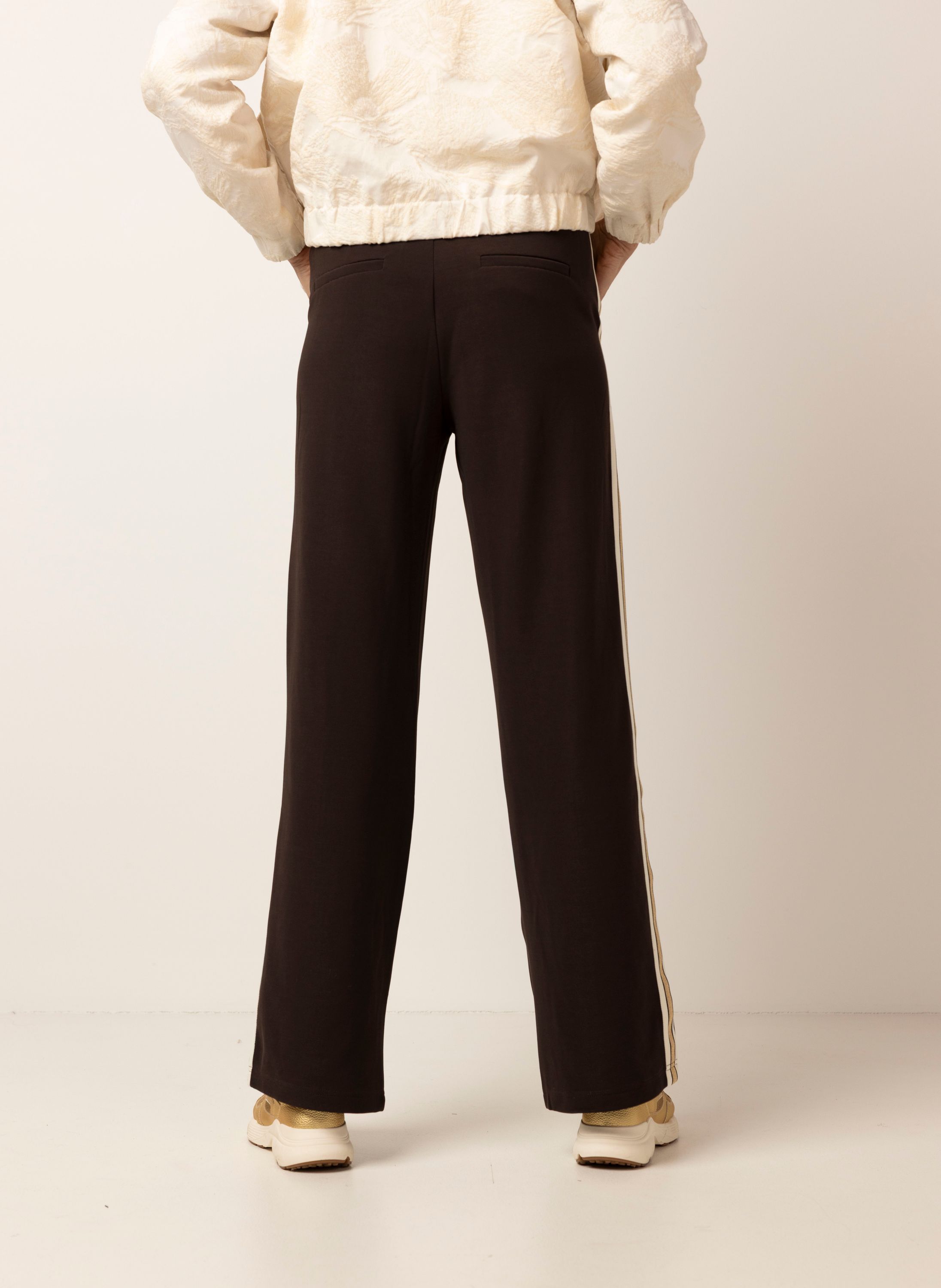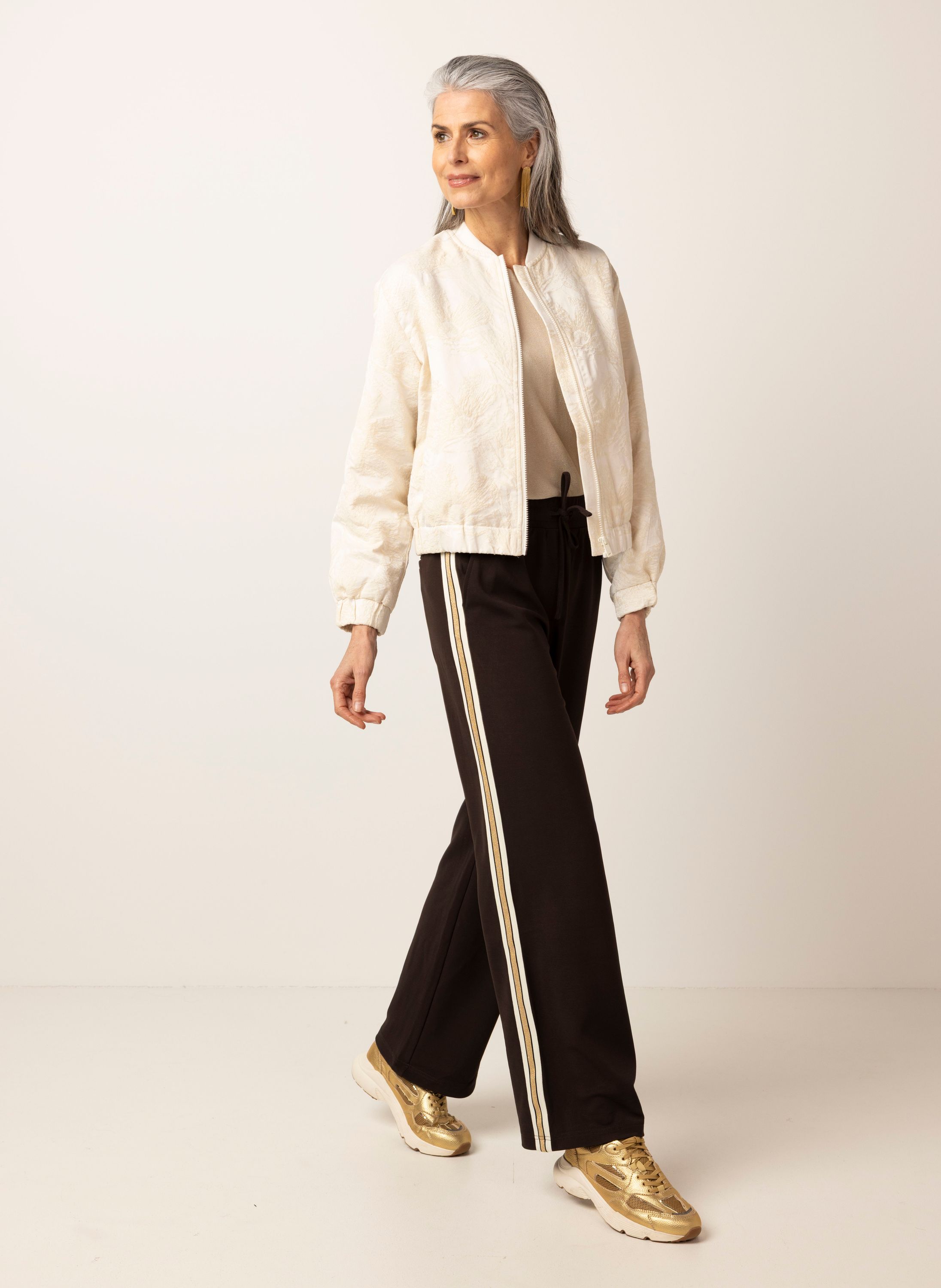 Deze high waist straight fit broek met elastische band, trekkoord, steekzakken voor, dichte paspelzakken achter en een bies aan de zijde van de broekspijp. Deze jeans is ideaal voor vrouwen met een lengte tussen de 1.70 en 1.75 meter. Deze broek is ook verkrijgbaar in lengtemaat 30.
