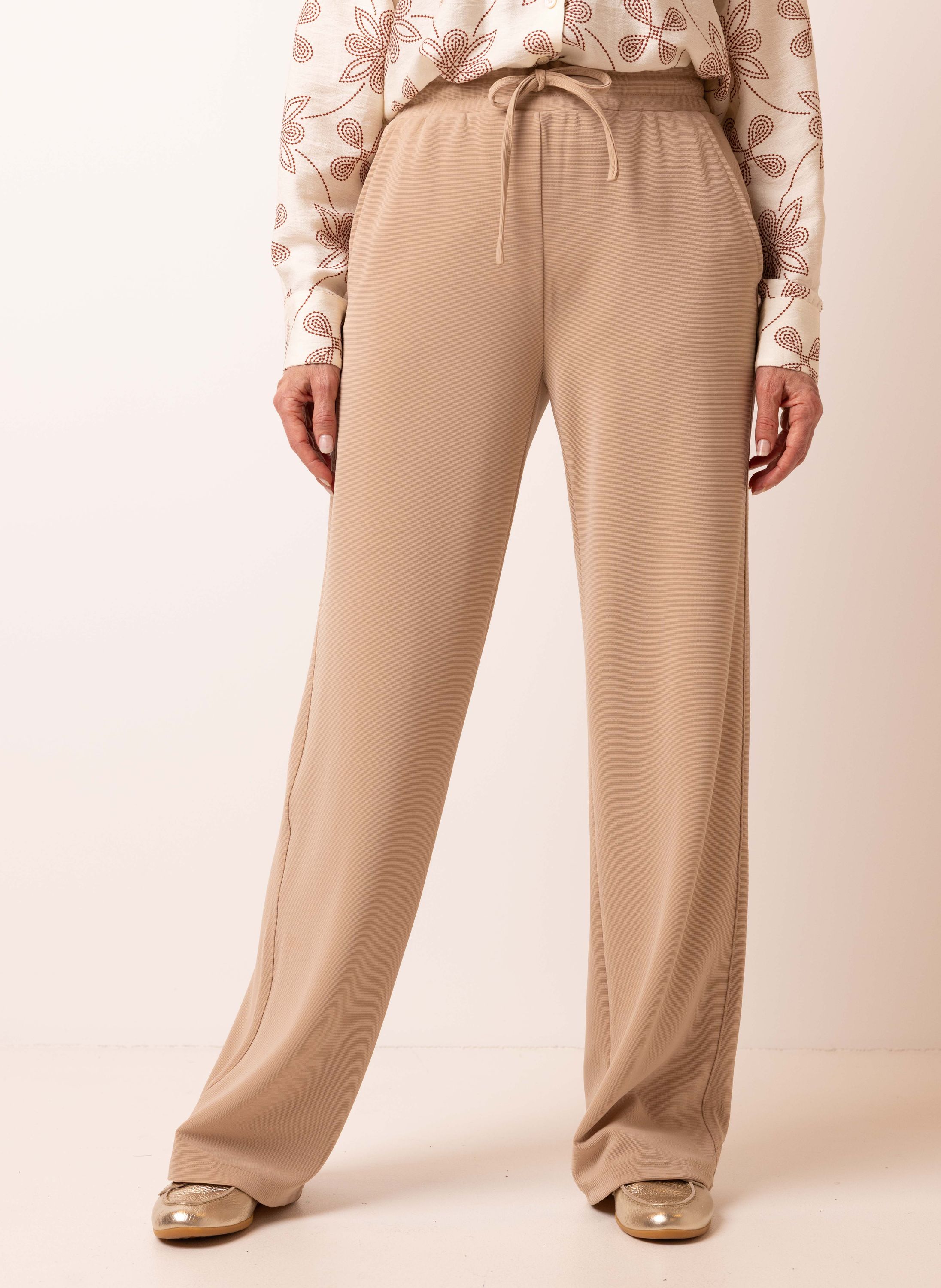 Deze high waist straight fit broek met elastische band, trekkoord, steekzakken voor en dichte paspelzakken achter is ook verkrijgbaar in lengtemaat 30.