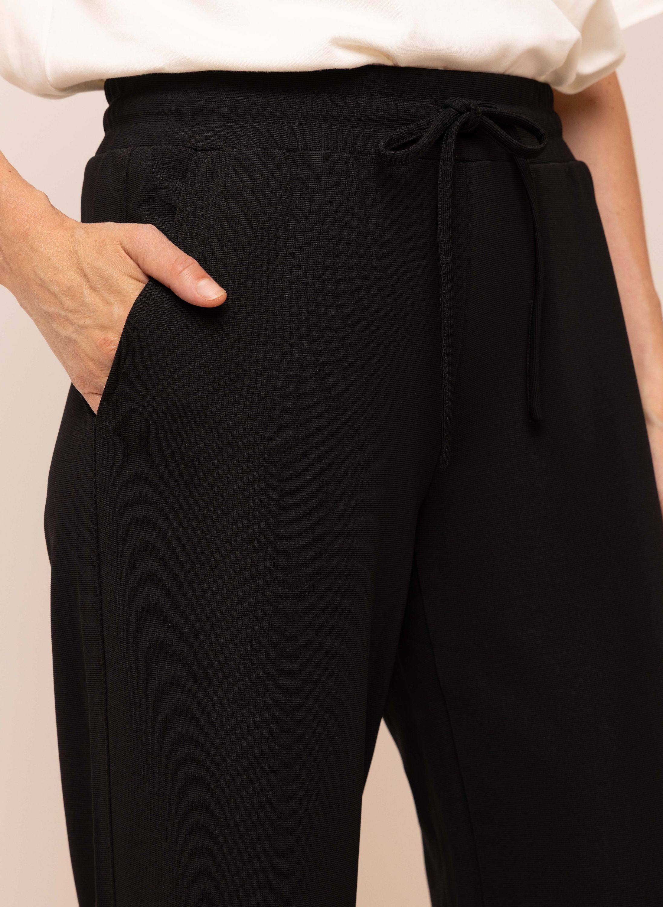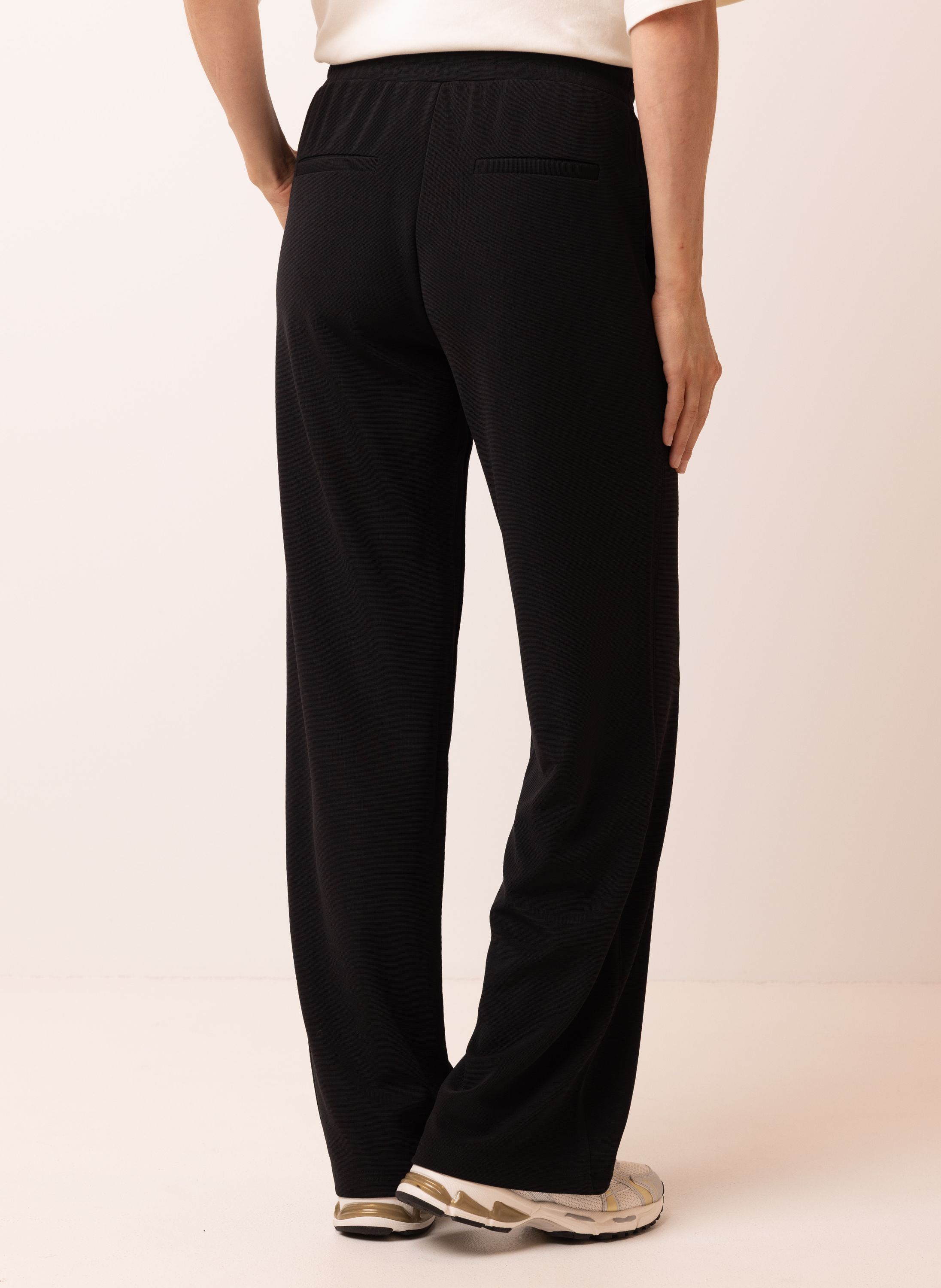 Deze high waist straight fit broek met elastische band, trekkoord, steekzakken voor en dichte paspelzakken achter is ook verkrijgbaar in lengtemaat 30.