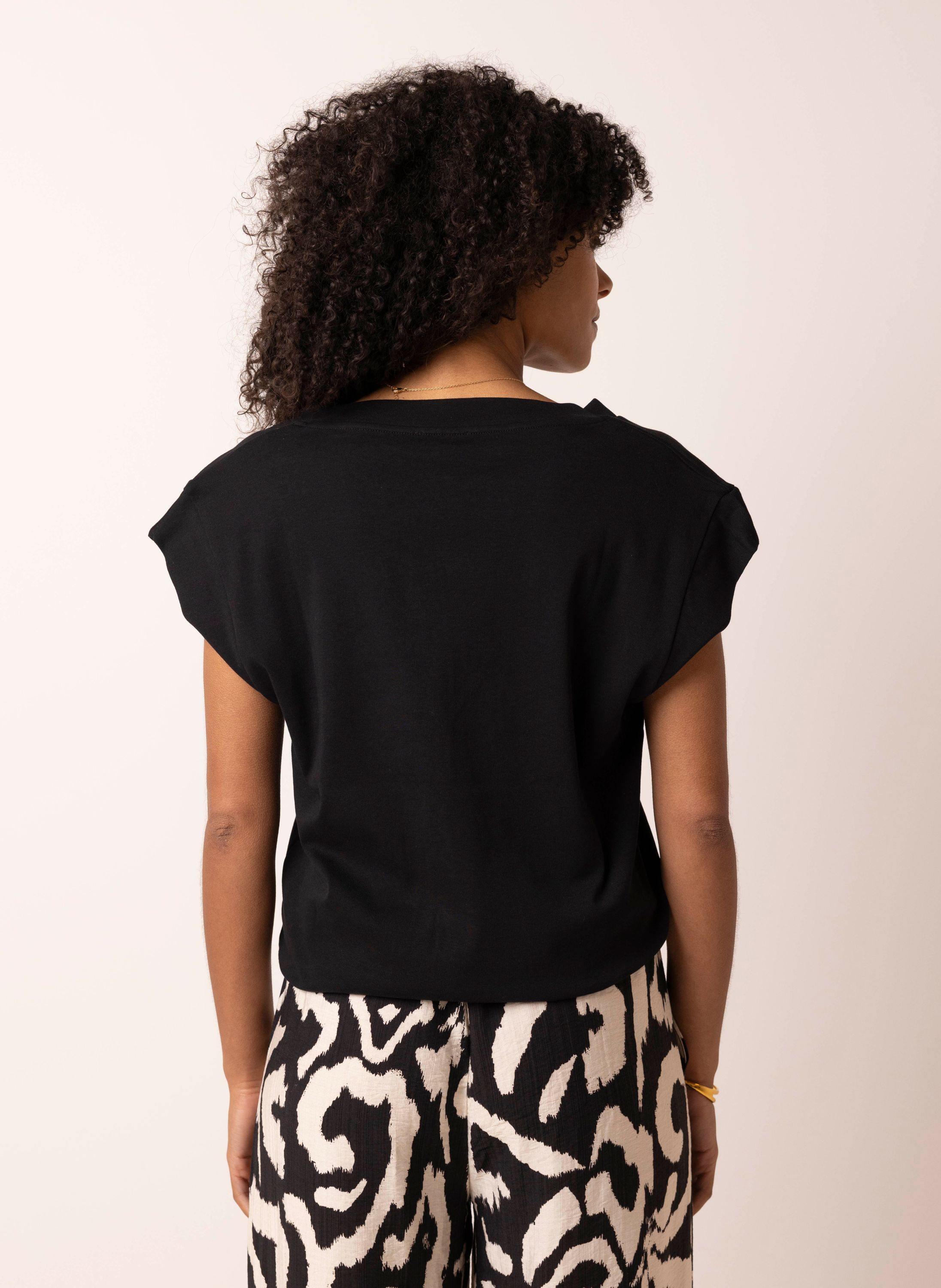 Dit mouwloze shirt van katoen heeft een V-hals.