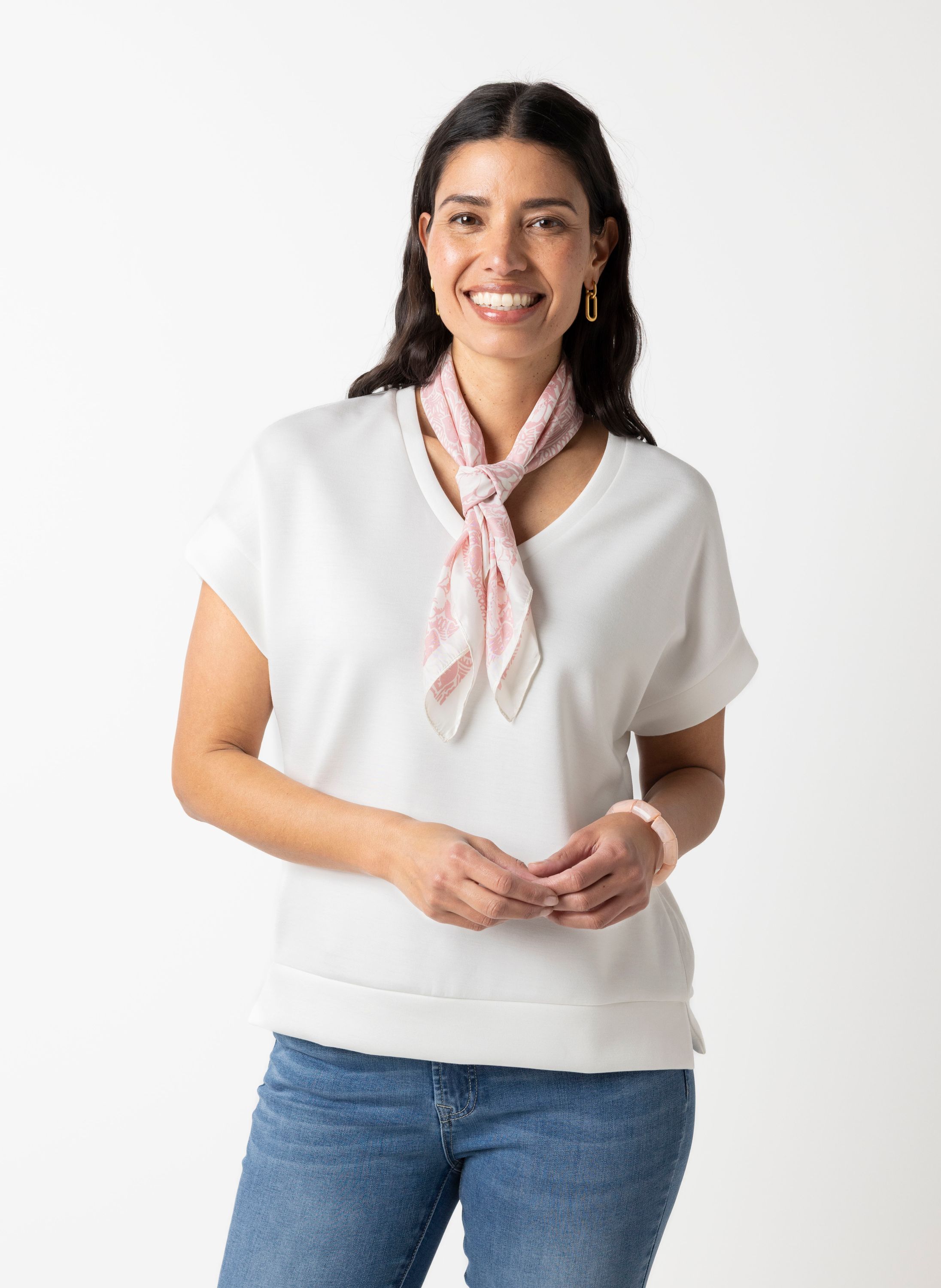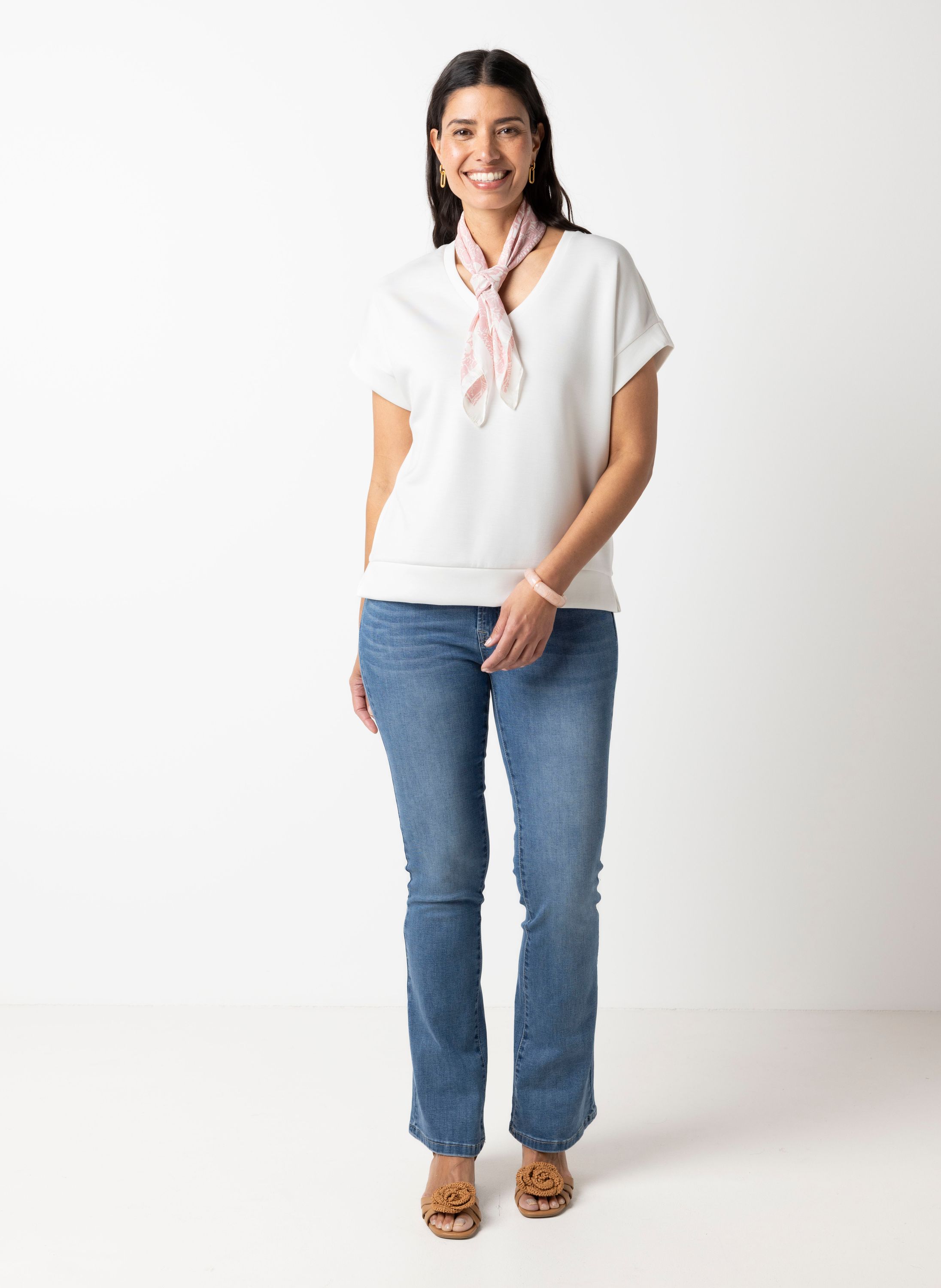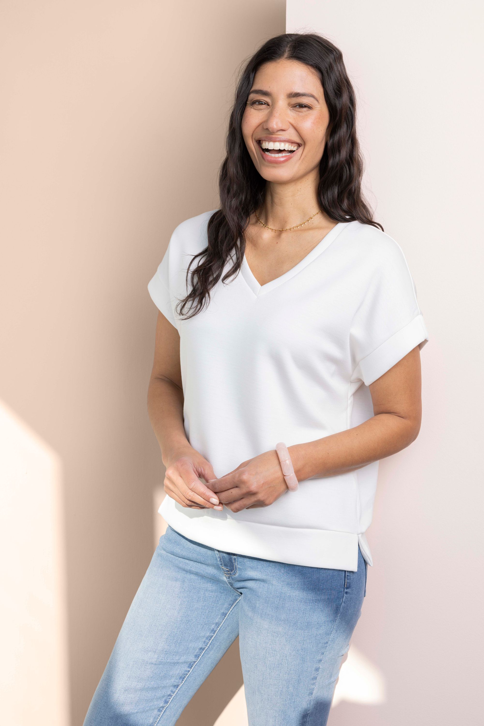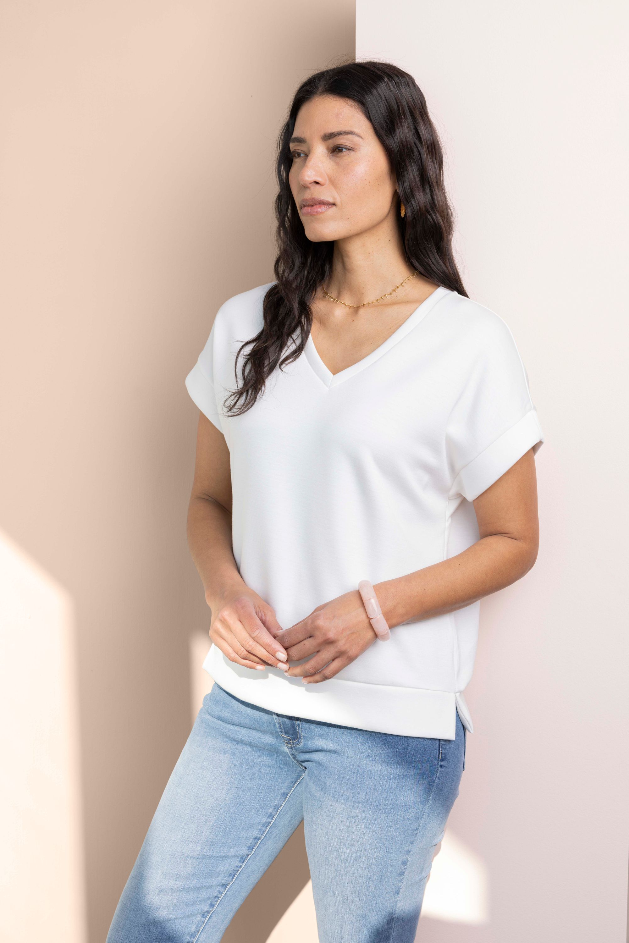 Dit shirt met V-hals en korte mouwen heeft een comfortabele pasvorm.