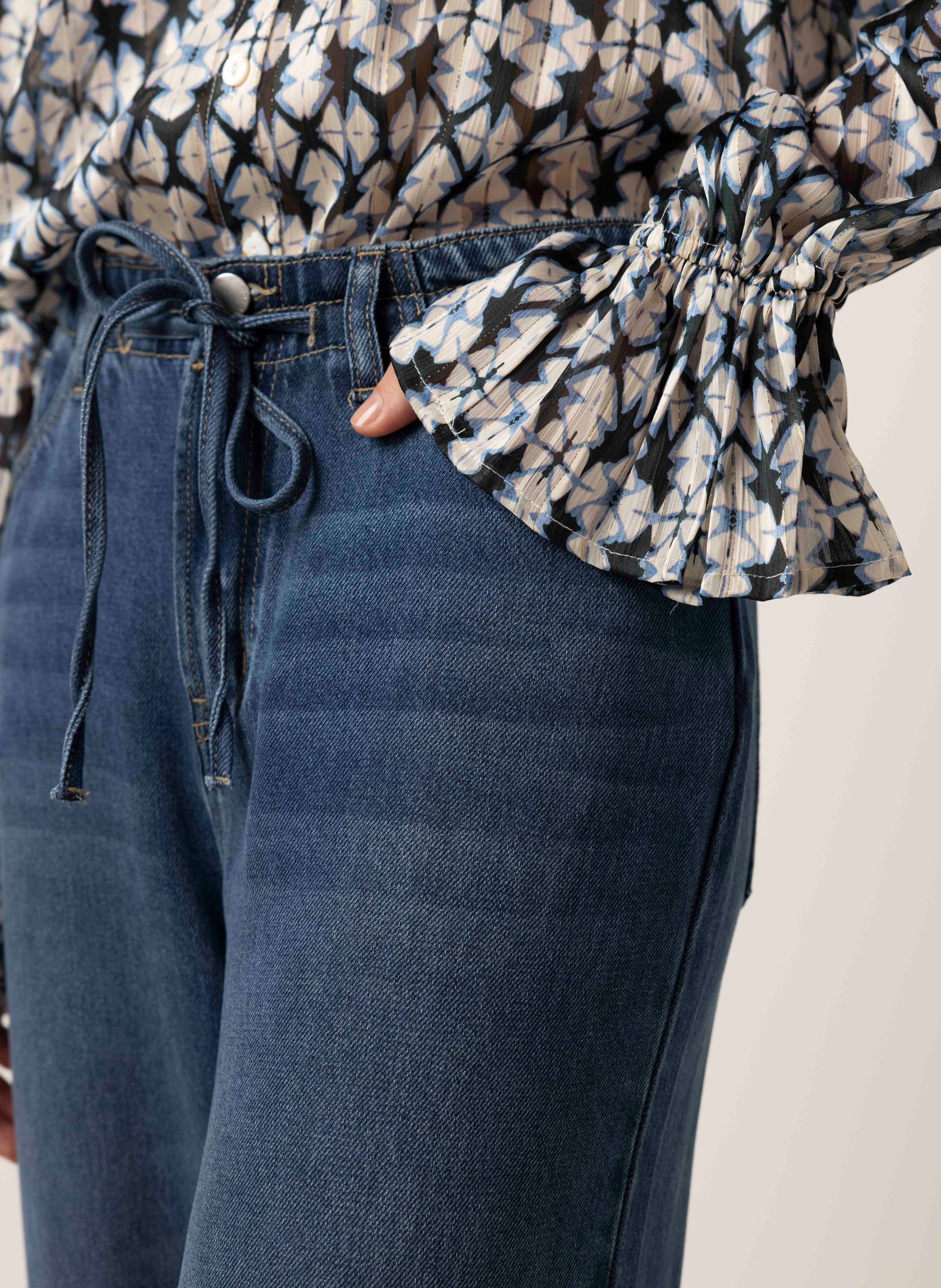 Deze high waist wide fit jeans is uitgevoerd in een zachte denim stof en heeft een rits- en knooplsluiting en een bijpassend denim ceintuur. Deze jeans is ideaal voor vrouwen met een lengte tussen de 1.70 en 1.75 meter. Deze jeans is ook verkrijgbaar in lengtemaat 28.
