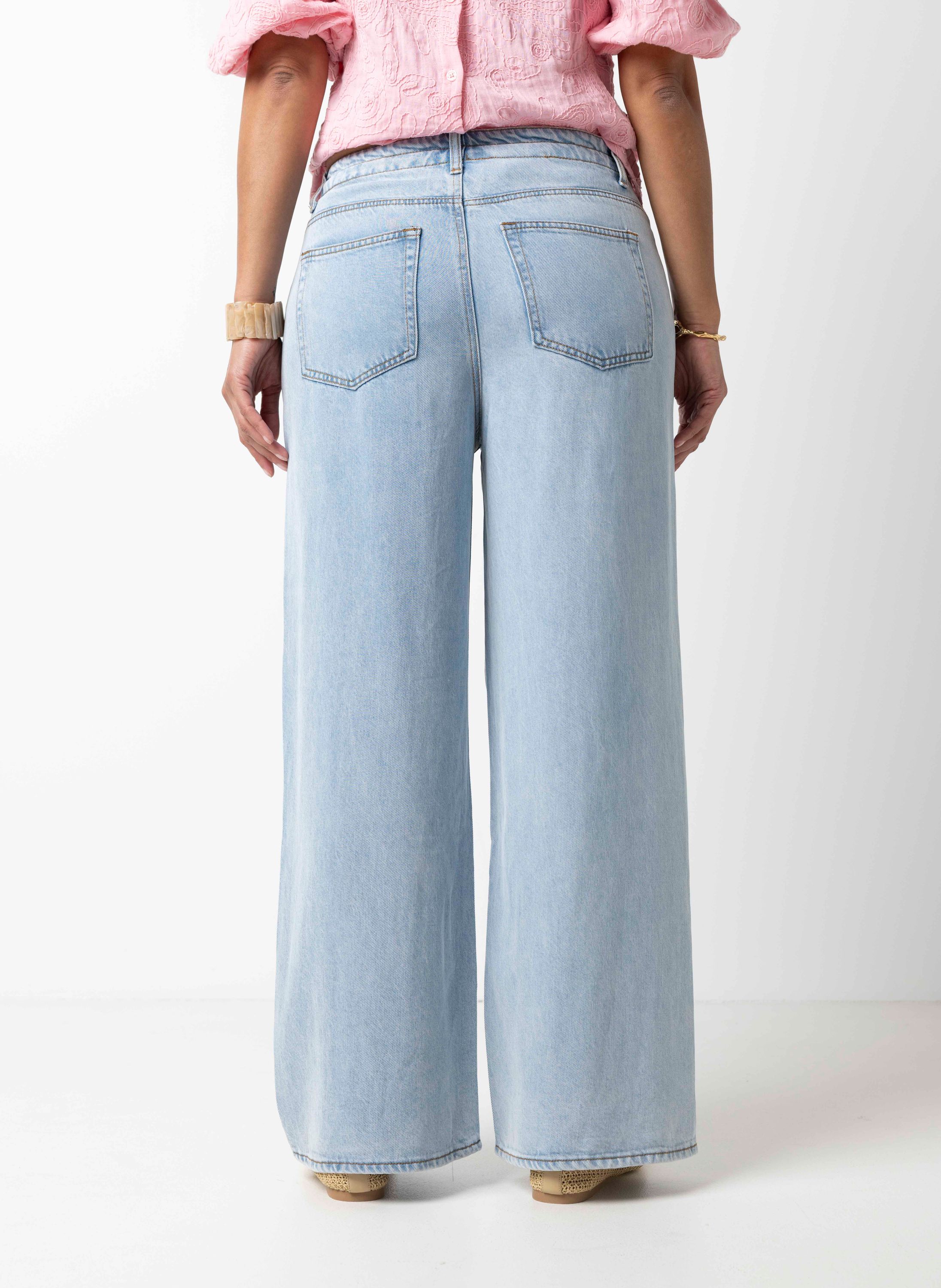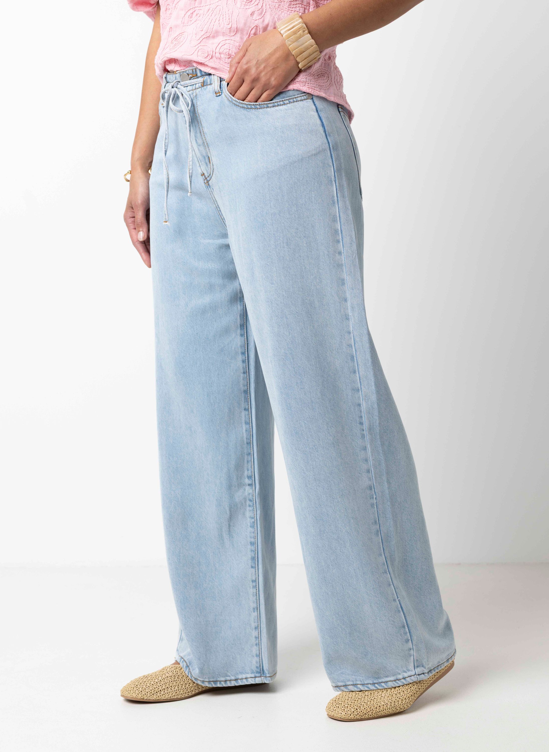 Deze high waist wide fit jeans is uitgevoerd in een zachte denim stof en heeft een rits- en knooplsluiting en een bijpassend denim ceintuur. Deze jeans is ideaal voor vrouwen met een lengte tussen de 1.70 en 1.75 meter. Deze jeans is ook verkrijgbaar in lengtemaat 28.