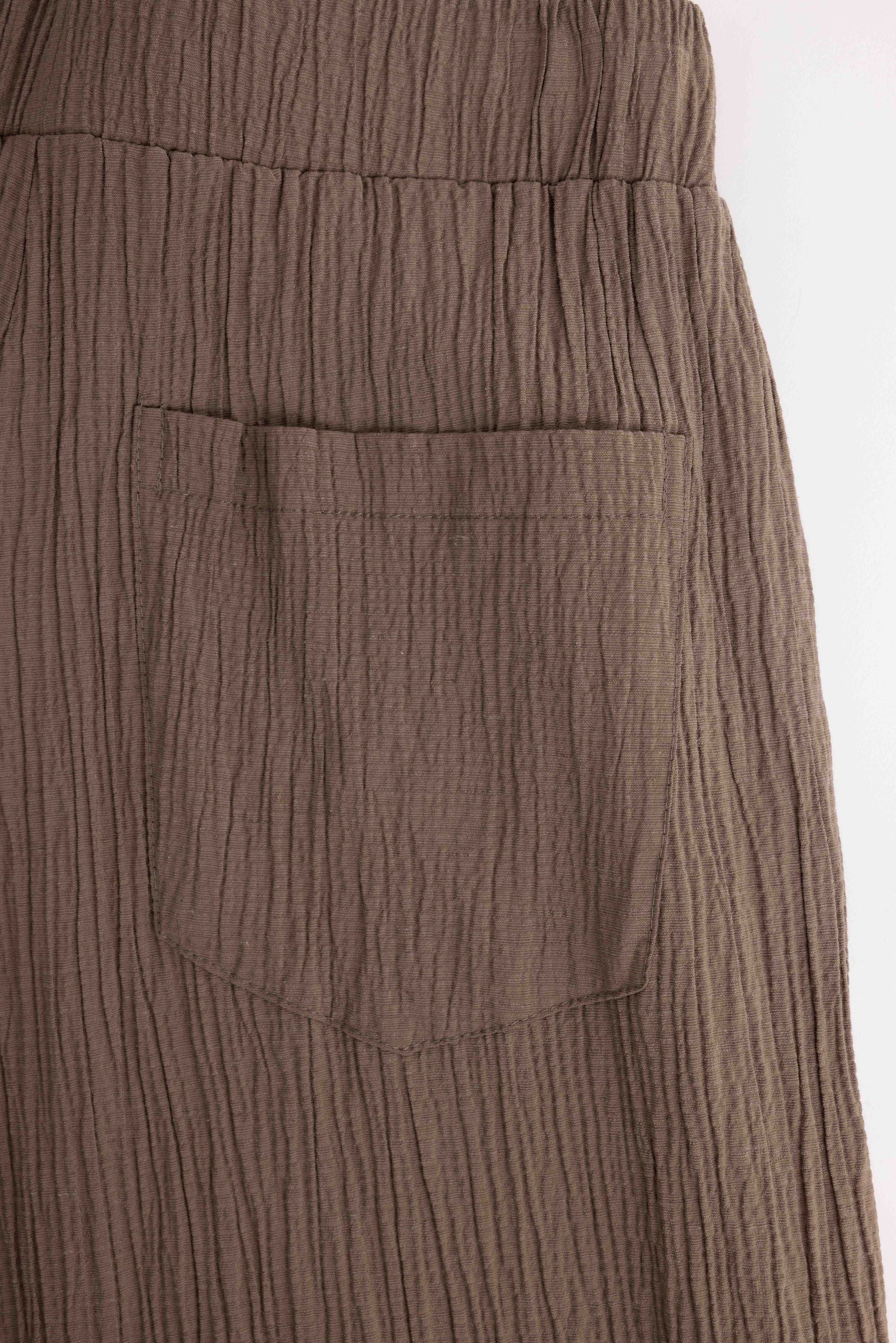 Deze high waist wide fit broek met elastische tailleband, steekzakken aan de voorzijde en open zakken aan de achterzijde maakt deel uit van een co-ord set.
