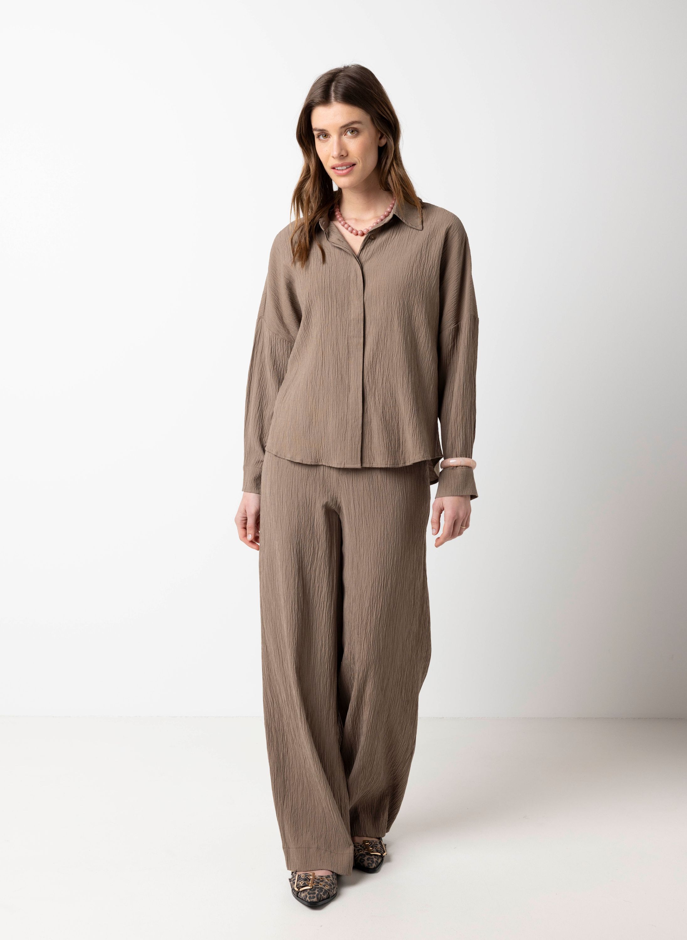 Wide fit broek | Taupe