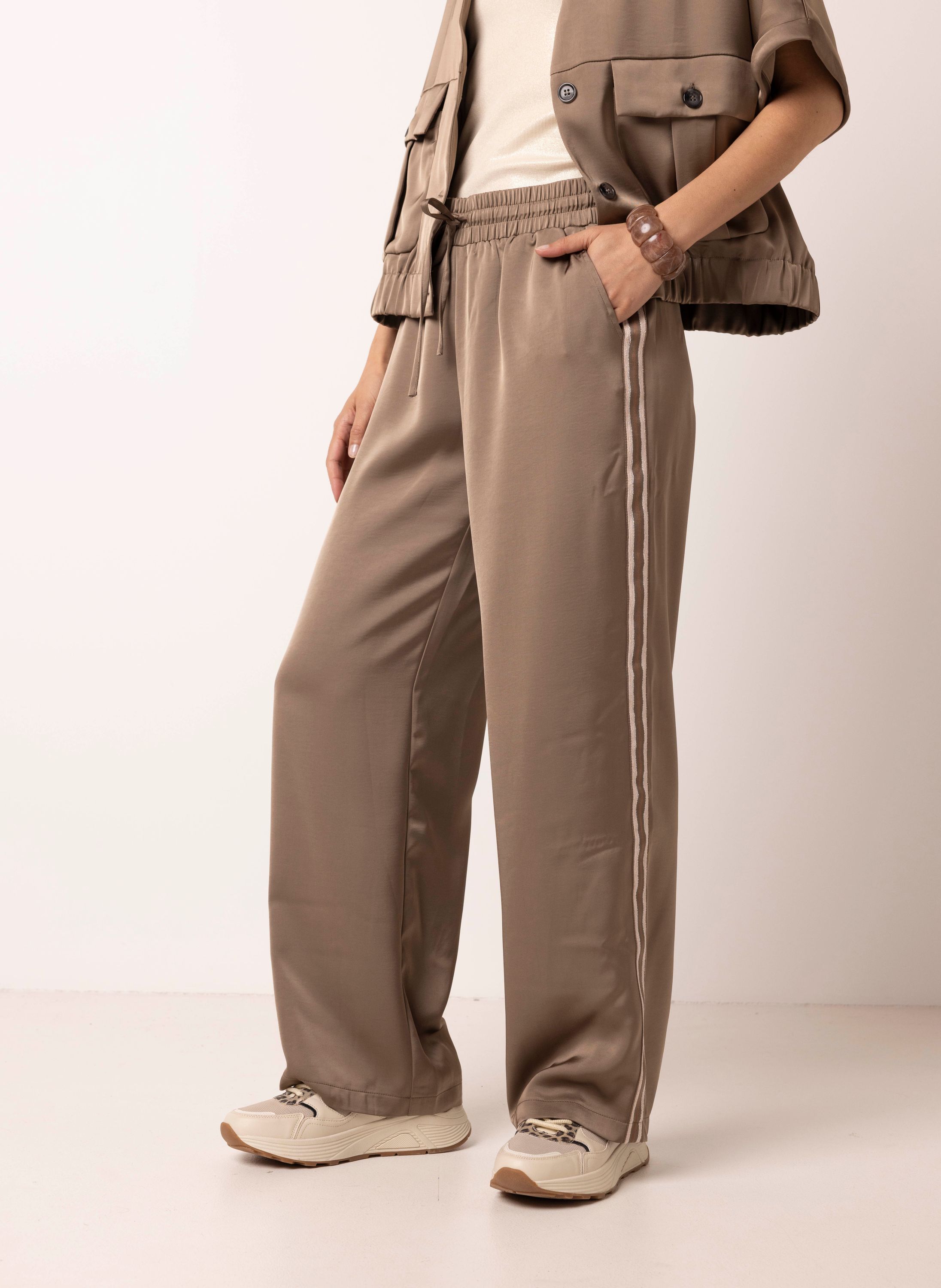 Wide fit broek | Taupe | Satijn