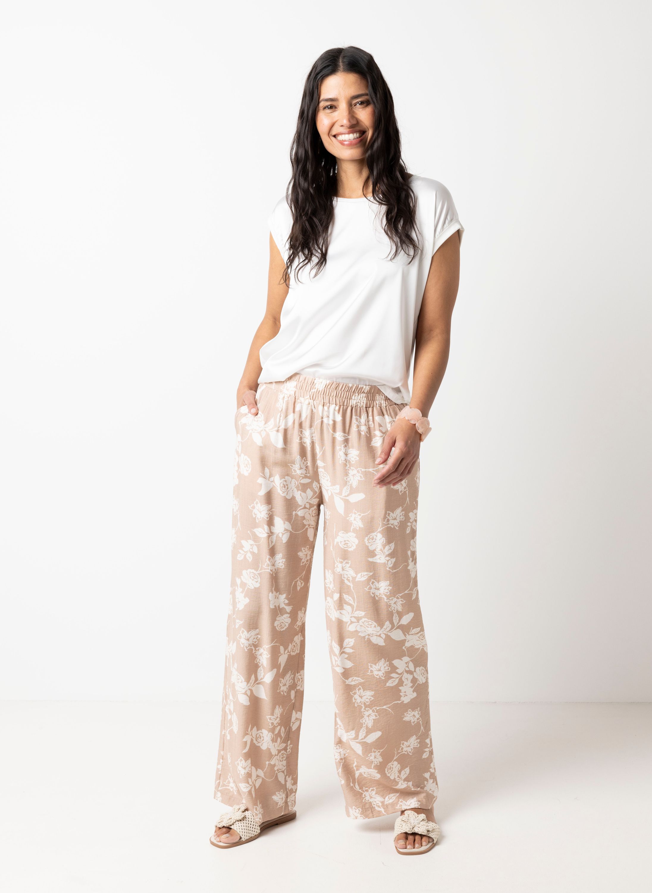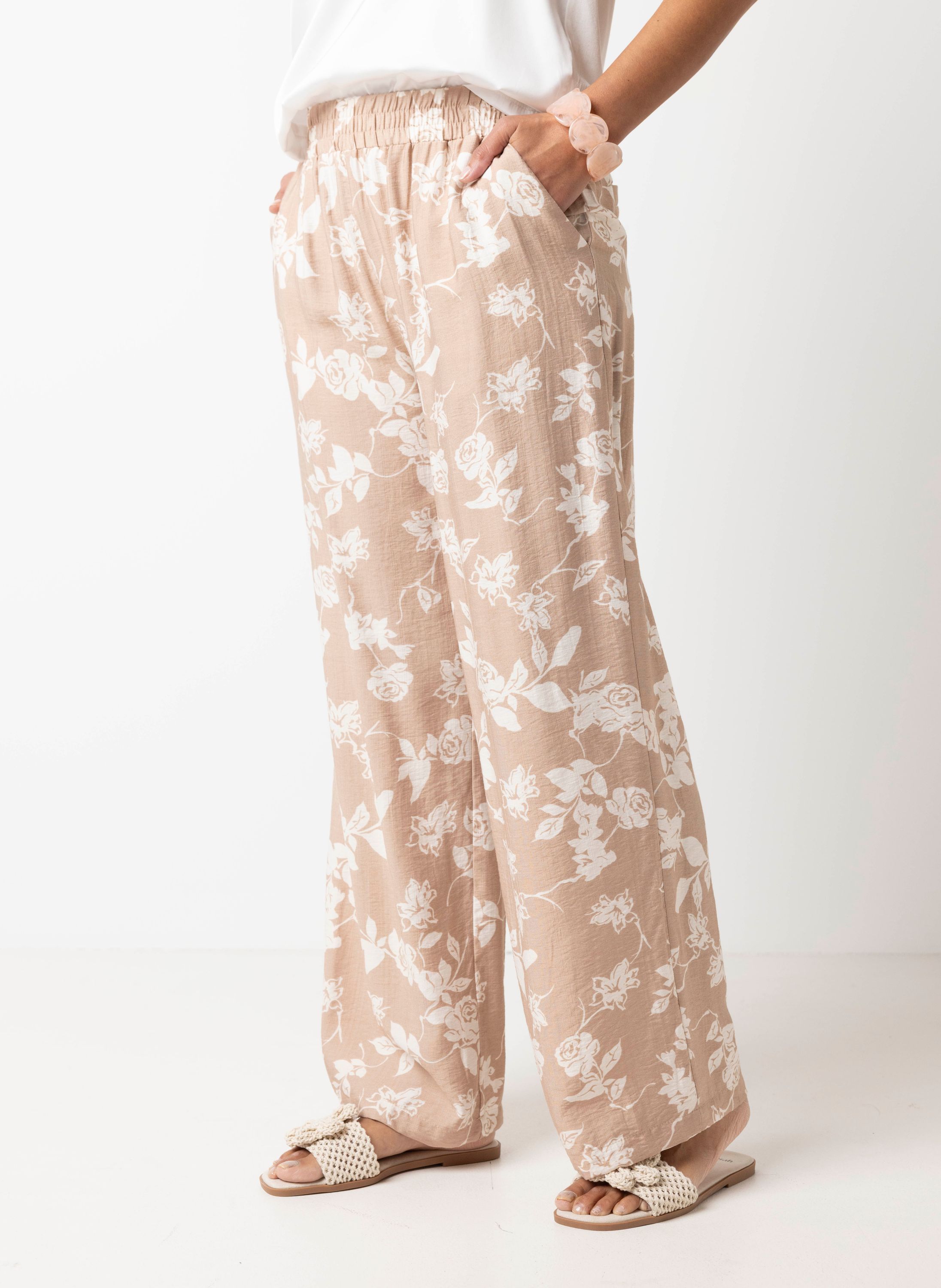 Deze high waist wide fit broek met elastische tailleband, steekzakken en decoratieve zakken aan de achterzijde heeft een flatterende pasvorm.