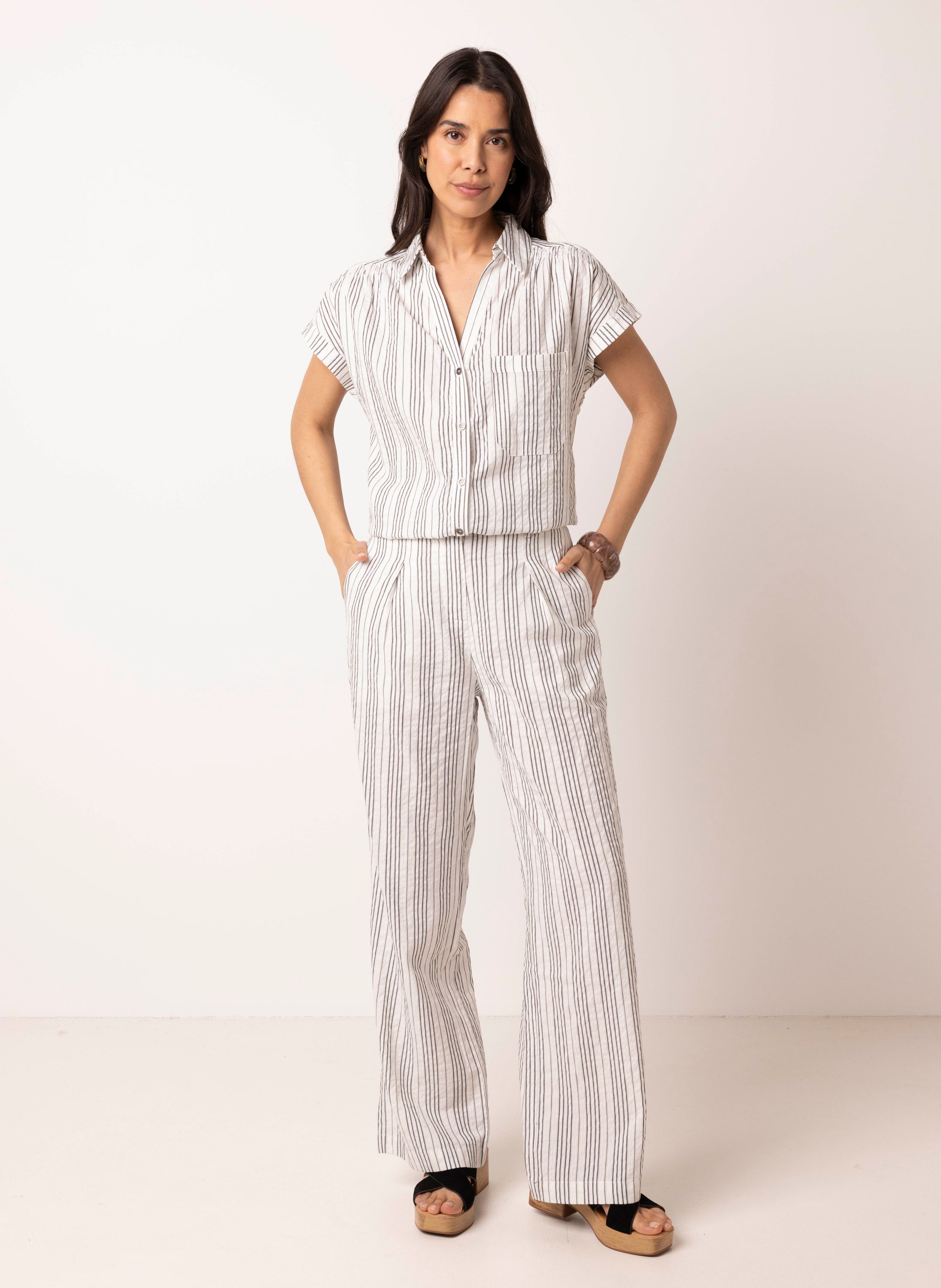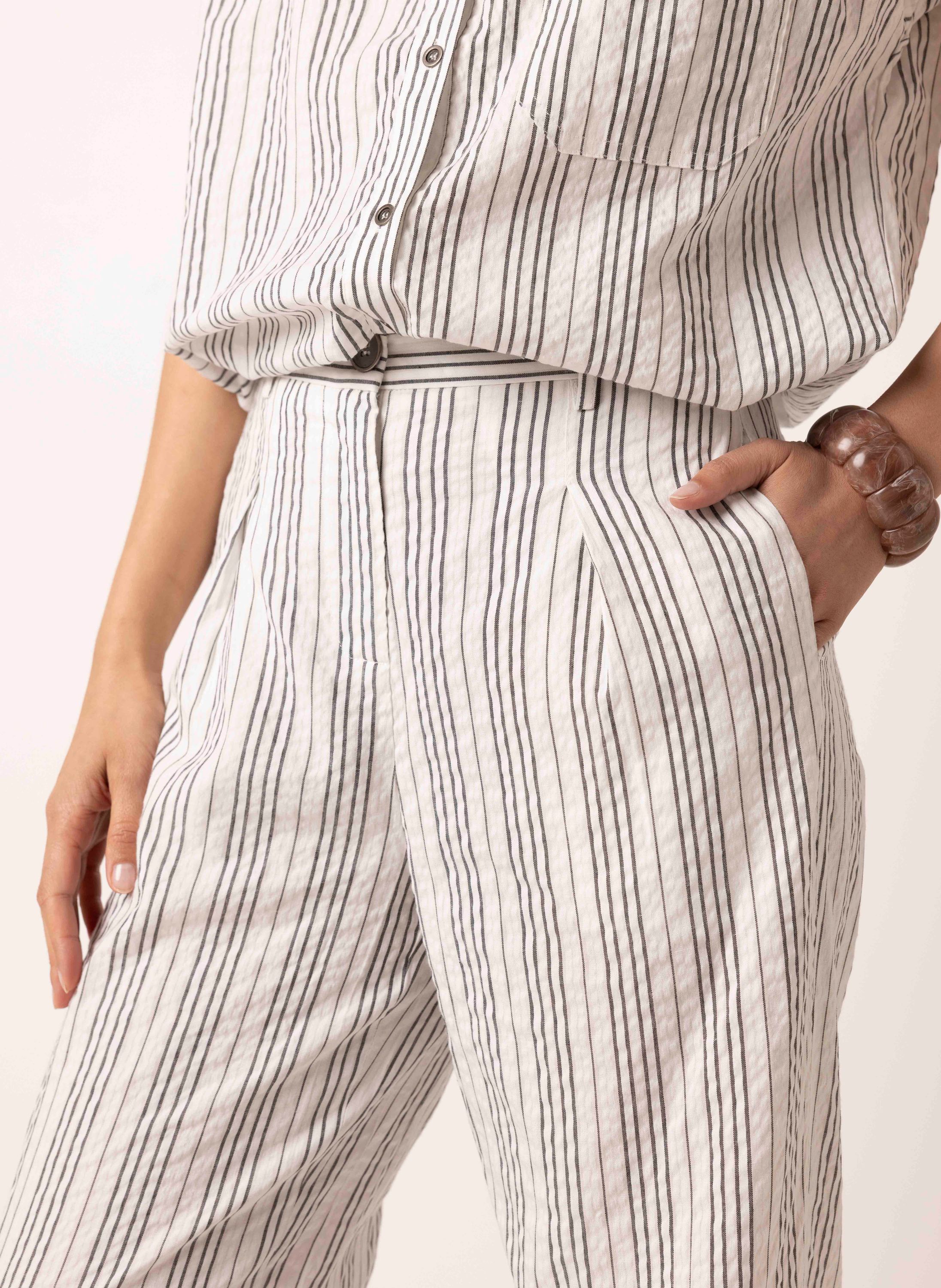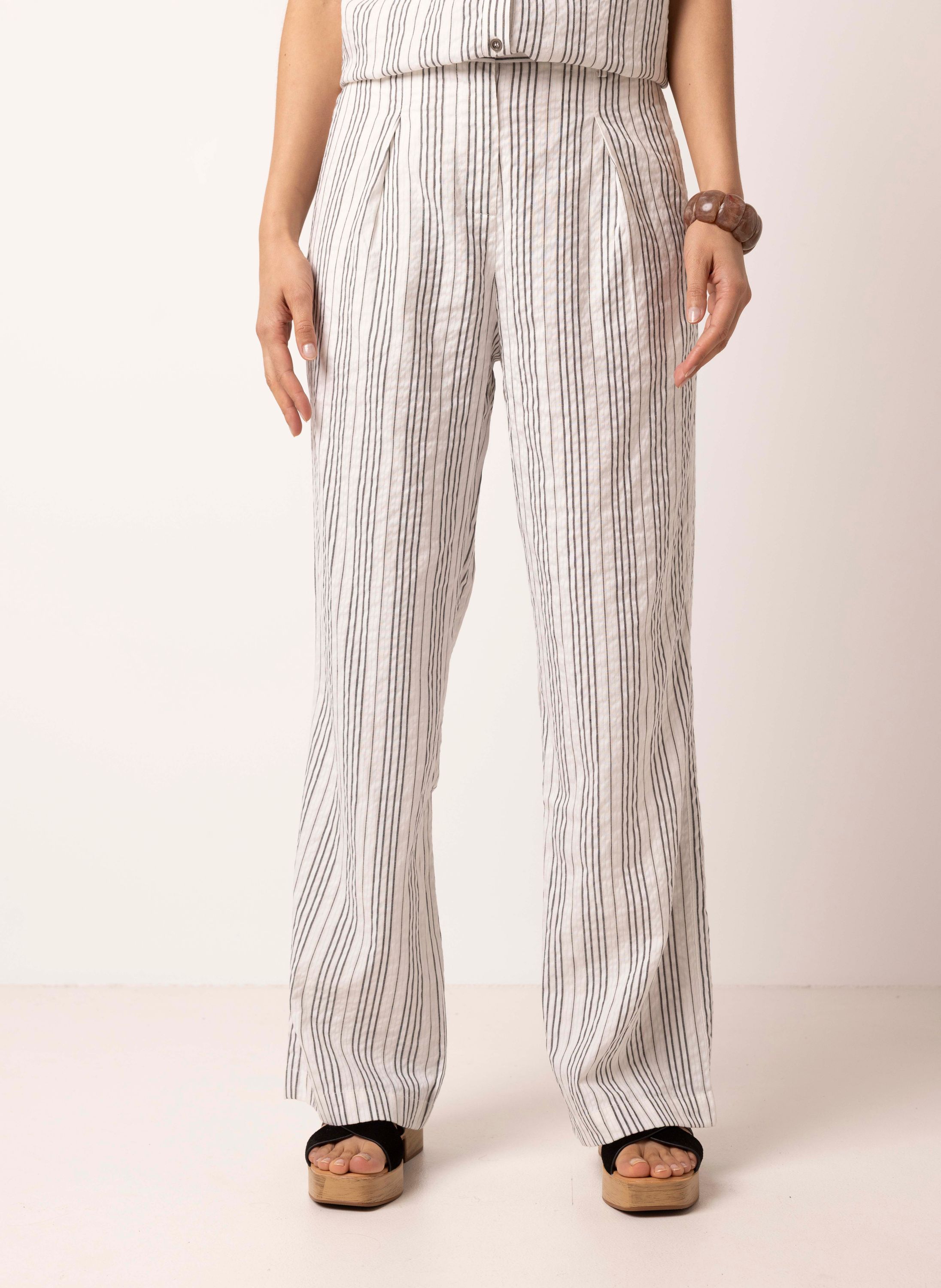 Wide fit broek | Zwart/wit | Gestreept