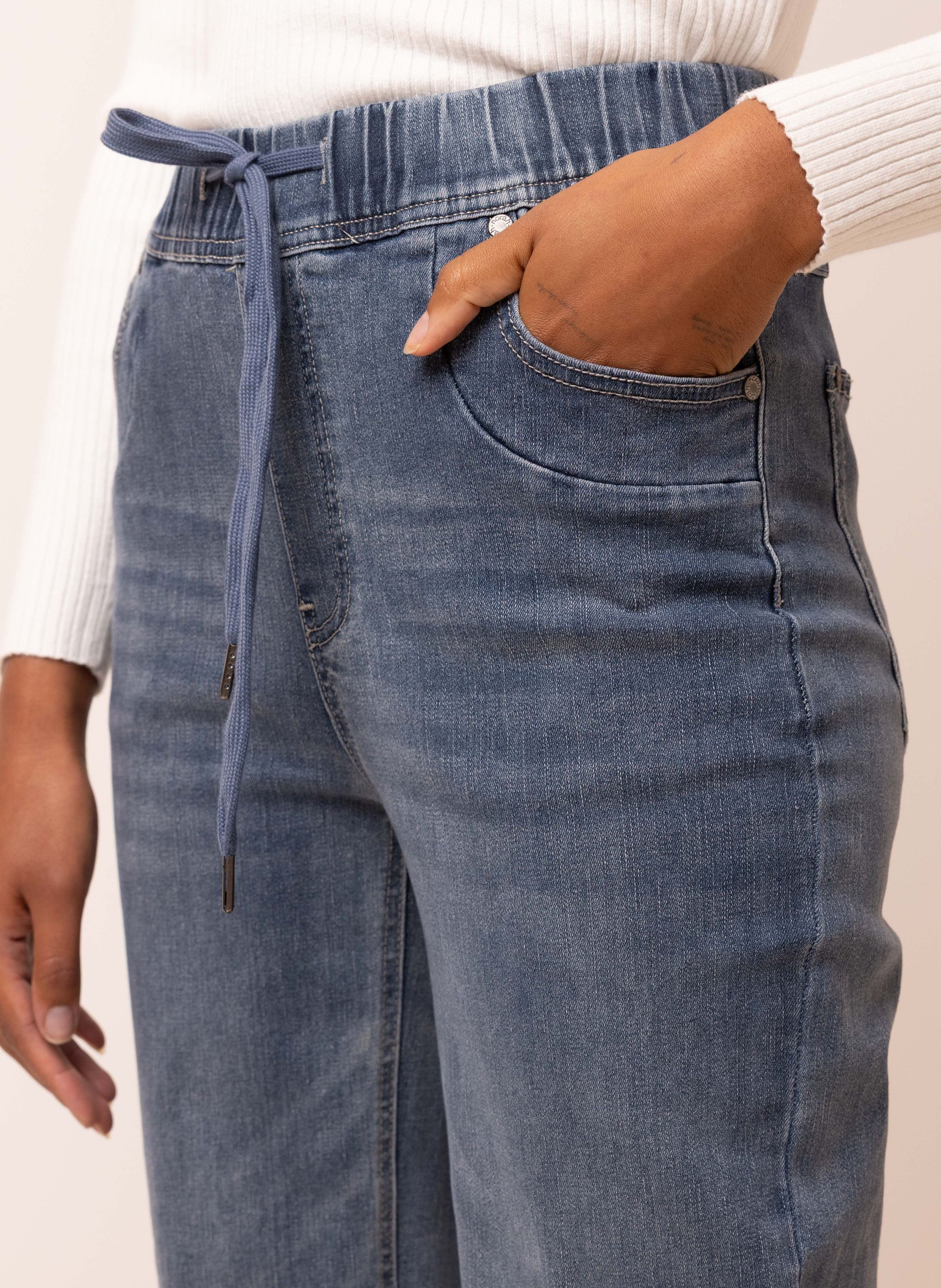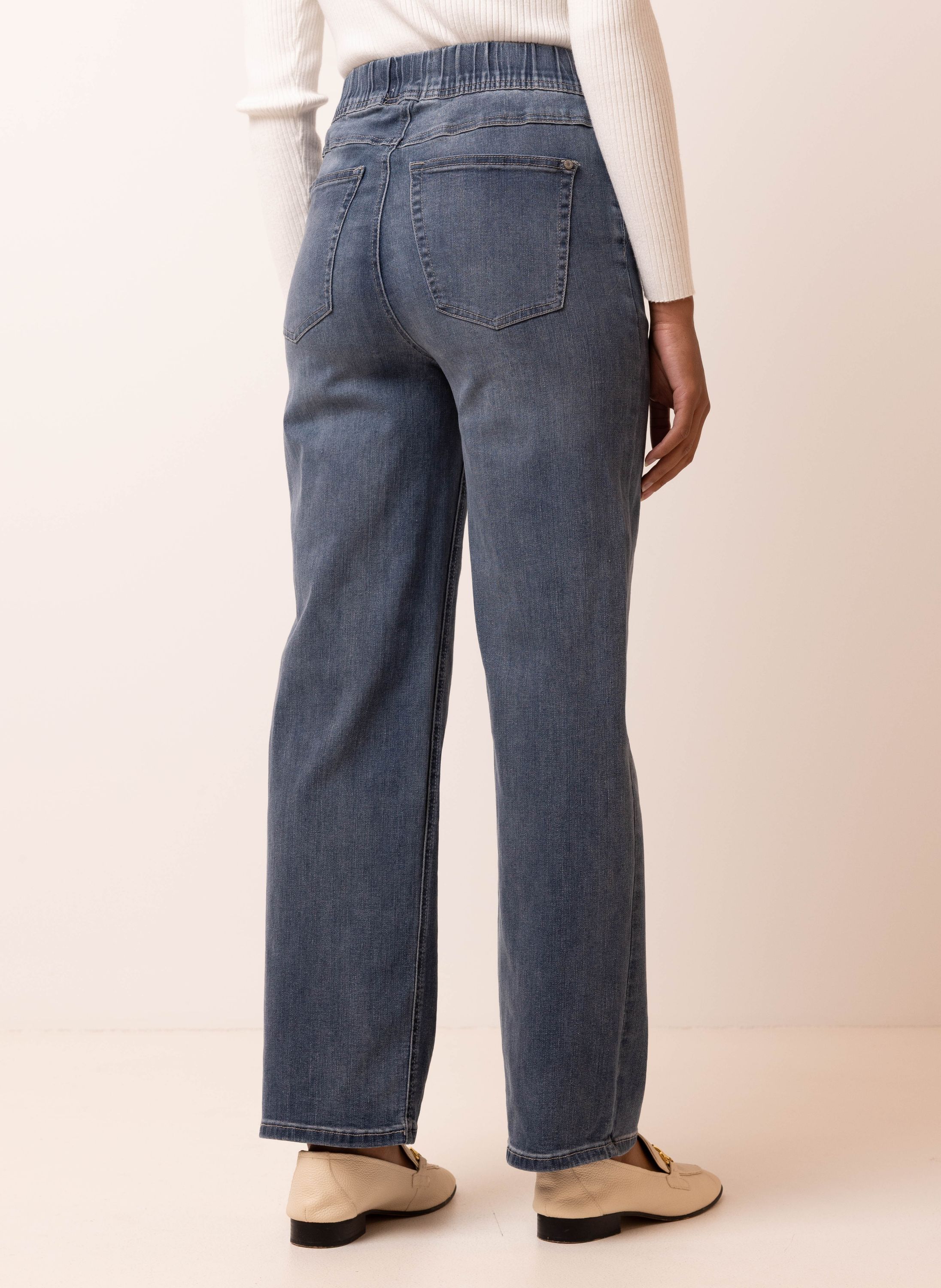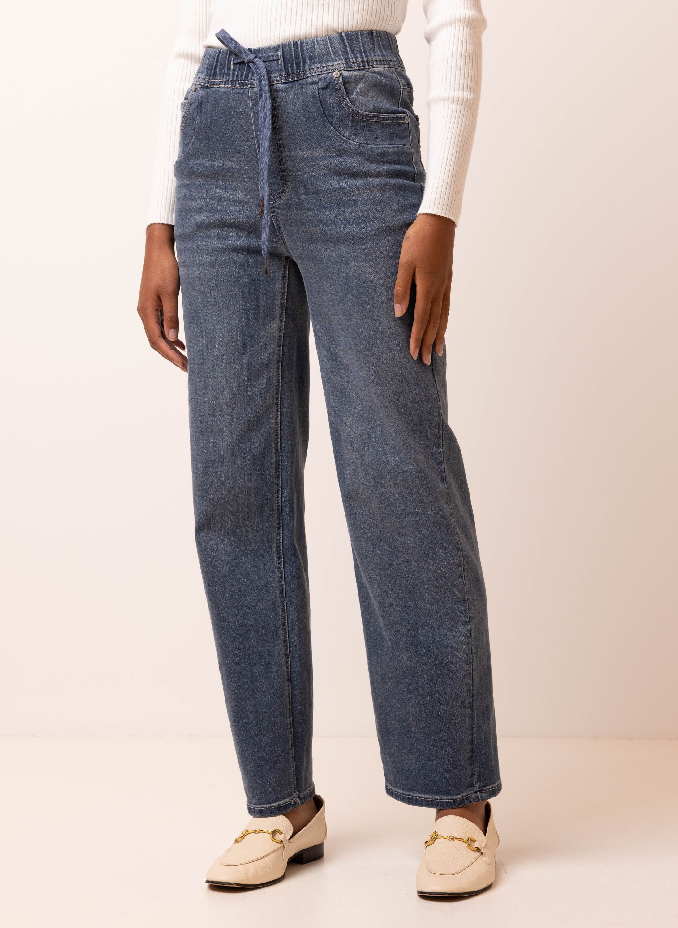 Deze high waist wide fit jeans met elastische tailleband met trekkoord, steekzakken aan de voorzijde en open zakken aan de achterzijde biedt een comfortabele fit.