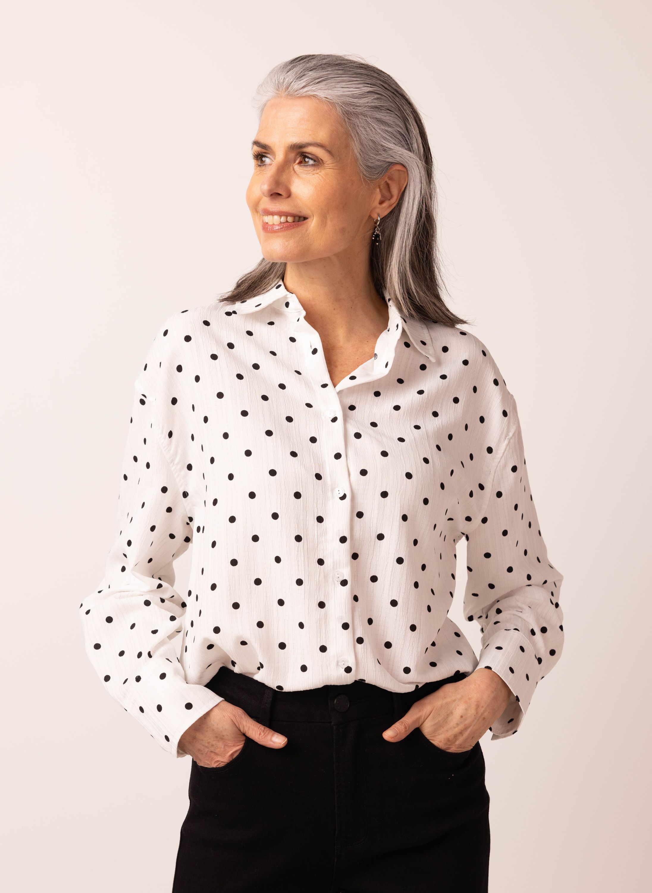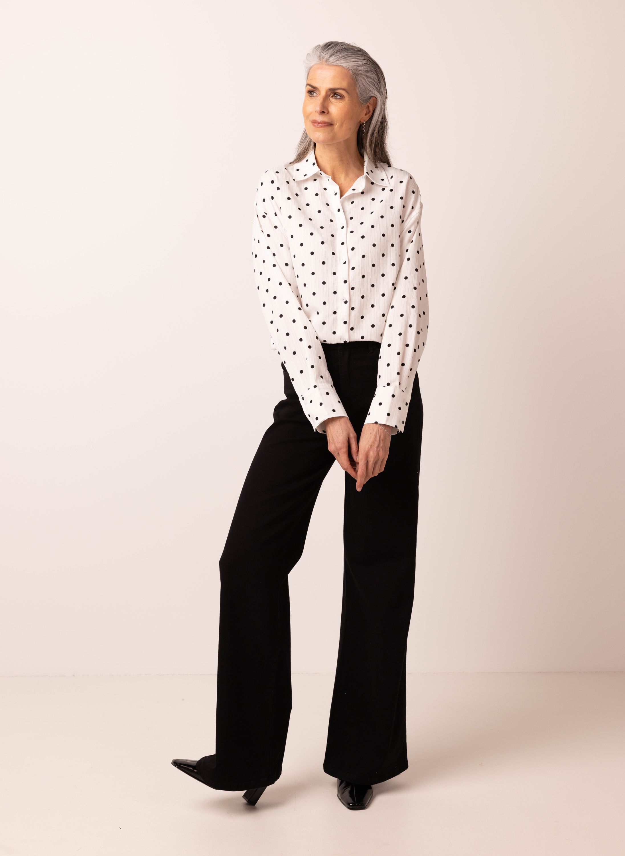 Witte blouse met zwarte stippen