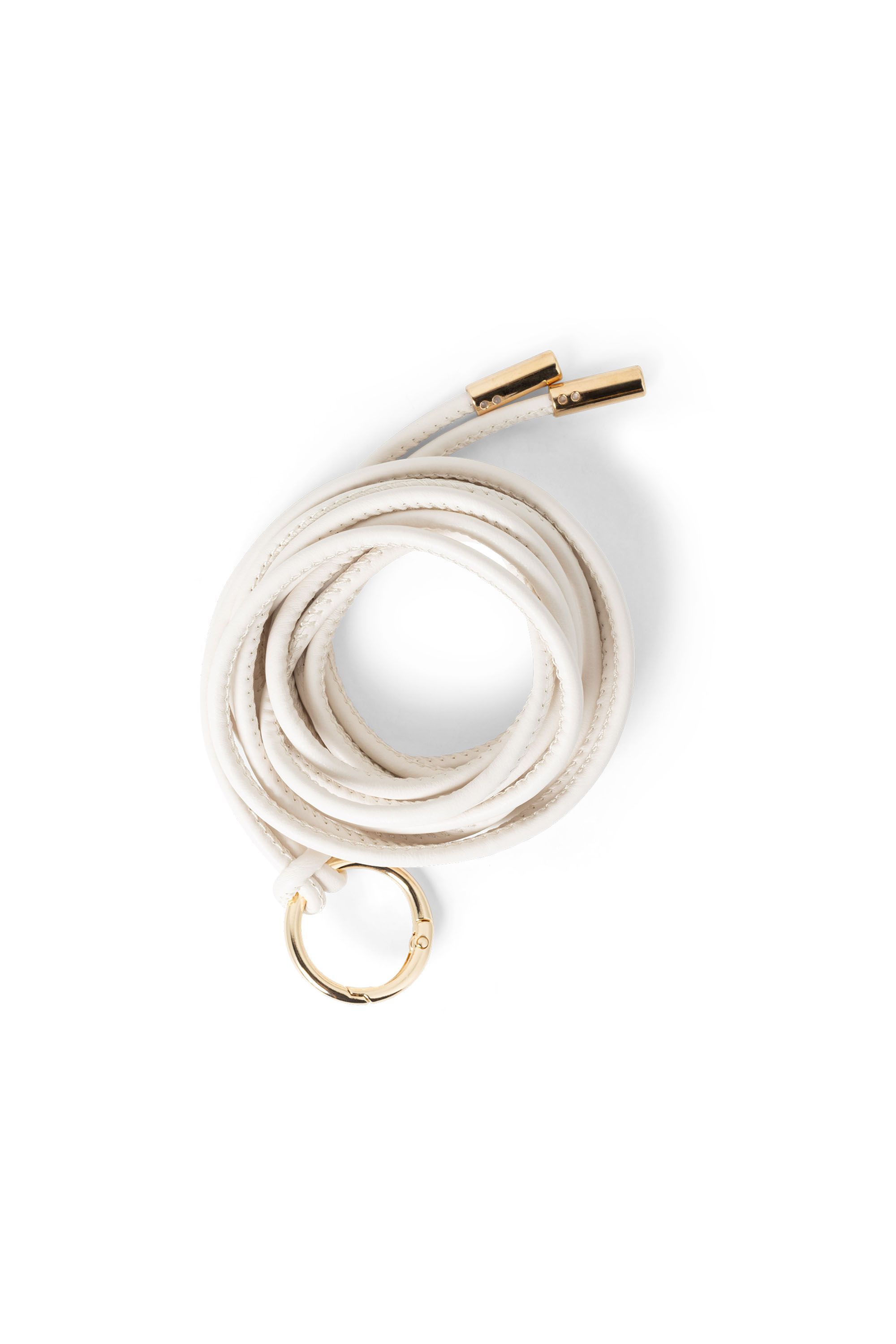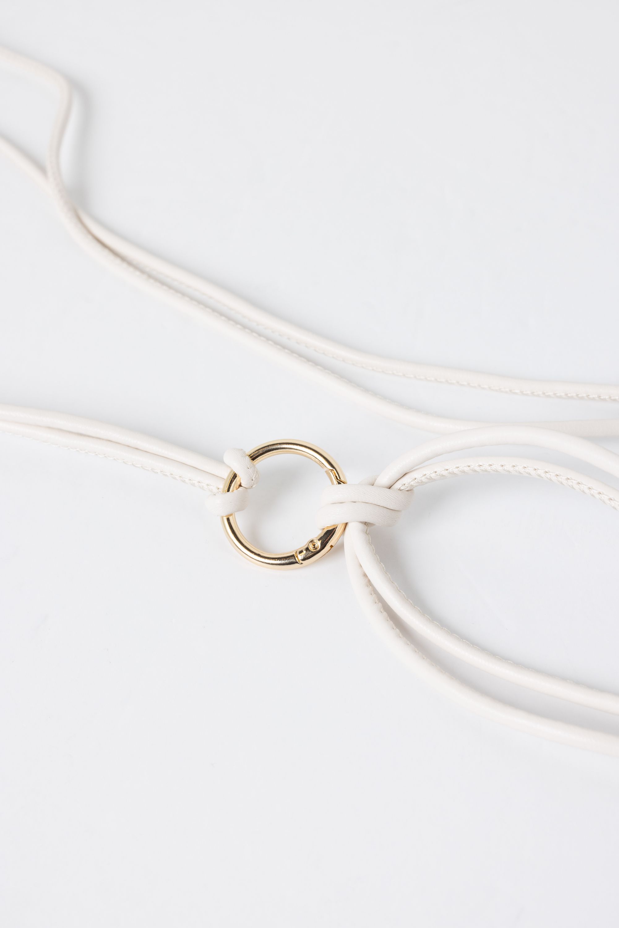 Deze riem heeft een goudkleurig rondje en een dubbel koord.