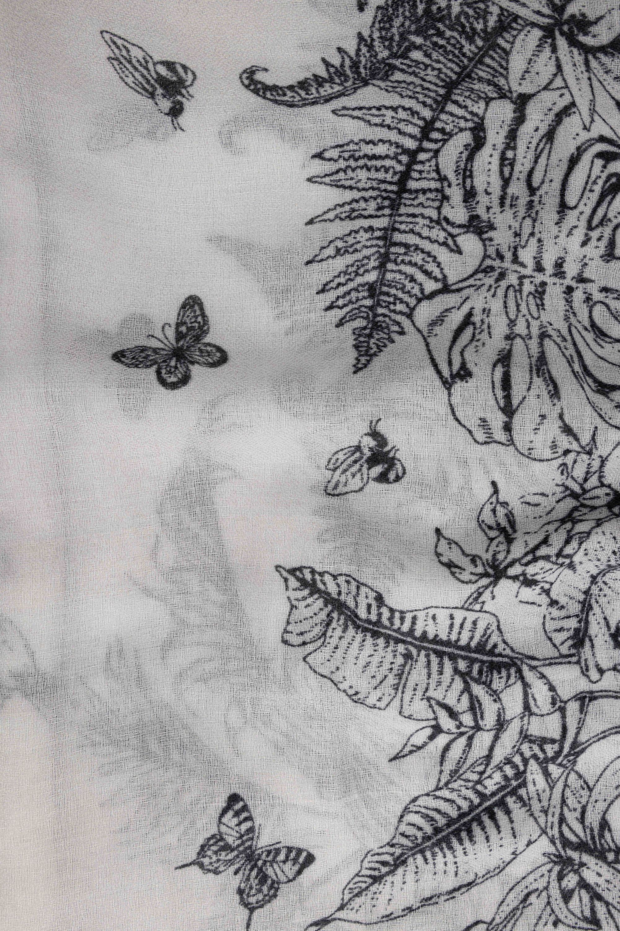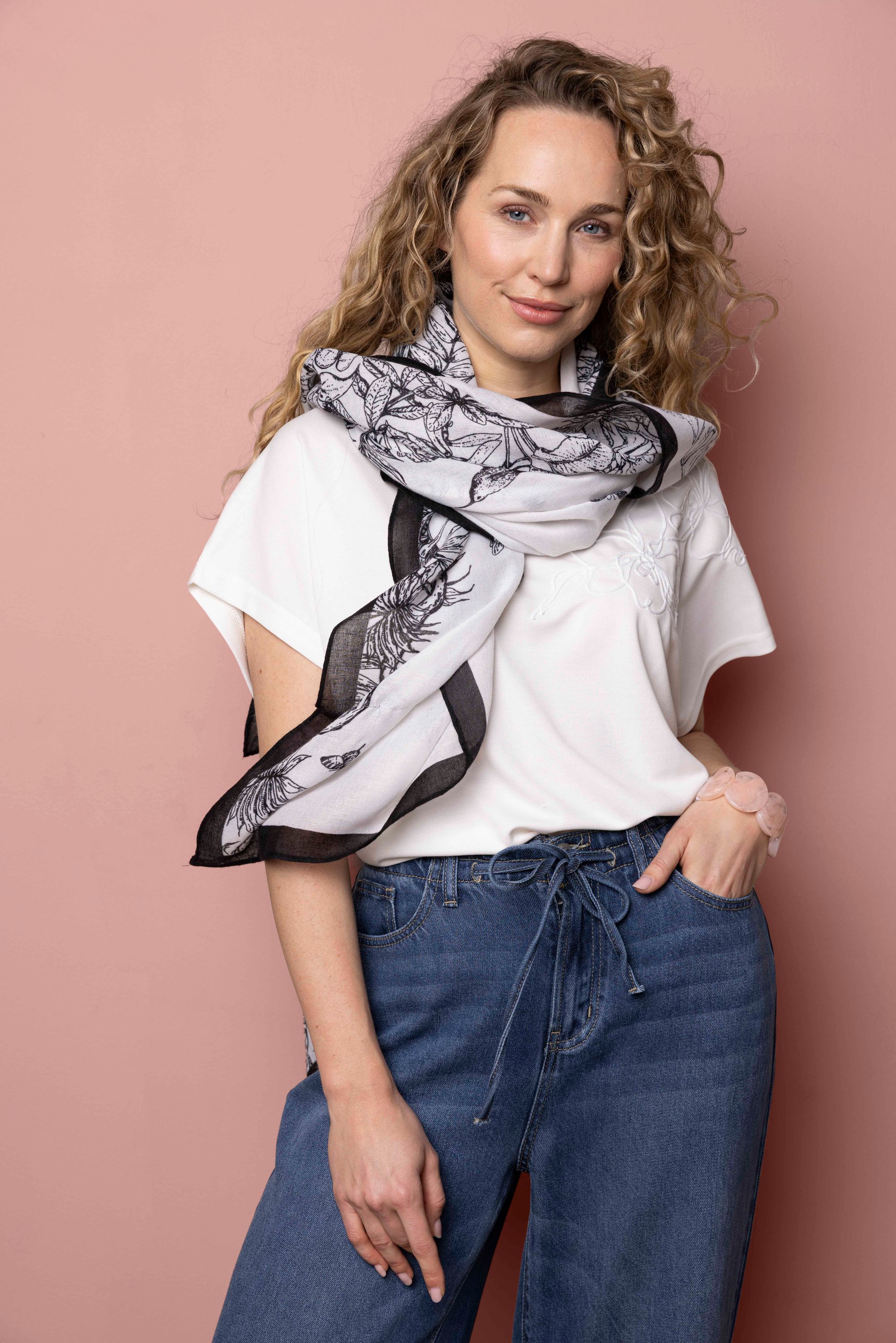 Witte sjaal met botanische print