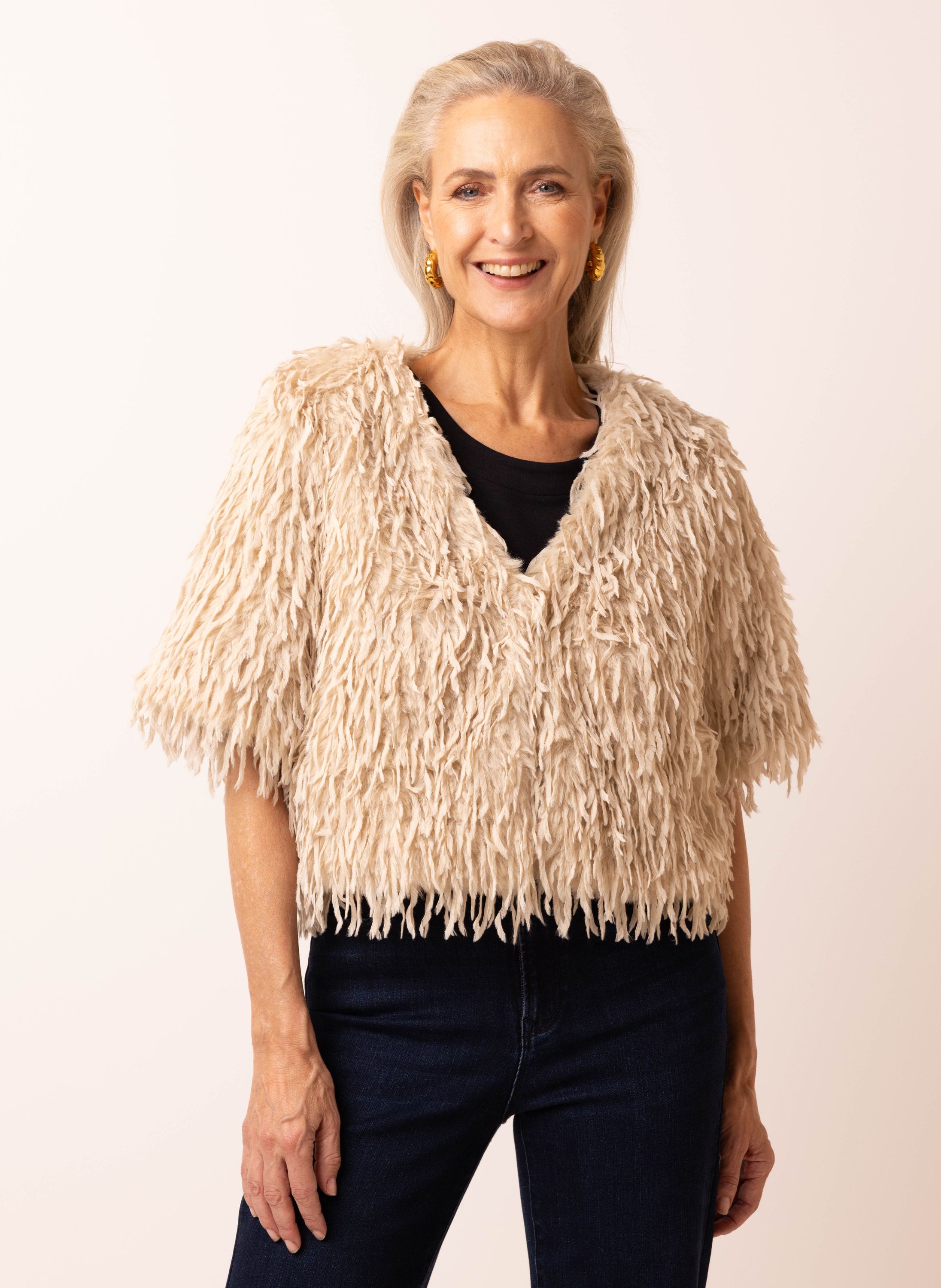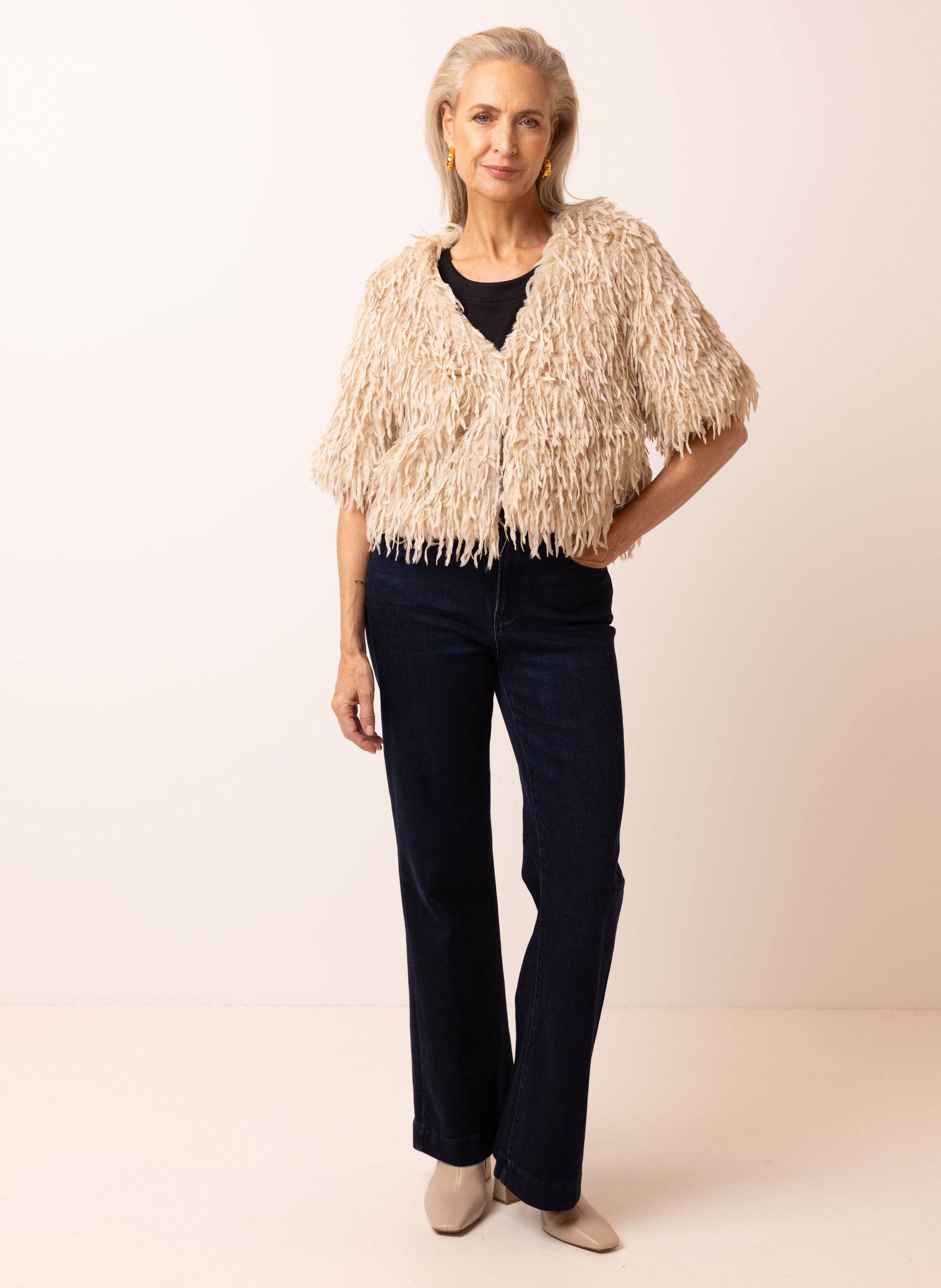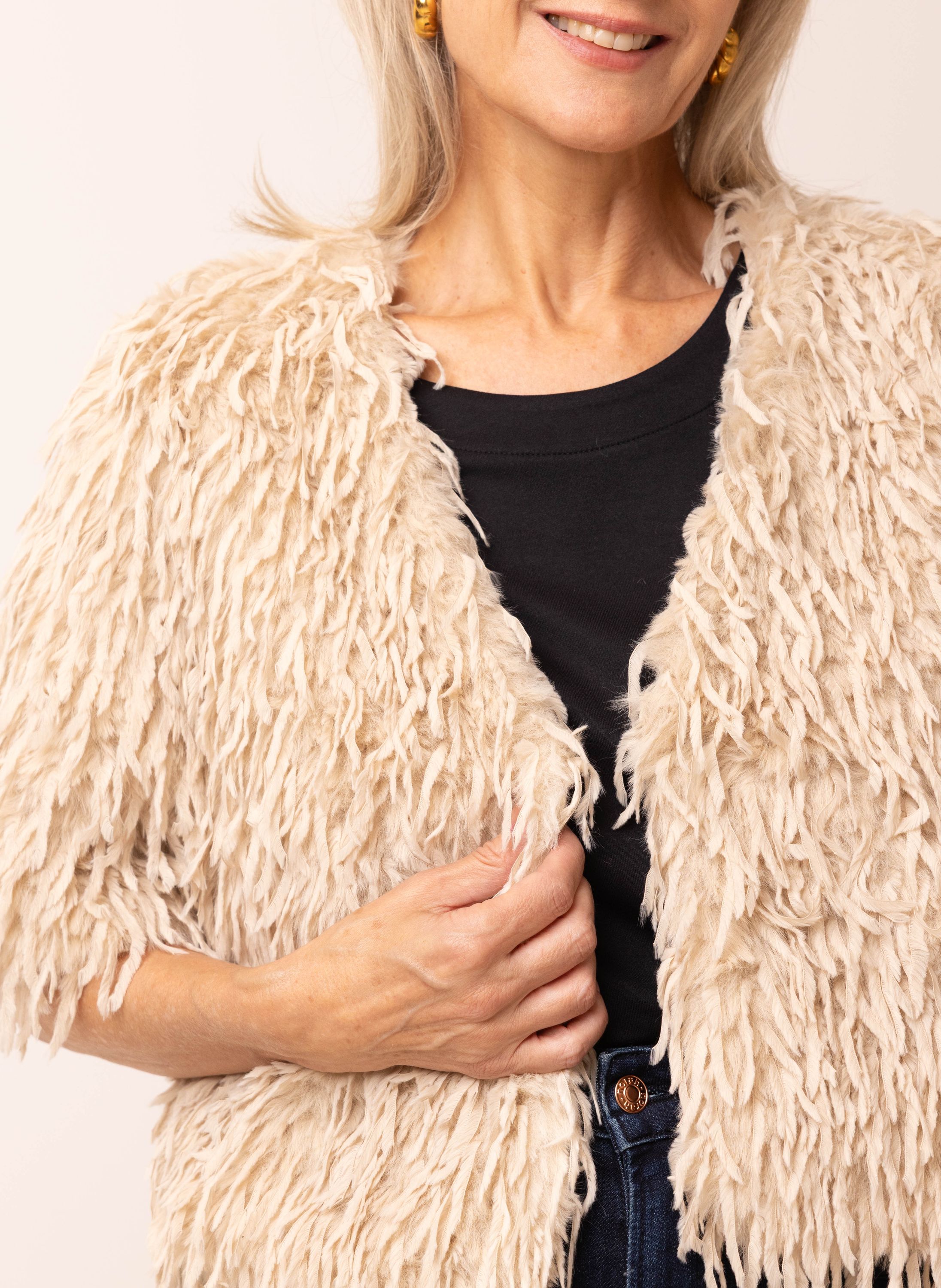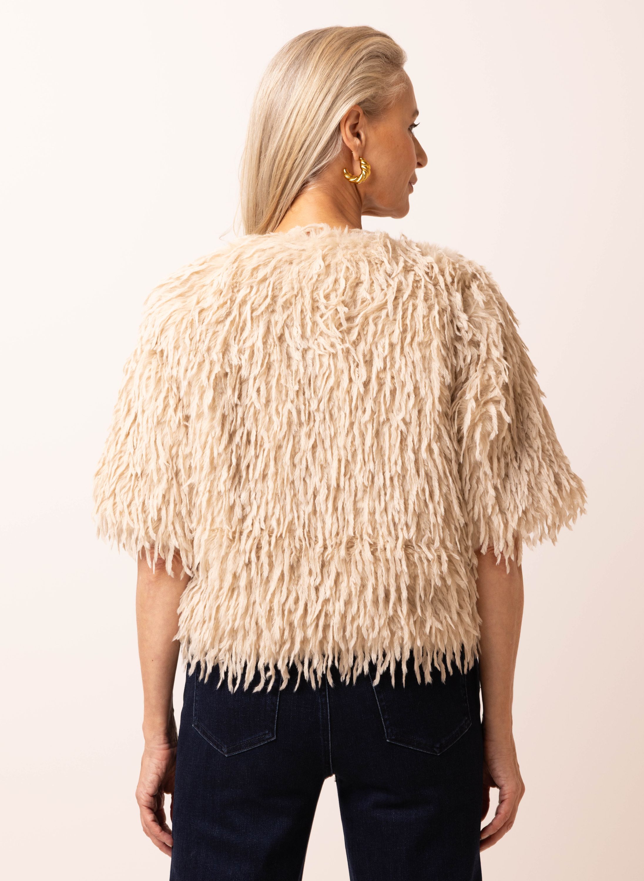 Zandkleurig jasje van imitatiebont