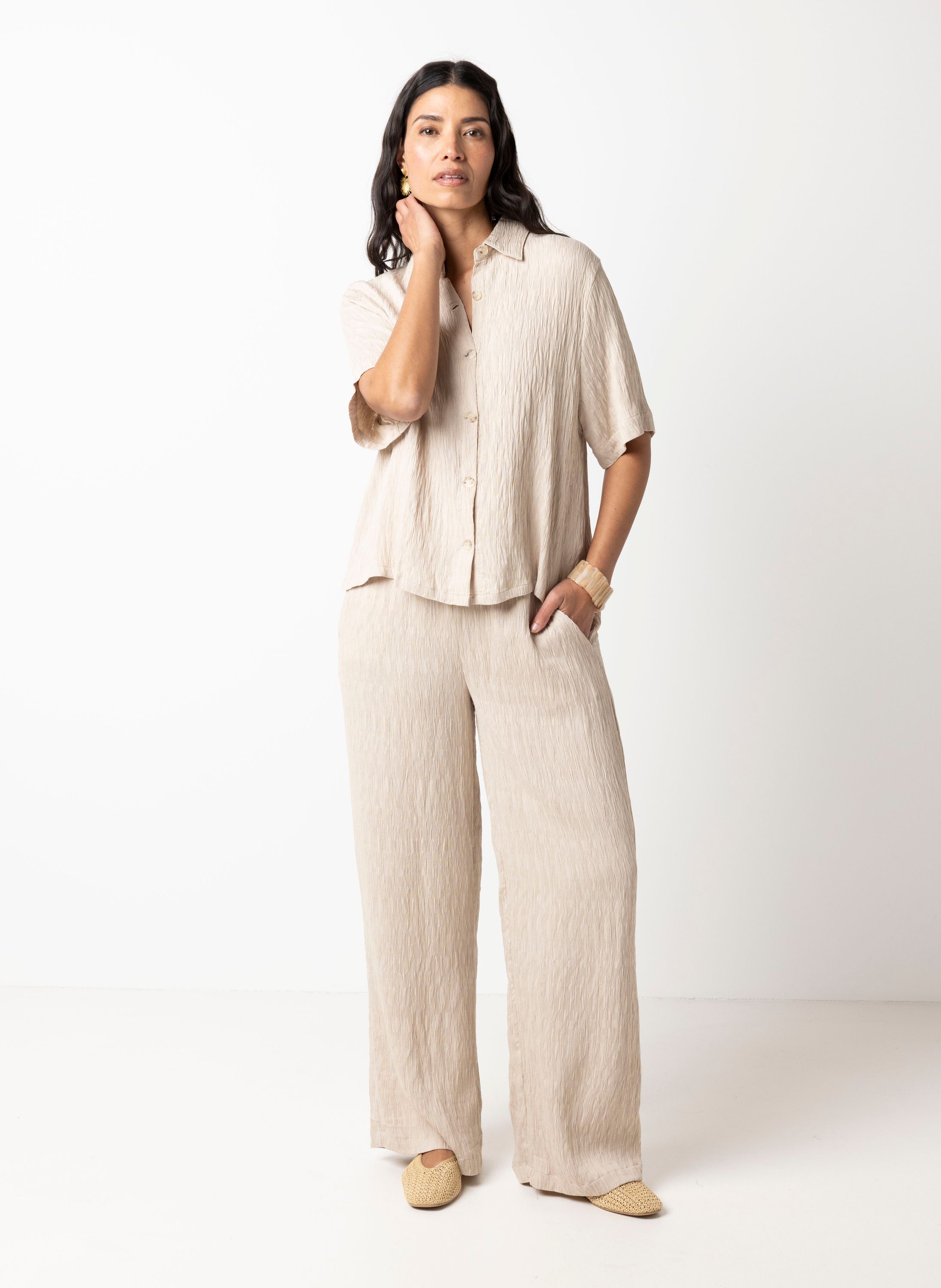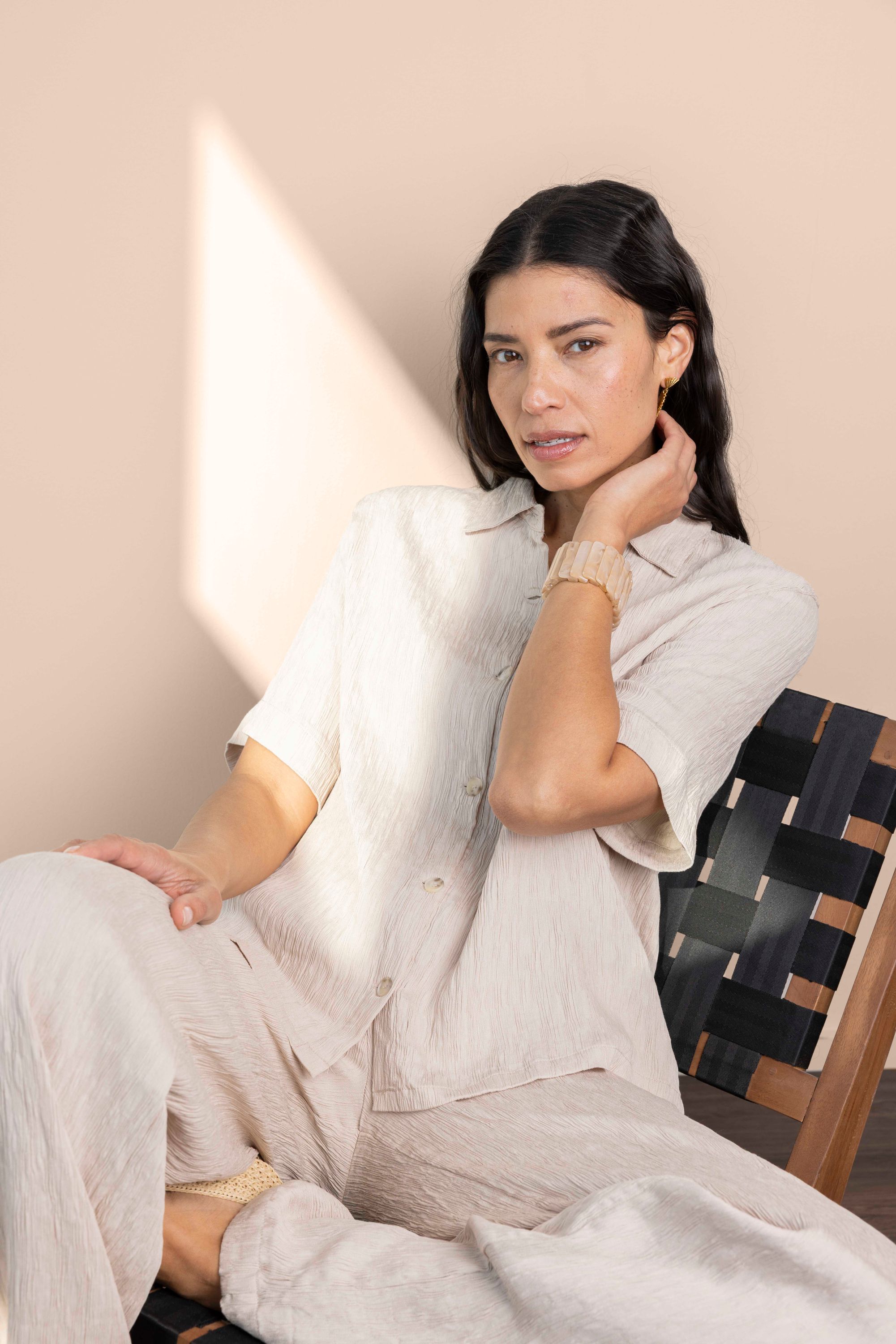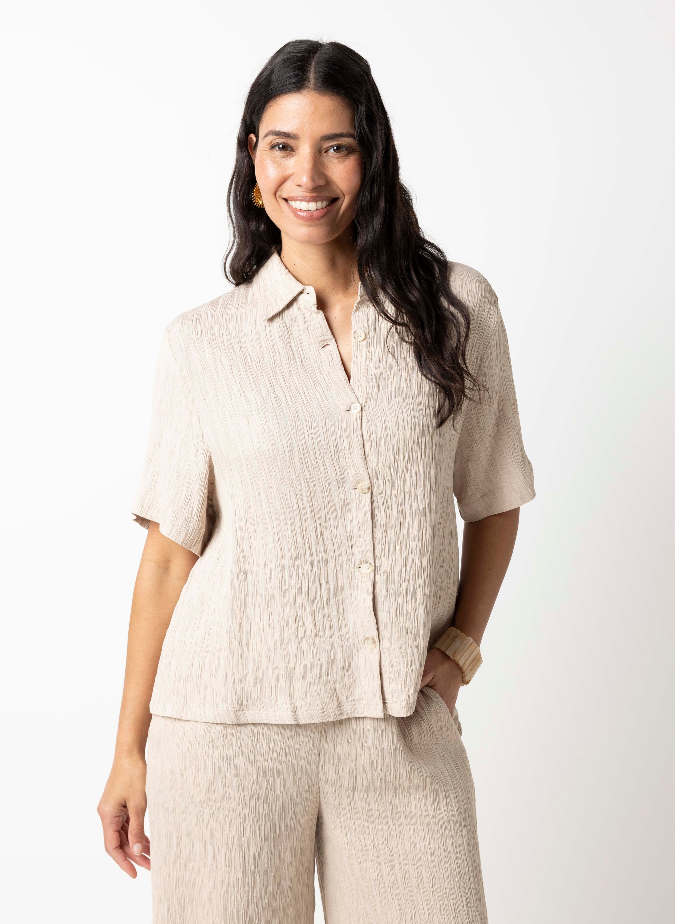 Deze katoenen blouse met klassieke kraag, knoopsluiting en korte mouwen maakt deel uit van een co-ord set.