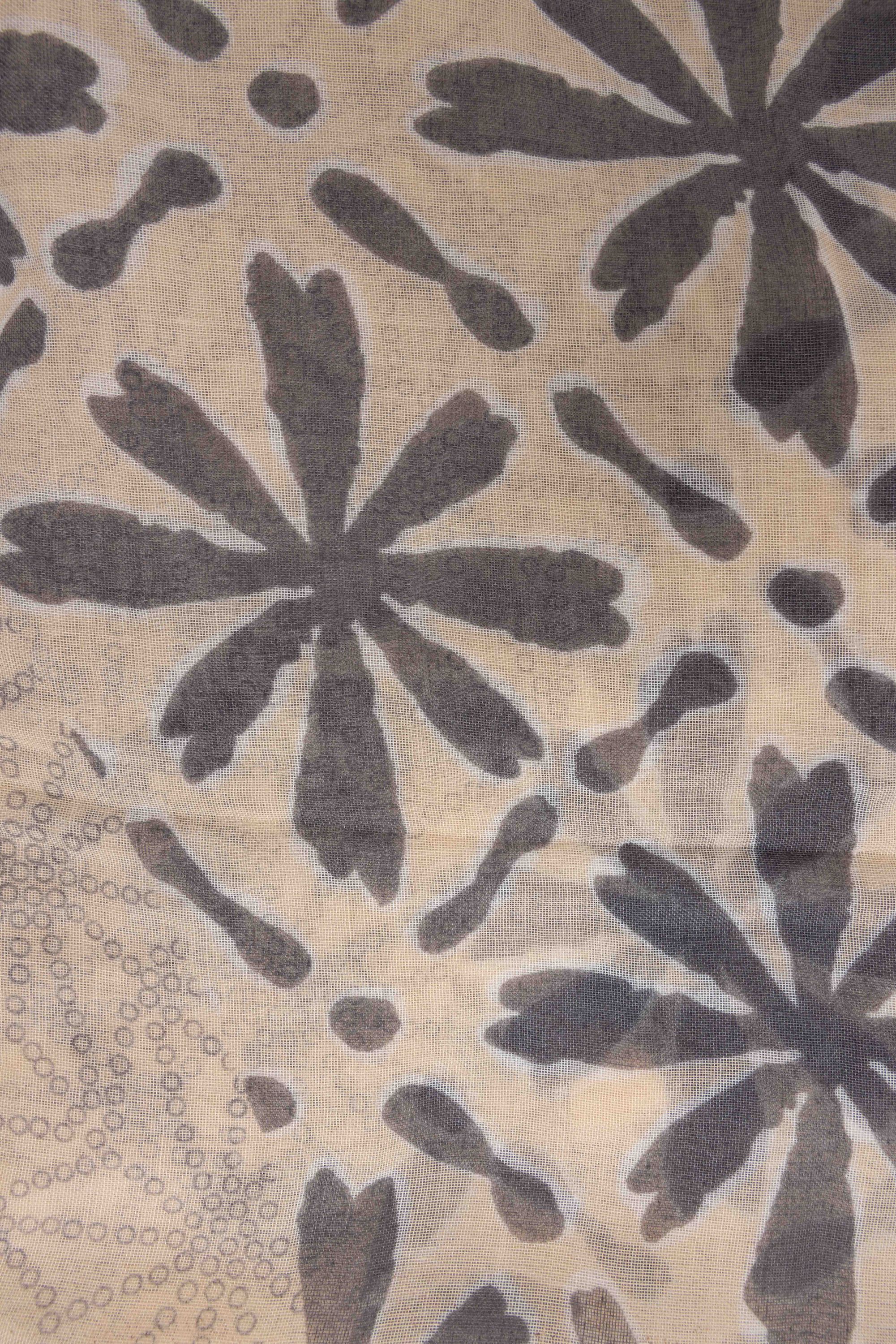Zandkleurige sjaal met grafische print