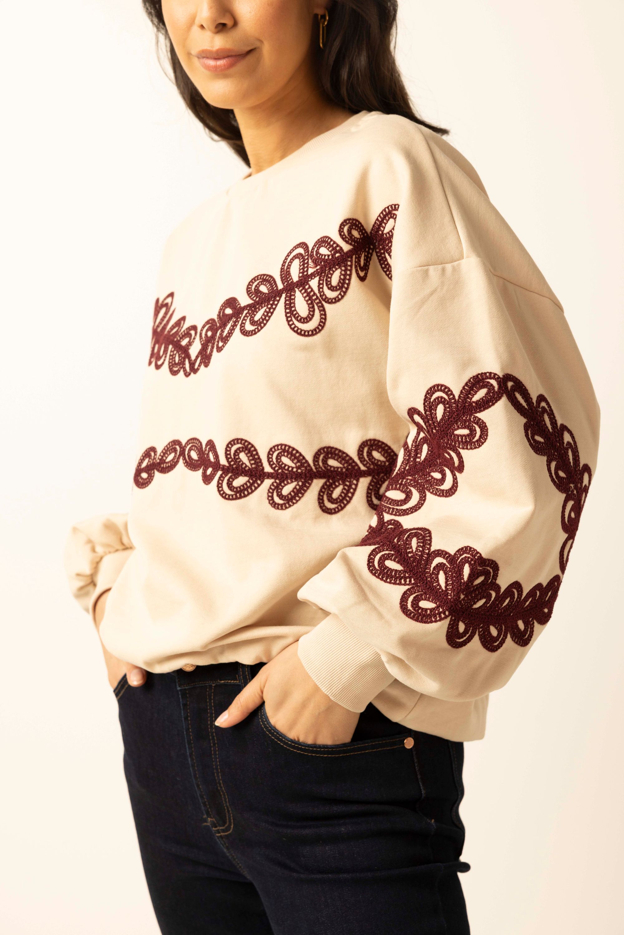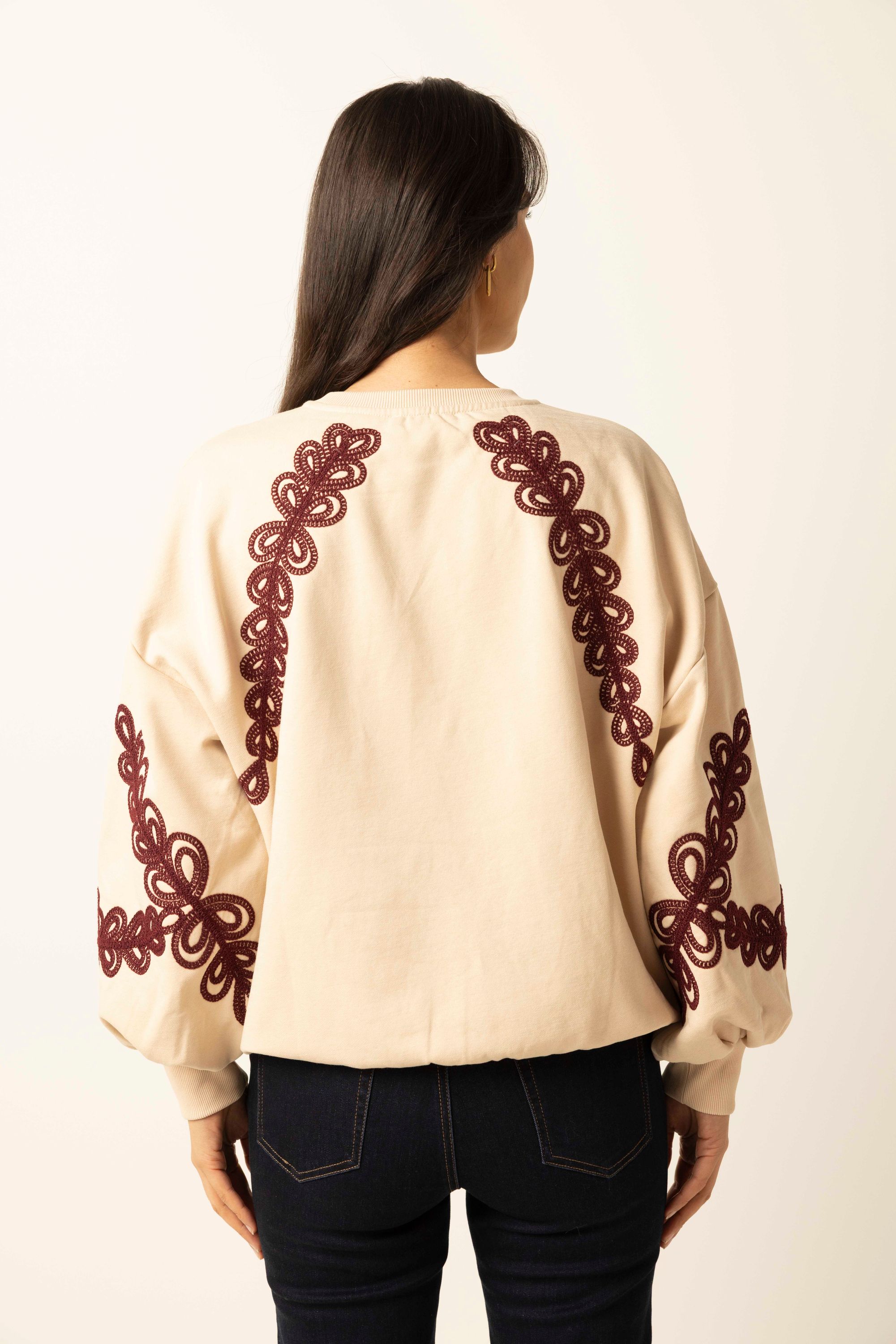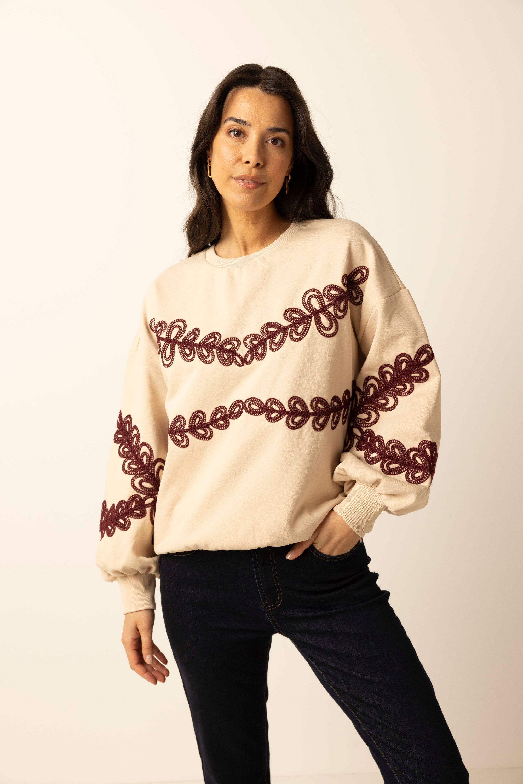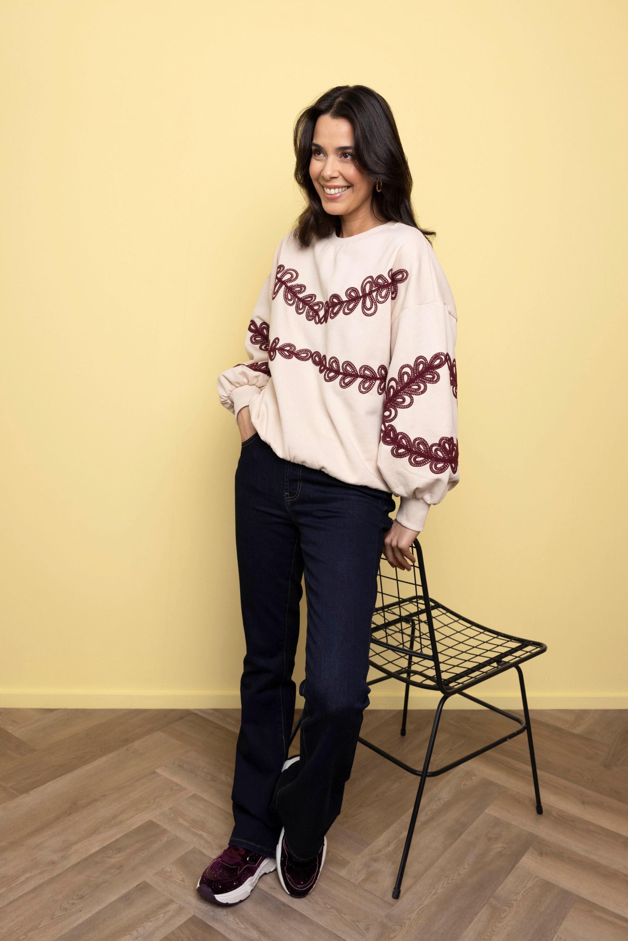 Deze sweater met ronde hals en lange ballonmouwen heeft een zachte en comfortabele fit.
