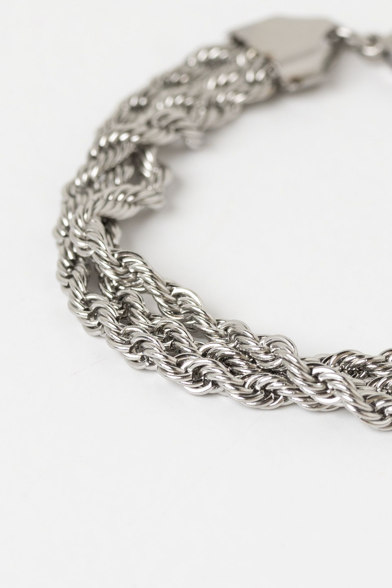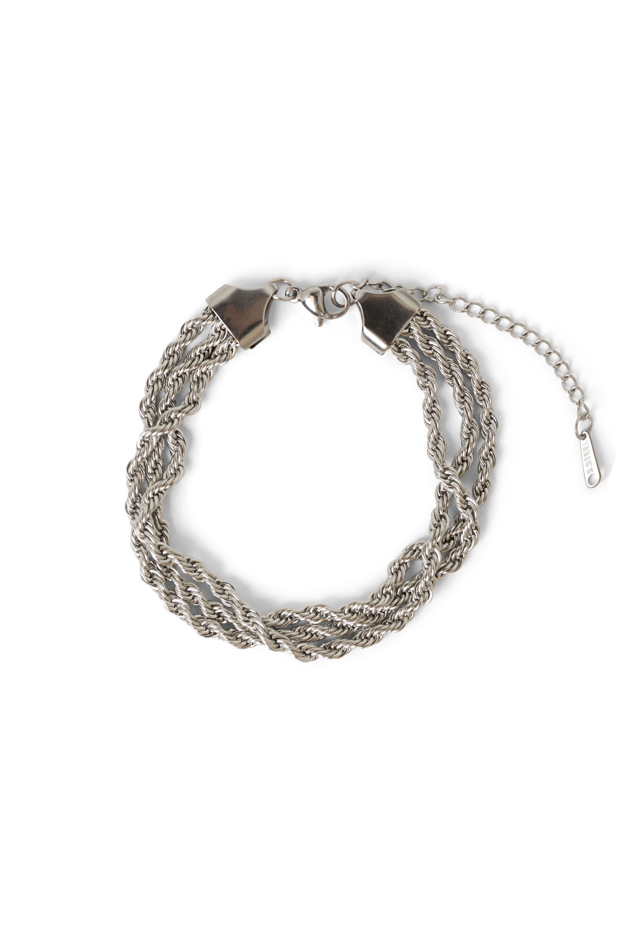 Deze zilverkleurige armband is van stainless steel. De armband is 17 cm lang en 3 cm verstelbaar.