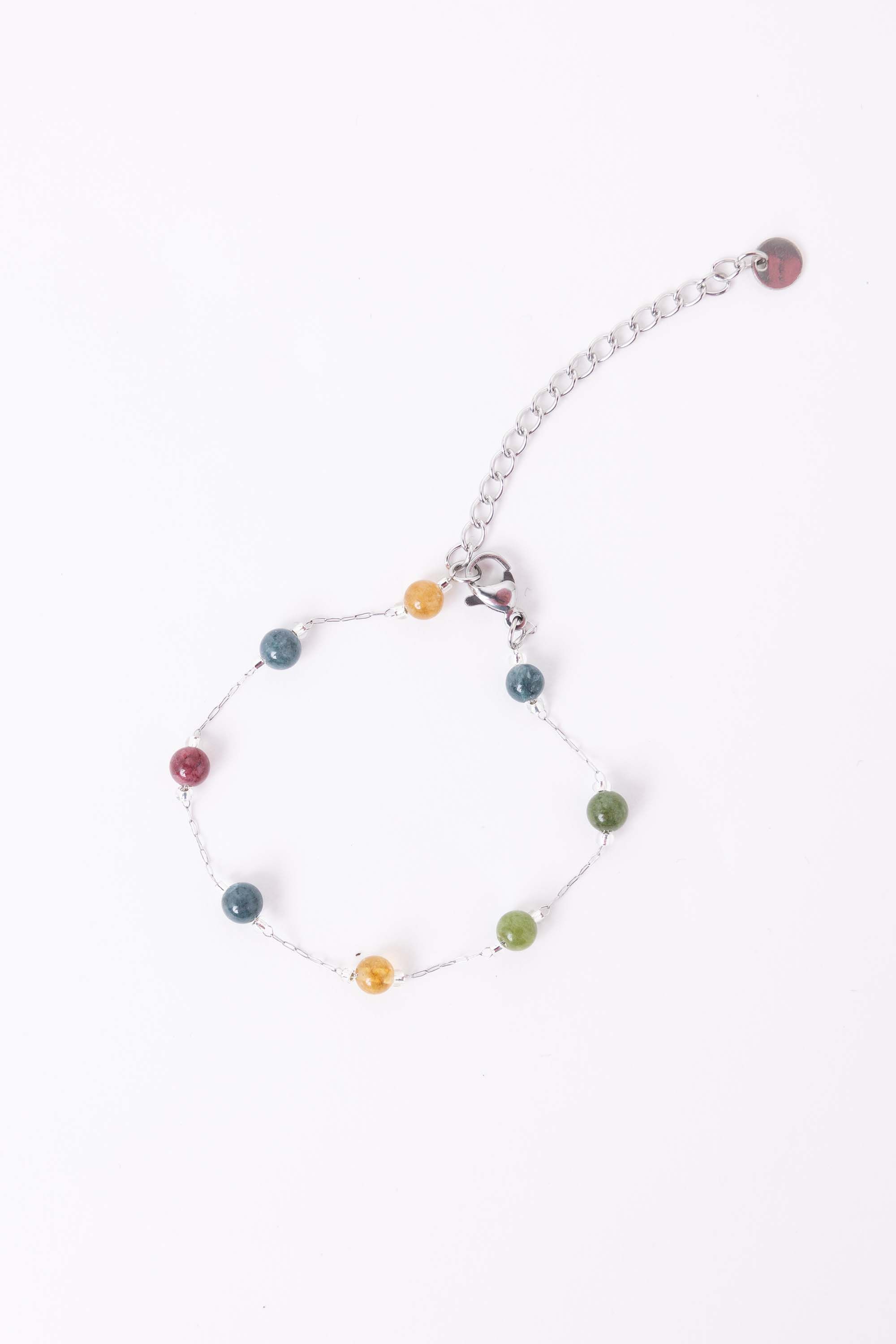 Zilverkleurige armband met gekleurde steentjes