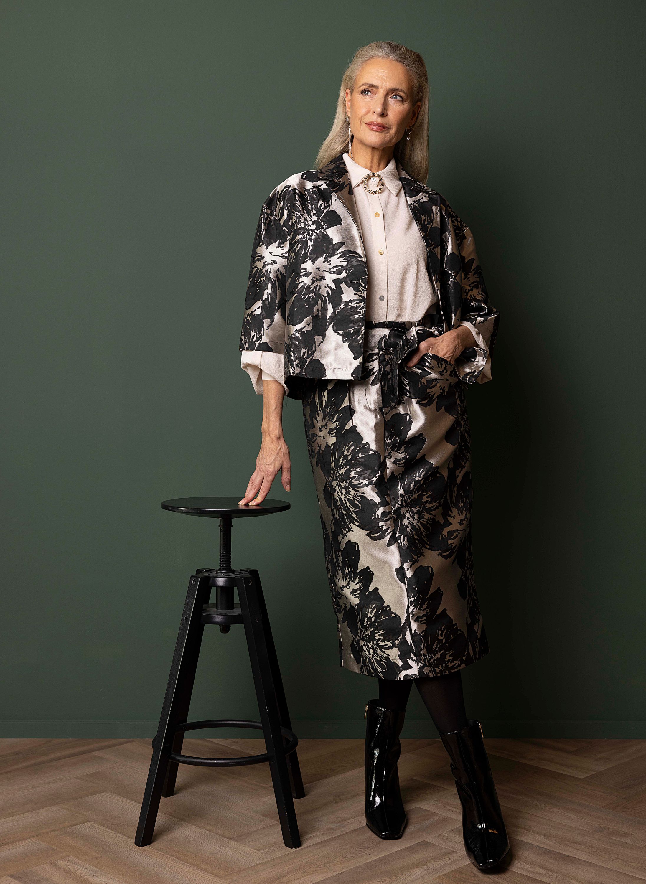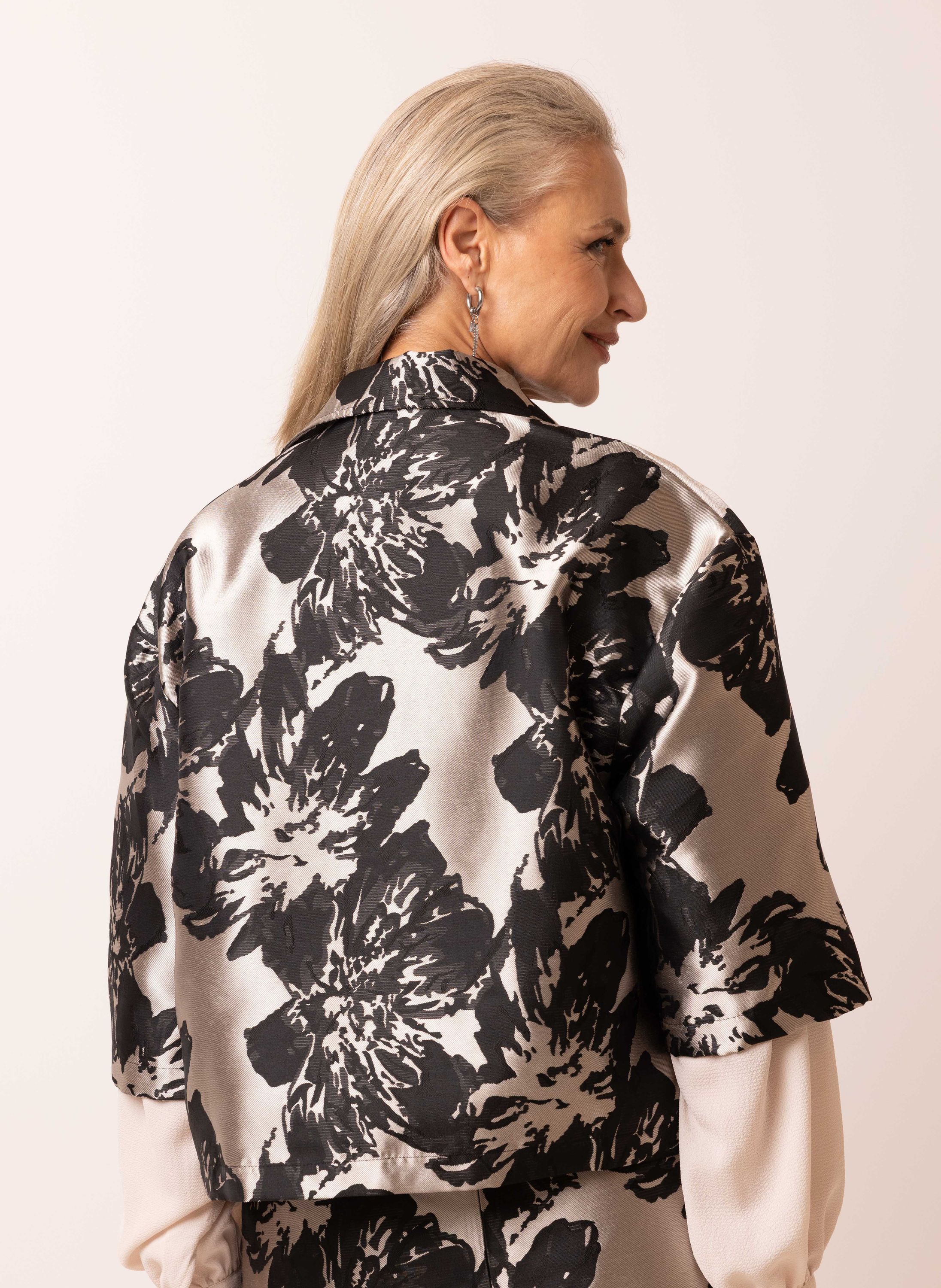Deze ruimvallende blazer met reverskraag, driekwart mouwen en knoopsluiting geeft je look een stijlvolle, feestelijke touch.
