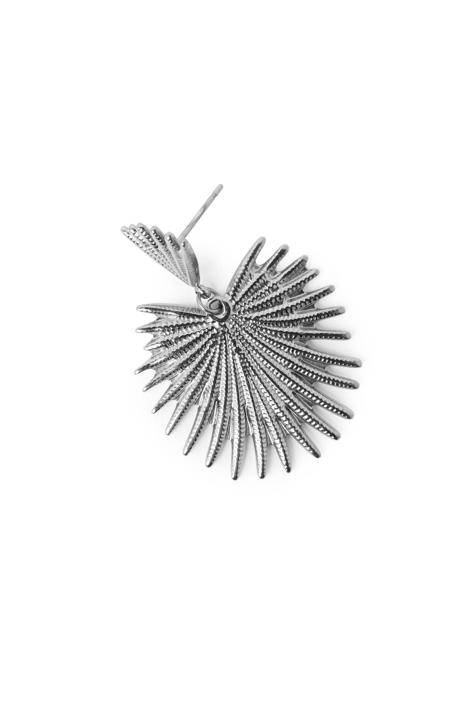 Deze zilverkleurige oorbellen hebben een speels bladdesign met fijne reliëfdetails. Het lichte ontwerp zorgt voor een comfortabele pasvorm, terwijl de opvallende vorm dit item een vrouwelijke en elegante uitstraling geeft. Afmeting: 4 cm.