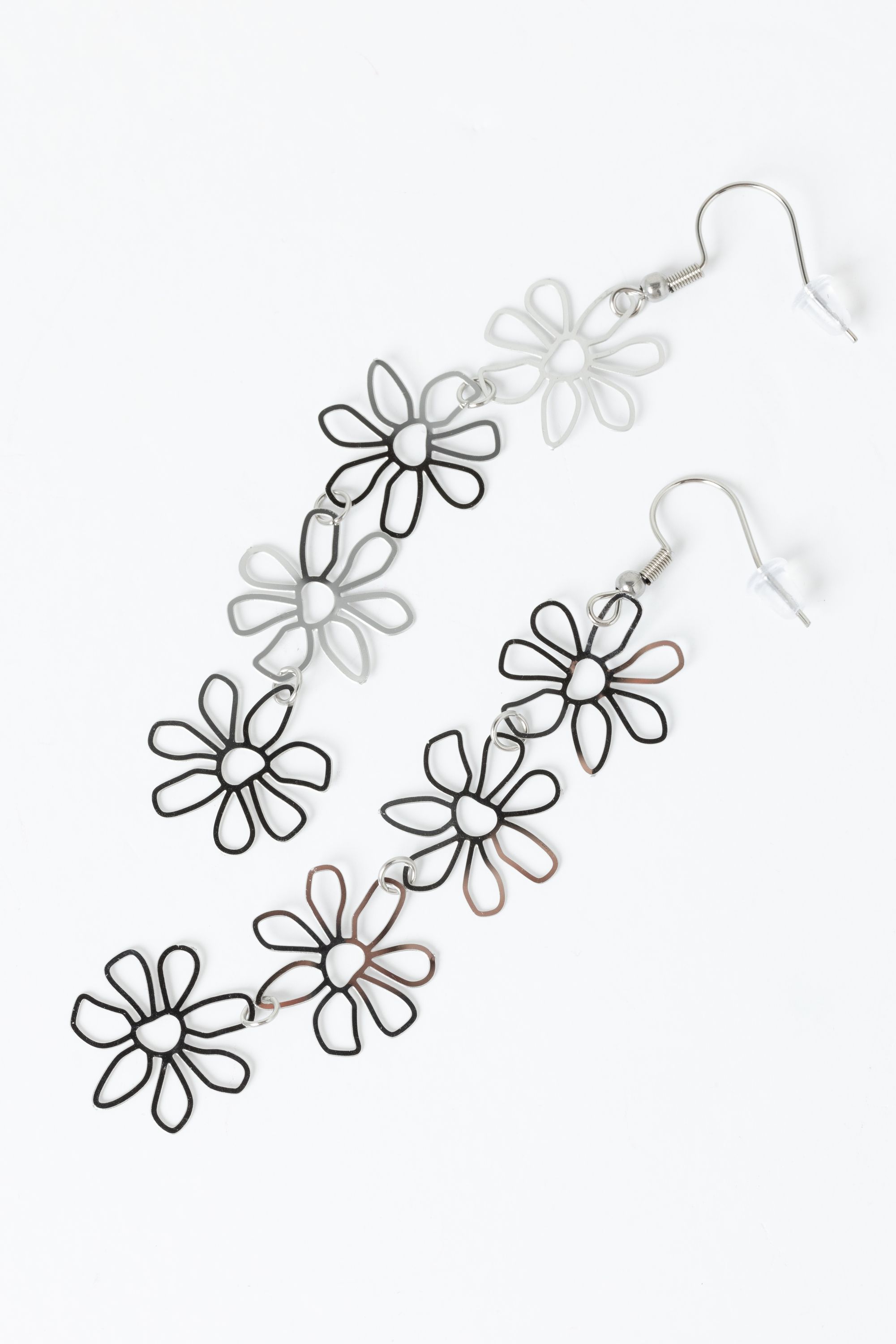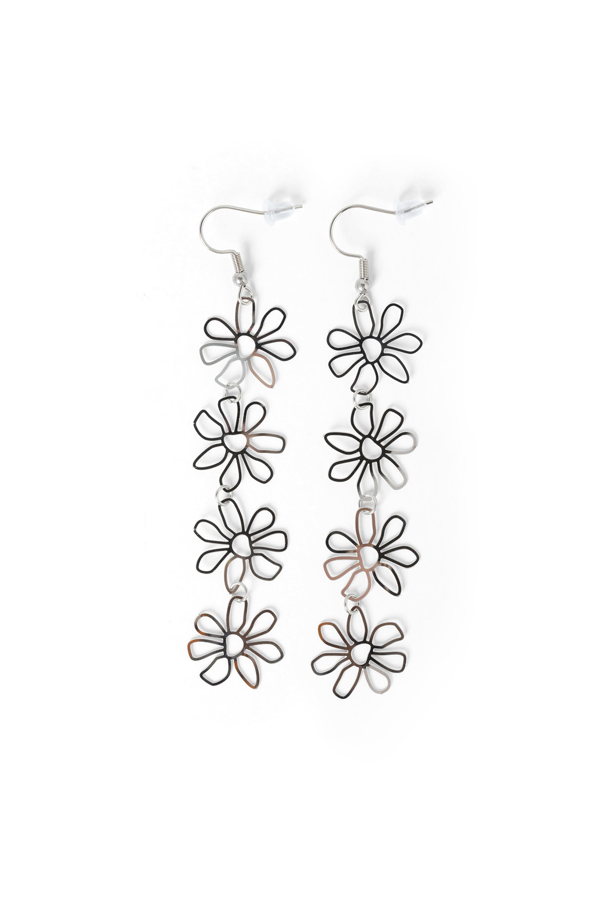 Zilverkleurige oorbellen met bloemen
