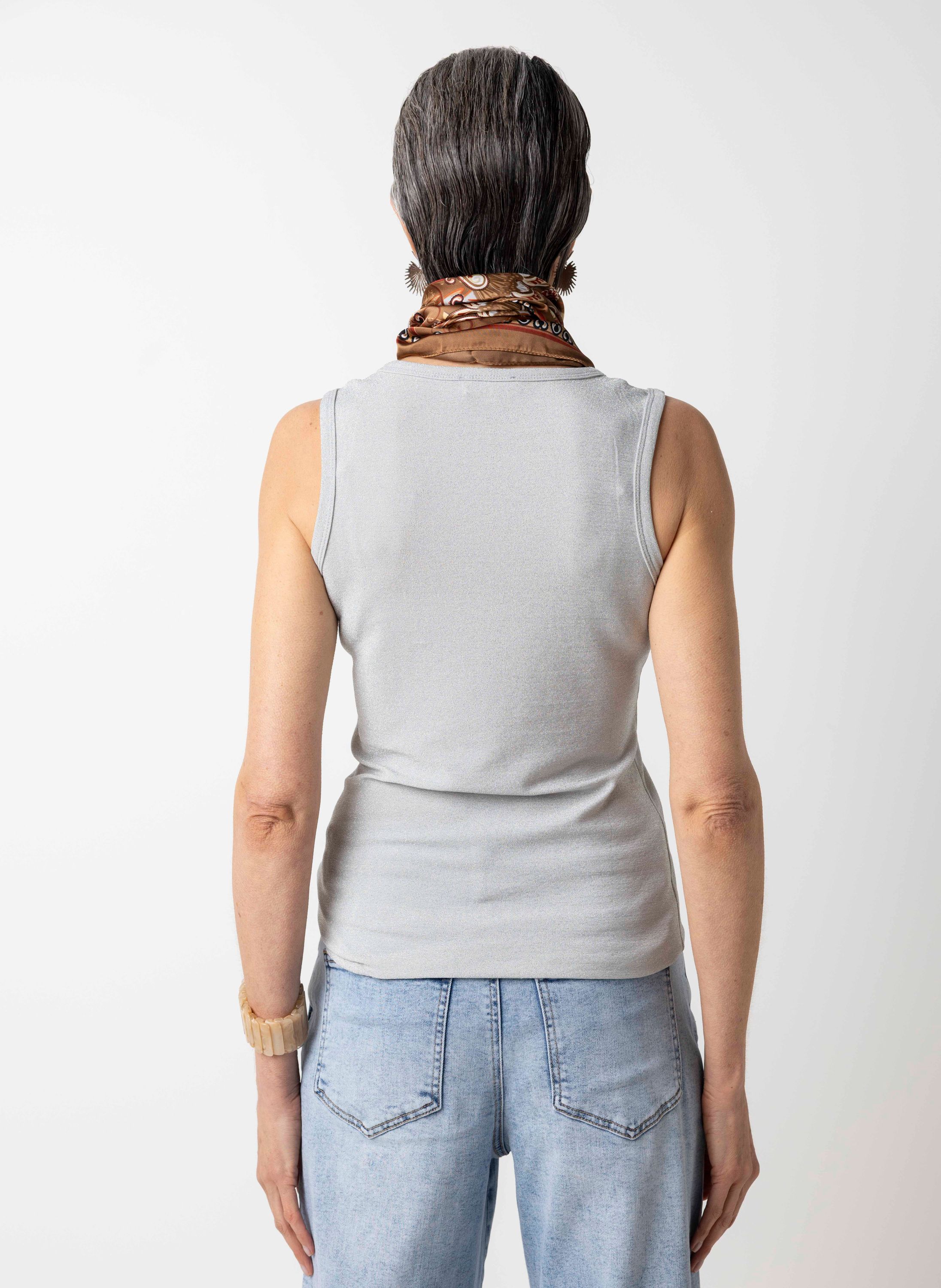 Deze mouwloze top met ronde hals is afgewerkt met zilverkleurig lurexdraad voor een subtiele glans.