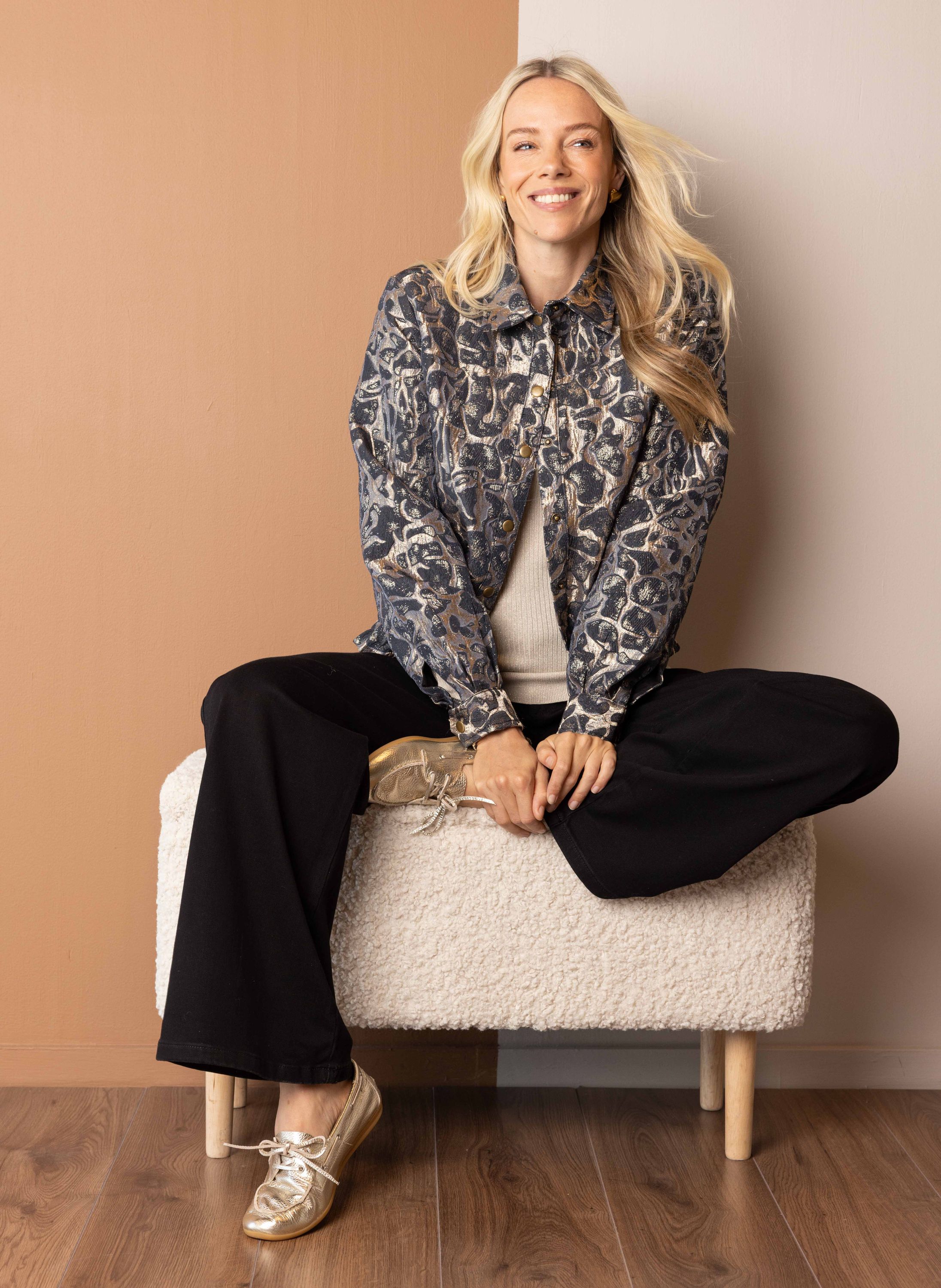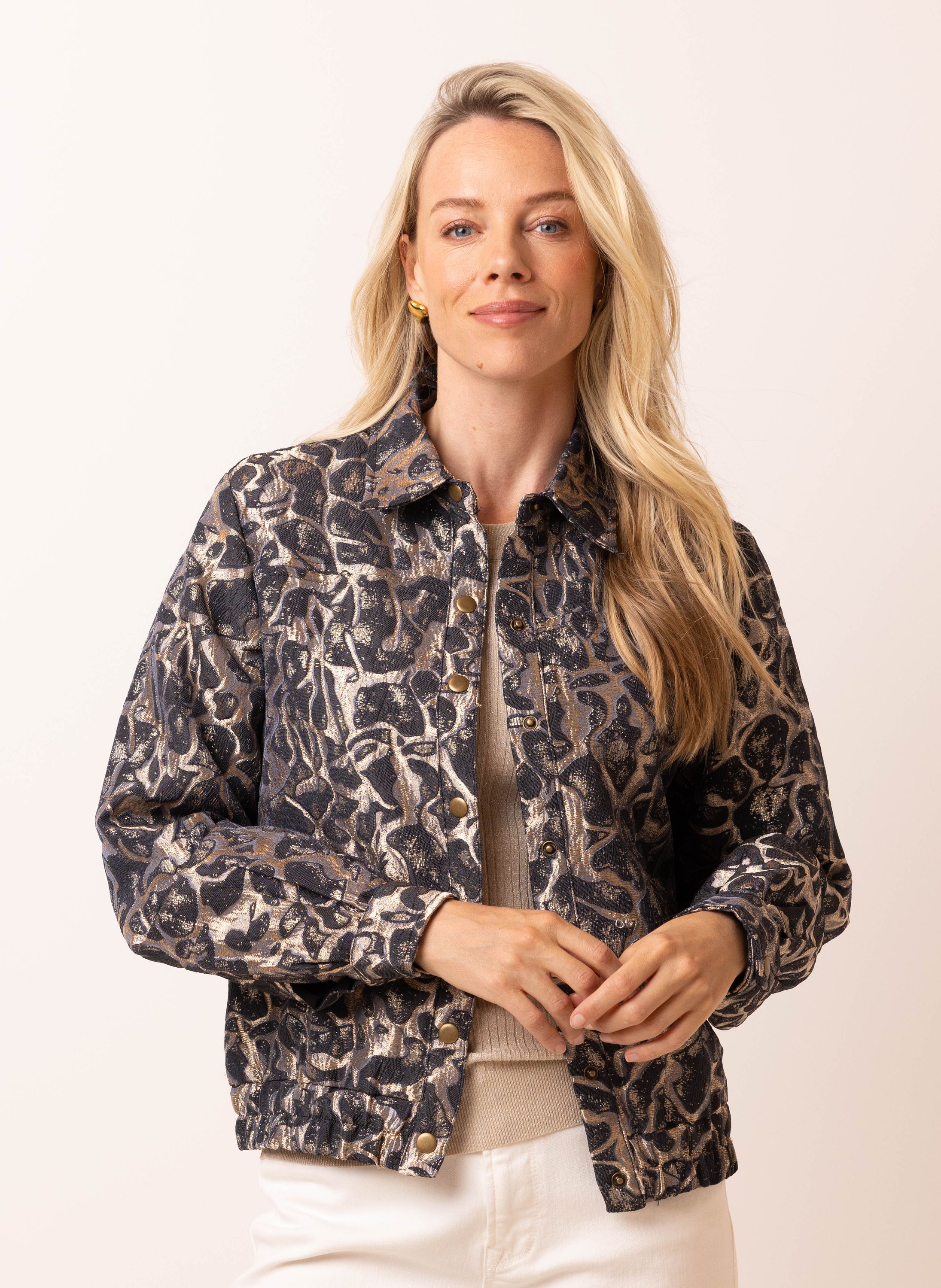 Dit jasje met klassieke kraag, knoopsluiting, lange mouwen en brede elastische band aan de onderzijde is een sierlijke toevoeging aan je outfit.